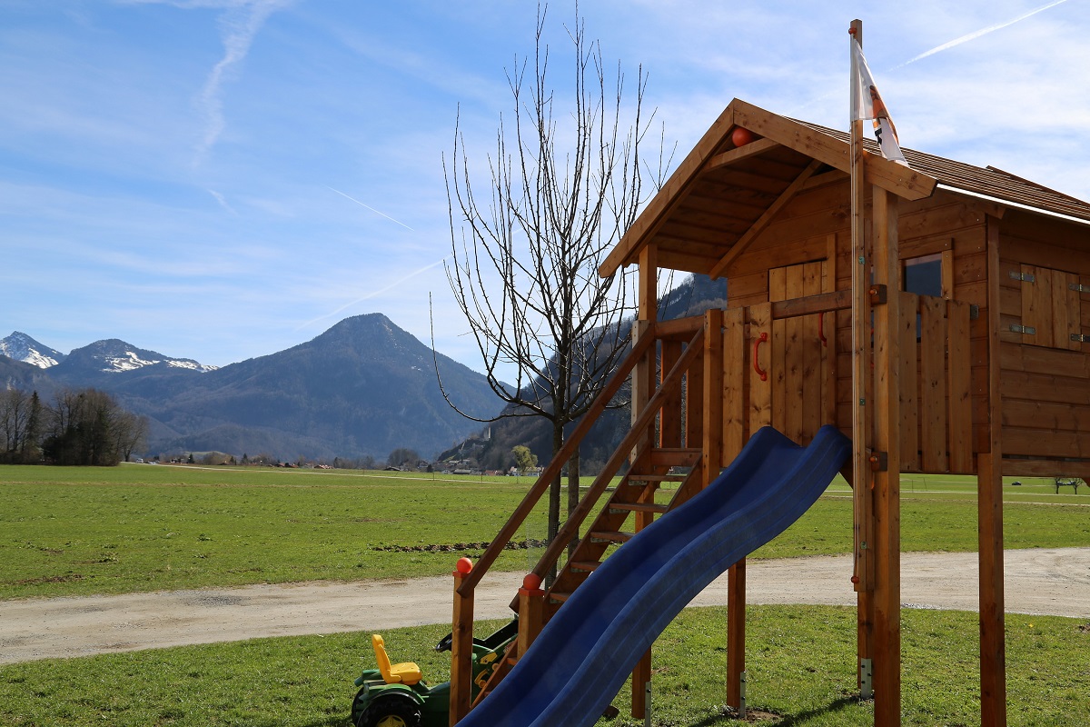Unsere 2018 fertig gestellten Ferienwohnungen werden Ihnen nicht zu viel versprechen. Sie verleihen Ihnen Wohlfühlatmosphäre vom ersten Tag an. Besonders die Holzbauweise mit sichtbaren Dachstuhl, die bestens ausgestattete Wohnküche mit freiem Blick auf die Berge, die Ruhe auf dem Balkon. An kälteren Tagen die wohlige Wärme der Fußbodenheizung in allen Räumen, mit kostenlosen WLAN. Auf die Kleinen wartet ein Spielhaus mit Rutsche, eine Wippe, Schaukel und der verspielte Hofhund. Natürlich dürfen auch die Kälbchen gestreichelt werden. Grillplatz und Liegewiese vorhanden. Unsere Waschmaschine und Trockner stellen wir Ihnen gerne zur Verfügung. Wir freuen uns auf Ihren Besuch. Kurzübernachtungen auf Anfrage möglich!