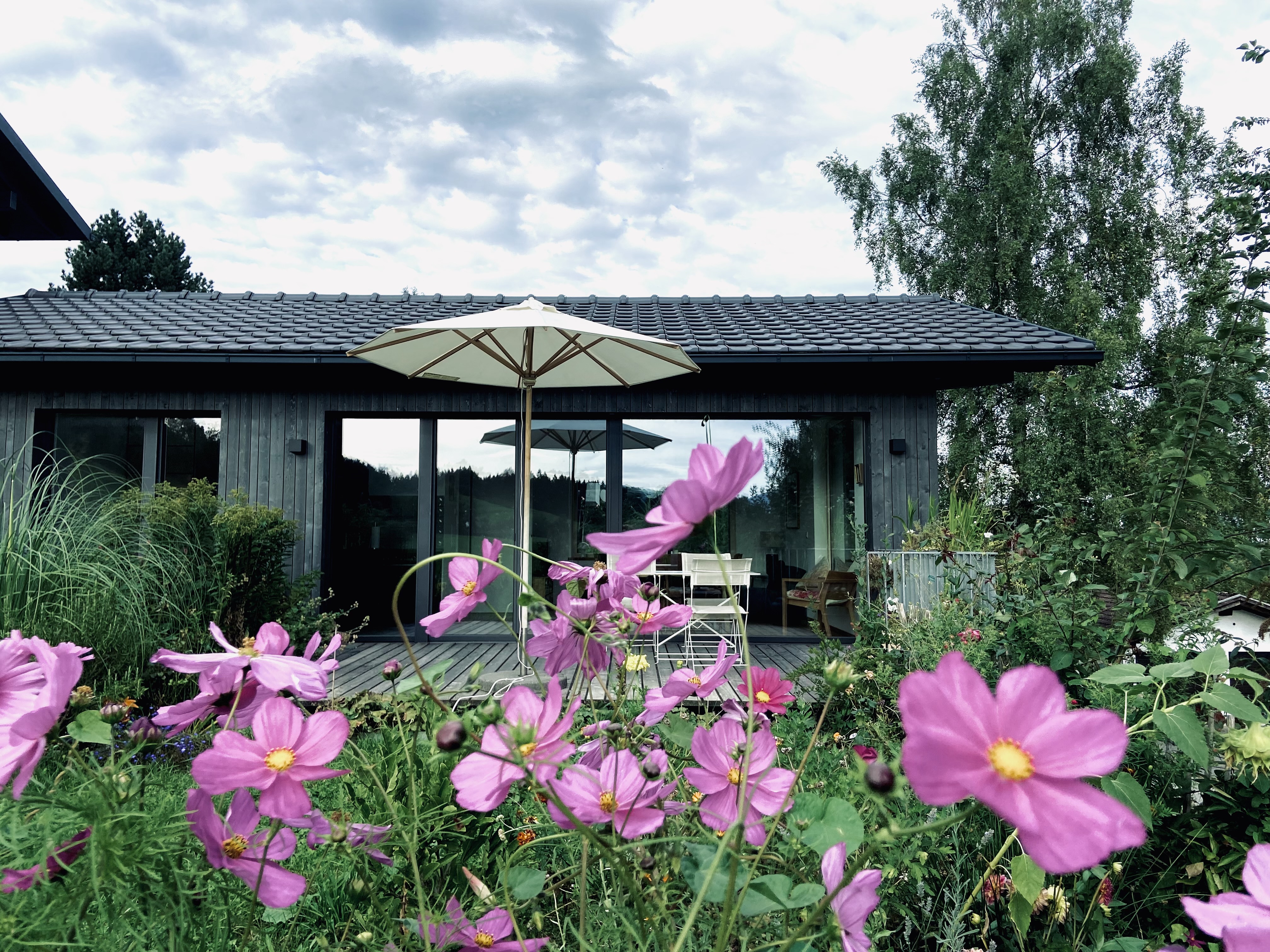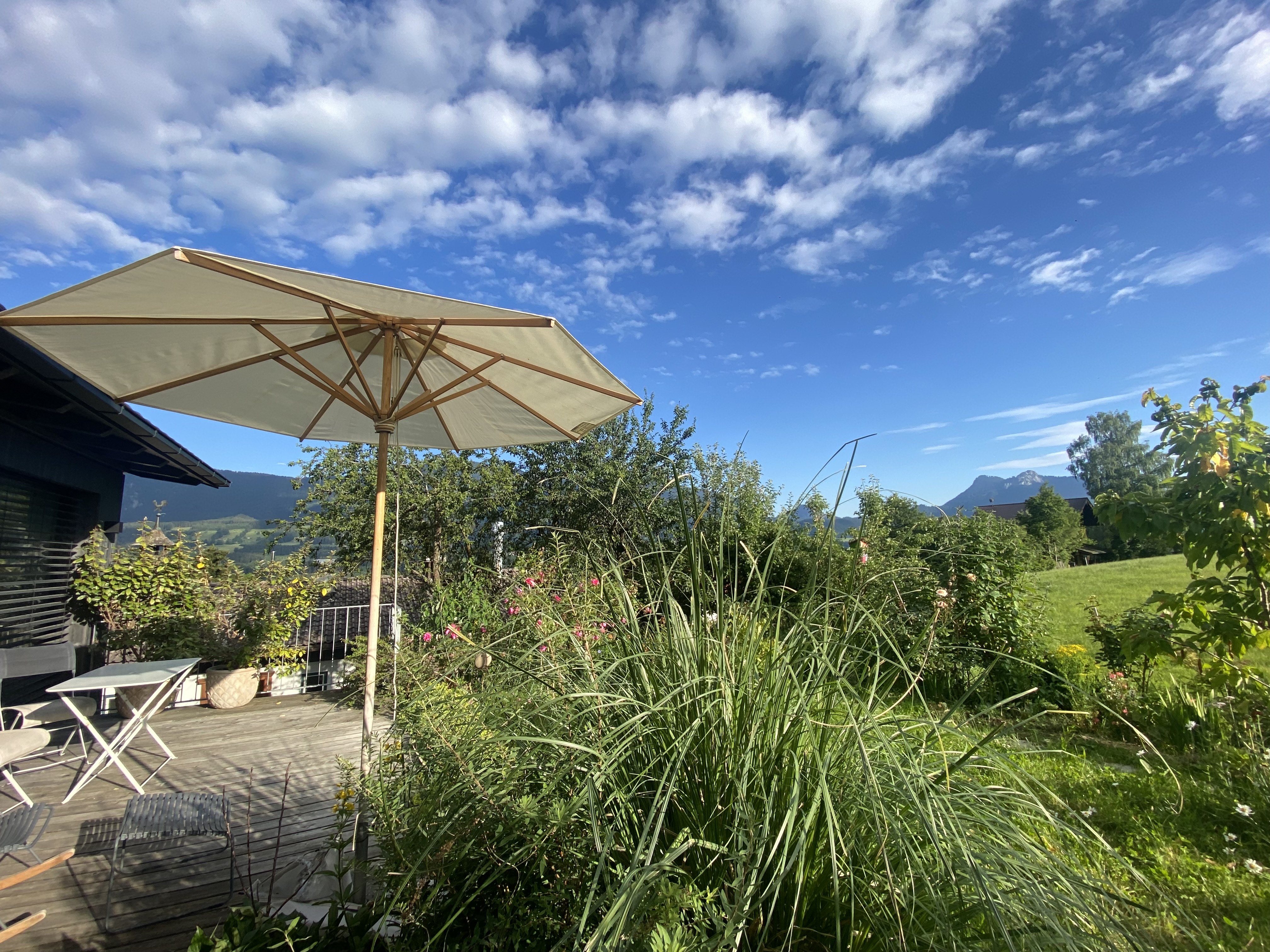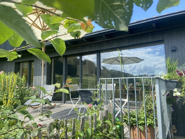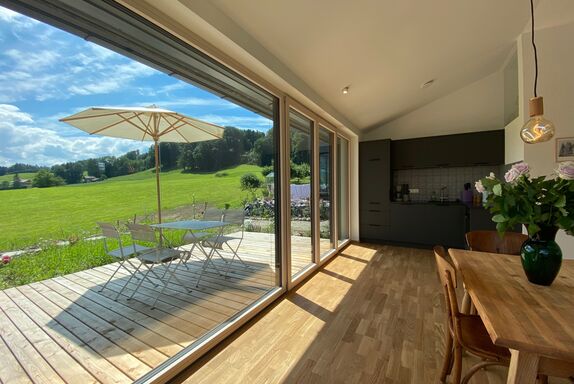 Im Juli 2020 wurde unser Ferienhaus im Archtiktenstil in Holzständerbauweise mit heimischen Hölzern fertiggestellt. Ökologische Holzhäuser sind frei von Giftstoffen und für Allergiker besonders geeignet. Das lichtdurchflutete 2-Zimmer Haus mit über 60 qm und eigener Terrasse und Garten mit alten Obstbäumen liegt absolut ruhig und uneinsehbar am westlichen Dorfrand von Törwang mit Blick auf die Hochries, den Heuberg und ins Inntal. Das Haus hat ein Schlafzimmer mit traumhaften Heuberg-Blick (Bett 180 x 200 cm), ein Bad mit Dusche / WC (und Fußbodenheizung) und einem großen Wohnraum mit ausziehbarer Couch (mit hochwertiger Federkernmatratze) auf der bequem 2 weitere Personen übernachten können, Designerküchenzeile und großen Panorama-Fenstern nach Osten, Süden & Westen. Elektrische Jalousien sind an allen Fenster vorhanden. Das Haus liegt in einer Sackgasse, abgesehen von einem Traktor, der mal vorbeifährt, gibt es so gut wie keinen Verkehr und somit absolut ruhig. Auf der großen Terrasse, die uneinsehbar ist, haben wir Liegen, Stühle, einen Tisch und Sonnenschirm und Sie können die vielen Vögel und die wunderbare Natur beobachten und es ist der perfekte Platz und die Zeit zu vergessen und Kraft zu tanken.