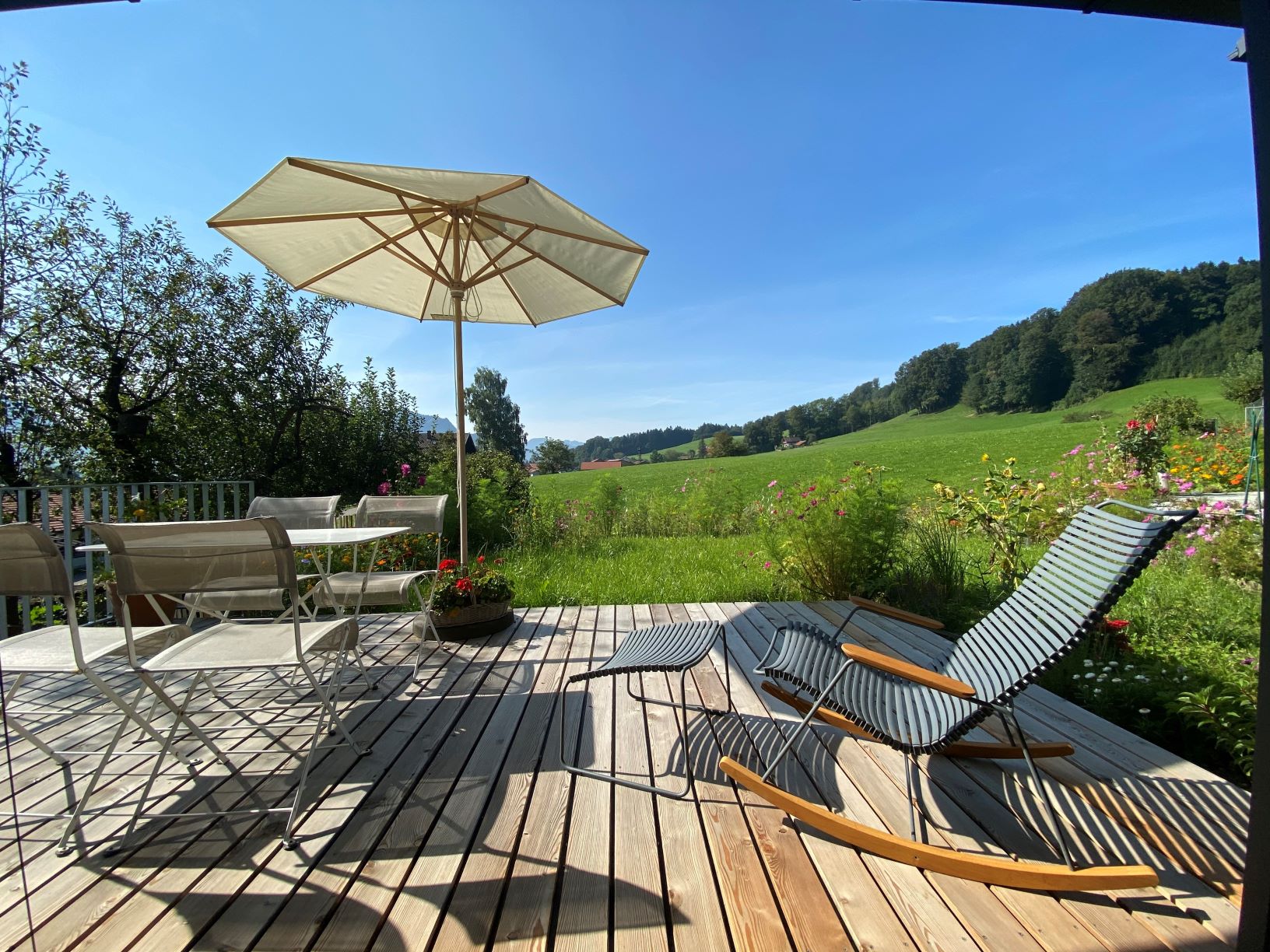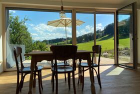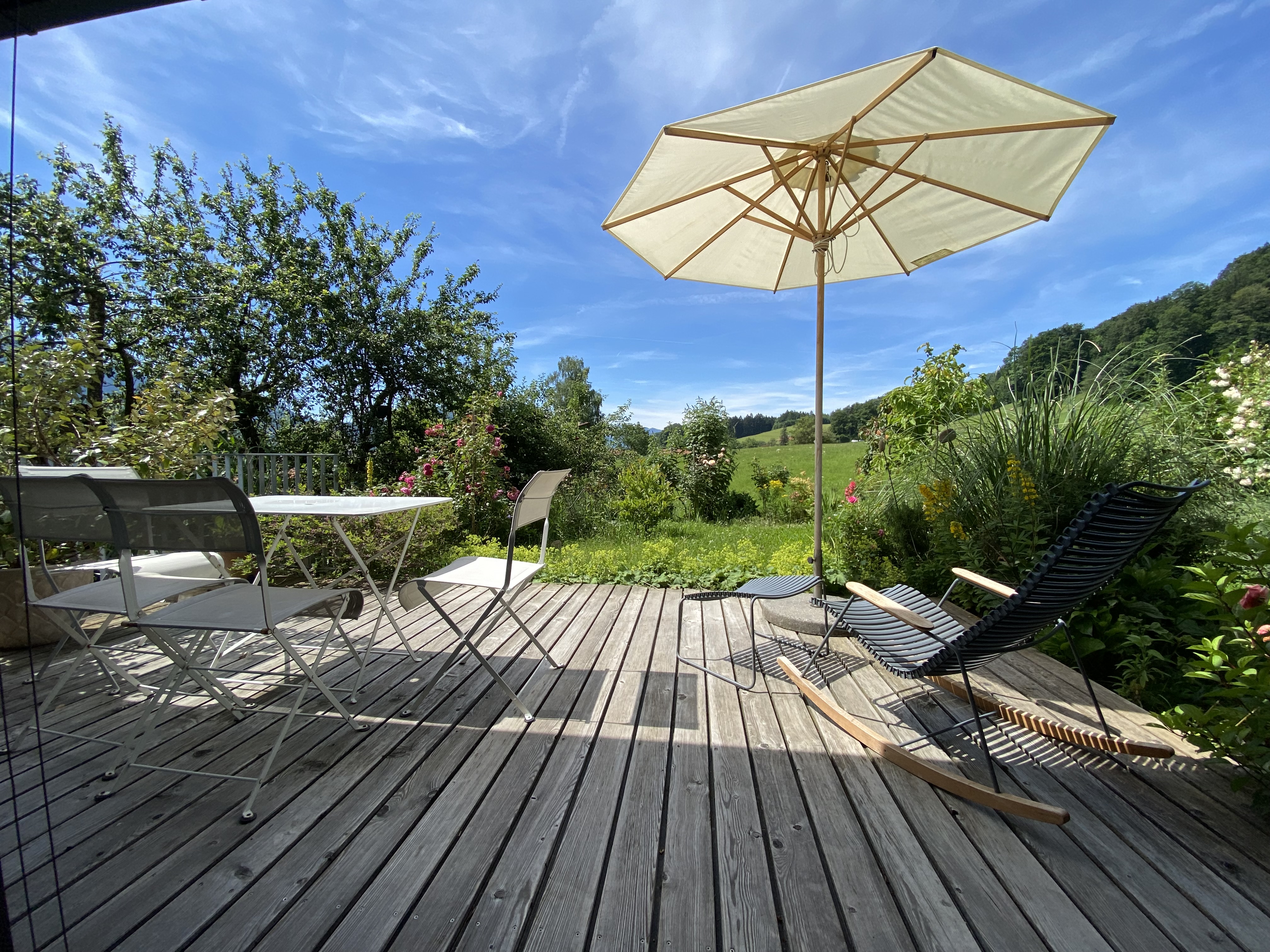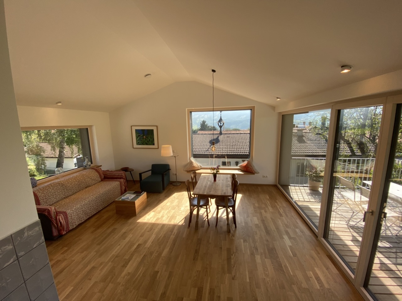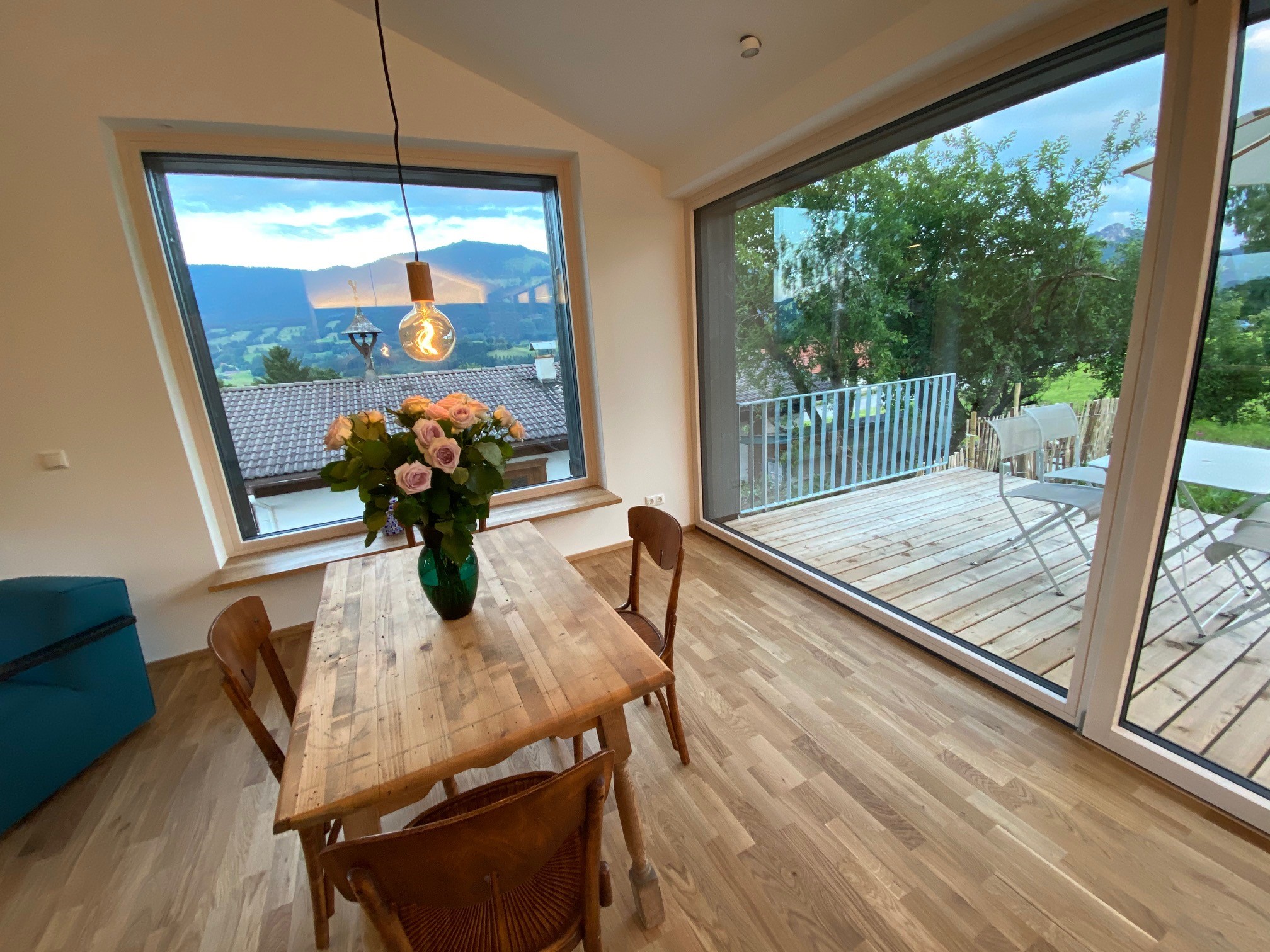 Einzigartige Lage mit unverbaubaren Bergpanoramablick, eigenem Garten, Schreinermöbeln, viele Rad-und Wanderwege vor der Haustüre. Ladestation für E-Autos und E-Bikes mit eigenem Solarstrom. Hochwertige Ausstattung ( Schreinerküche mit Spülmaschine Fussbodenheizung im Bad, Eichenparkett). Panoramafenster nach Osten, Süden, Westen. Die Wohnung ist mit Schreinermöbel und Designermöbel ausgestattet. Das energieeffiziente Haus ist aus heimischen Hölzern und komplett schadstofffrei.