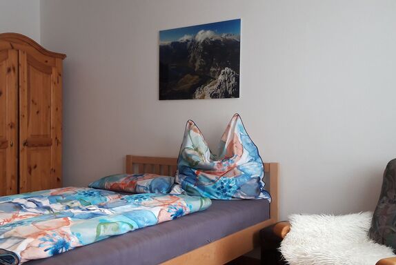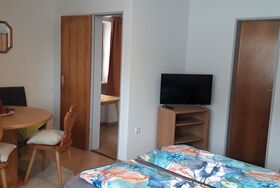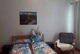 Kleine, abgetrennt zugängliche, ebenerdig gelegene Nichtraucherwohnung (26 qm) für zwei Personen. Kombiniertes Schlaf-/Wohnzimmer mit Sitzecke, HDTV Fernseher, W-LAN. Komplett eingerichtete Einbauküche (2 Platten H-Herd mit Backofen, Kühlschrank mit Gefrierfach, Kaffeemaschine, Toaster, Wasserkocher und Radio) mit Sitzecke. Abgetrenntes Badezimmer mit Dusche und WC (Föhn). Neben der FeWo befindet sich eine kleine überdachte Terrasse. Parkplatz direkt am hauseigenen Eingang.