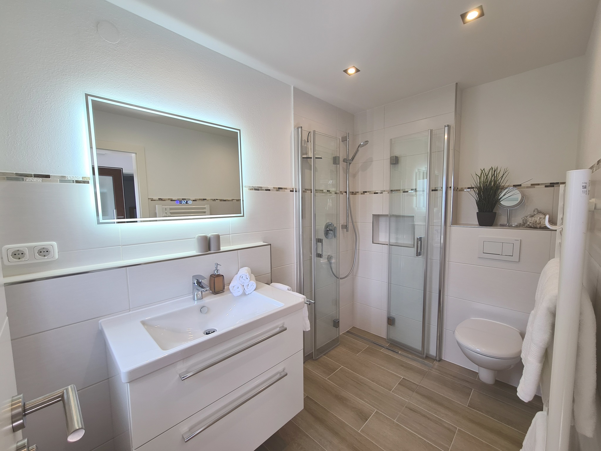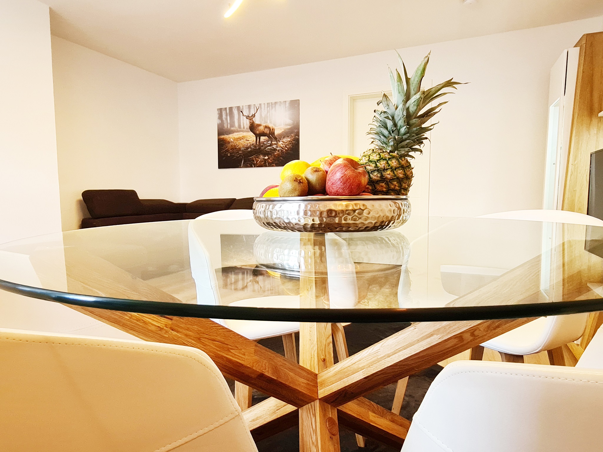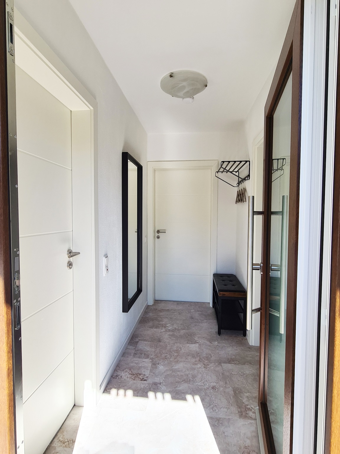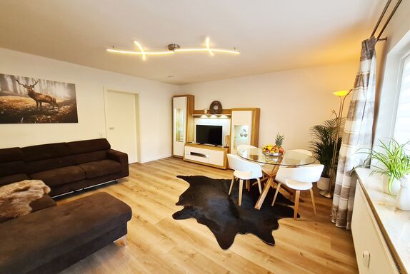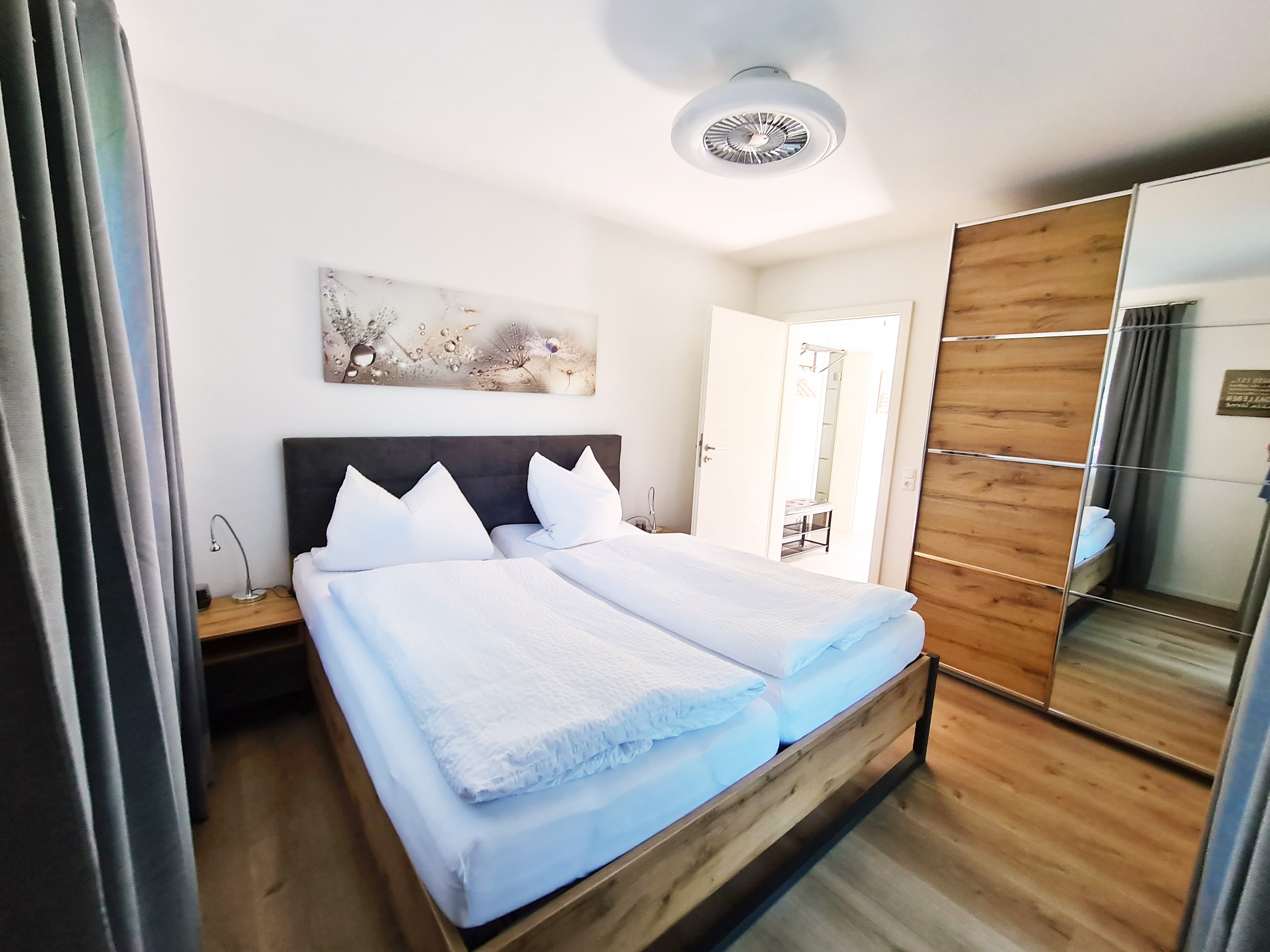 Die Wohnung „Sonnenblick“ befindet sich im Hochparterre, ist über einen eigenen Zugang zu erreichen und verfügt über einen ebenerdigen Terrassenzugang. Im Eingangsbereich ist ein zusätzlicher südseitiger Balkon mit gemütlicher Sitzmöglichkeit. Es erwartet Sie 1 Schlafzimmer mit Doppelbett in Komforthöhe (7-Zonen-Premium-Kaltschaum-Matratze, mehrfach verstellbarer Lattenroste, Deckenventilator, Bettwäsche inkl.), 1 modern eingerichtetes Wohnzimmer mit zusätzlicher Schlafgelegenheit auf der Funktionseckcouch, TV Wand mit Flachbildschirm, Kabelfernsehen und Internet. Der Essbereich ist in den Wohnraum harmonisch integriert. Die moderne, separate Küche verfügt über eine Vollausstattung (Ceranfeld, Backofen, Mikrowelle, Geschirrspüler, Kaffeeautomat (Tassimo), Wasserkocher, Toaster, Eierkocher, Mixer, großräumiger Kühl- und Gefrierschrank). Im nebengelegenen Abstellraum finden Sie weitere Staufläche, eine eigene Waschmaschine, wie auch Bügel- und Putzutensilien. Das Bad mit Tageslicht hat eine moderne Dusche, einen Multifunktionsspiegel mit Uhrzeit, Licht und Antibeschlagfunktion, sowie eine Fußbodenheizung. Großzügigen Stauraum finden Sie in den Waschtischschubladen (Handtücher, Fön, Kosmetikspiegel, Erste Hilfe-Kid und Reisenähset sind vorhanden). W-LAN ist kostenfrei, Haustiere sind nicht erlaubt.