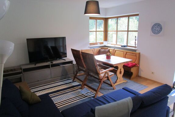 Helle Ferienwohnung in ruhiger und malerischer Umgebung im Luftkurort Siegsdorf/Hammer. Die neu eingerichtete Ferienwohnung befindet sich im 1. Obergeschoss eines Fünfparteien-Hauses, von denen die anderen dauerhaft vermietet sind. Die Wohnung ist ca. 68 qm groß, hat zwei Schlafzimmer, ein großes Wohn-/Esszimmer mit separater, voll ausgestatteter Küche und ein Badewannenbad mit WC. Ein Schlafzimmer verfügt über ein Doppelbett (160 x 200 cm), das zweite Schlafzimmer hat ein Einzelbett (90 x 190 cm) mit einem dazugehörigen Ausziehbett. Das Haus liegt direkt an dem beliebten Salinenwander- bzw. Radweg und ist ein idealer Ausgangspunkt für Radltouren, Wanderungen, Ausflüge oder Spaziergänge. Im Winter sind die Skigebiete und Langlaufloipen nur wenige Autominuten entfernt. Die Wohnung verfügt über kostenloses WiFi, sowie eine Waschmaschine und einen Wäschetrockner und einen kostenfreien KFZ-Abstellplatz.
