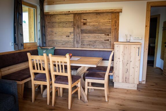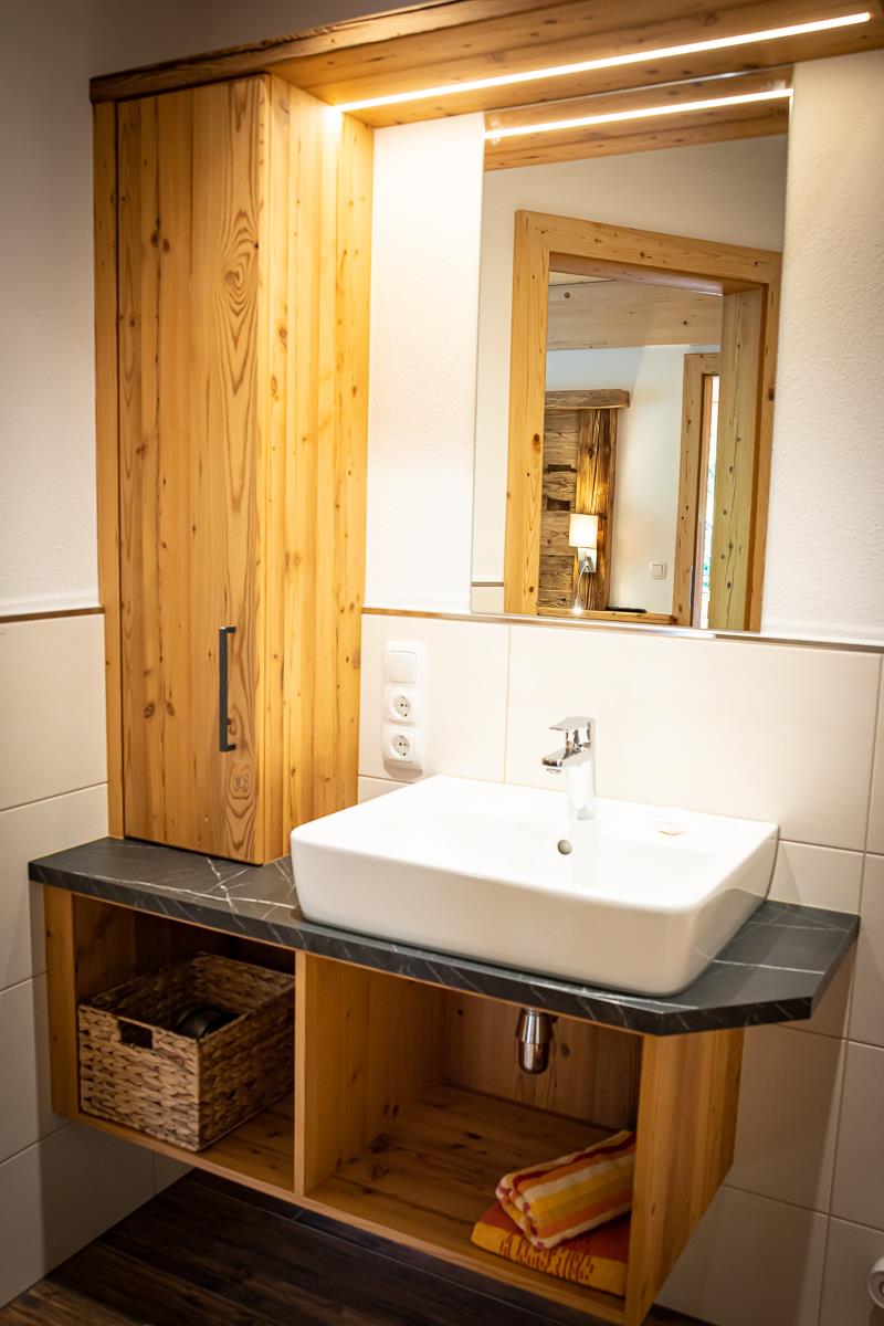 Unser ganz besonders Augenmerk legten wir dabei auf die Verwendung von regionalen und natürlichen Materialien. Das verarbeitete Fichten- und Zirbenholz stammt großteils aus dem hofeigenen Bergwald und in maßgenauer Handarbeit mit viel Liebe zum Detail im heimeligen Altholz-Stil eingebaut.
