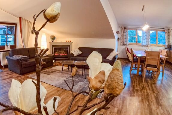 Die großzügige Zwei-Zimmer-Nichtraucherwohnung App25 begeistert mit einem lichtdurchfluteten Wohnraum mit Gaube und Balkon. Sie befindet sich in der gepflegten Ferienanlage Gschwendtnerhof mit insgesamt 26 individuell gestalteten Apartments. Auf 840 m Höhe im idyllischen Hochtal von Hintergschwendt – zwischen Aschau im Chiemgau und Bernau am Chiemsee – genießen Sie Ruhe, Natur und eine traumhafte Bergkulisse, umgeben von Wiesen und Wäldern zwischen Kampenwand und Chiemsee. Die Wohnung ist der ideale Ausgangspunkt für Wanderungen, Radtouren und Ausflüge in die Region. Geschäfte und Lokale aller Art finden Sie im nahegelegenen Aschau oder in Bernau.