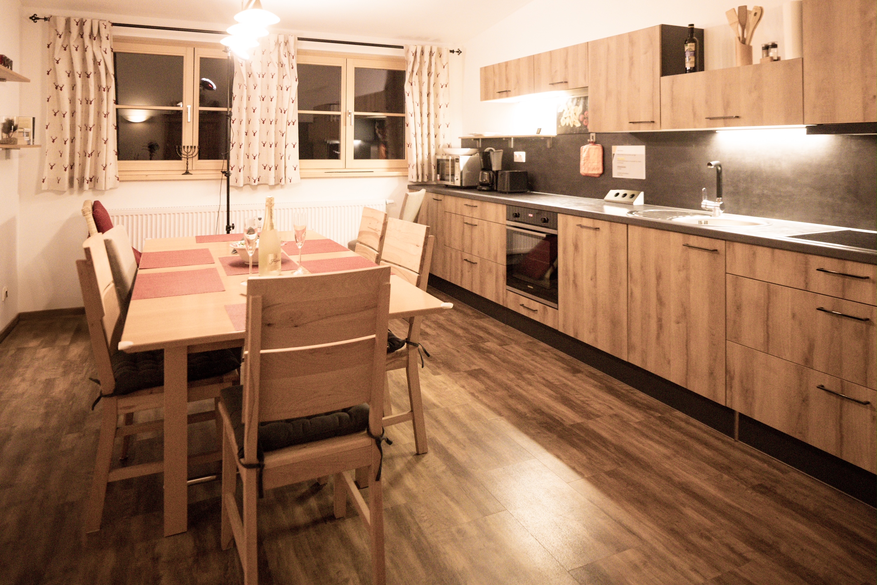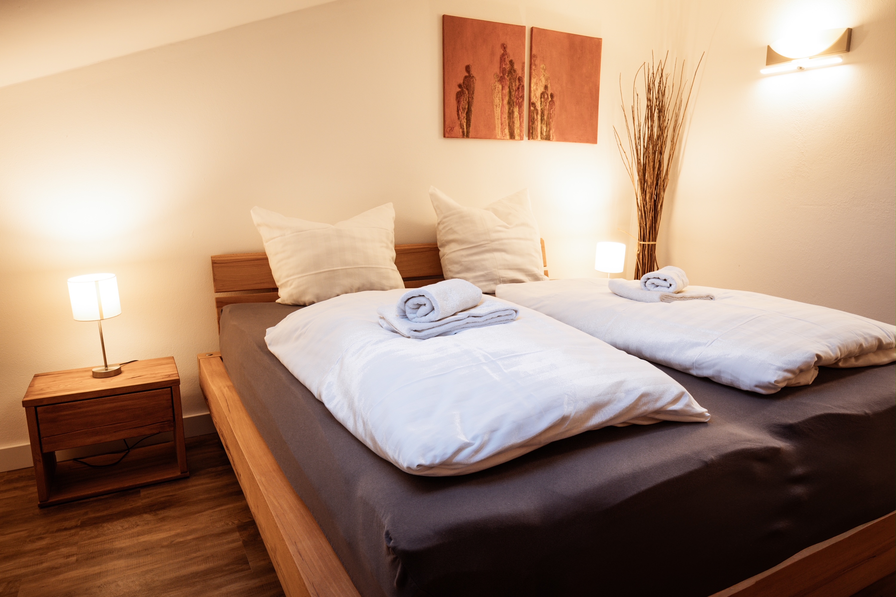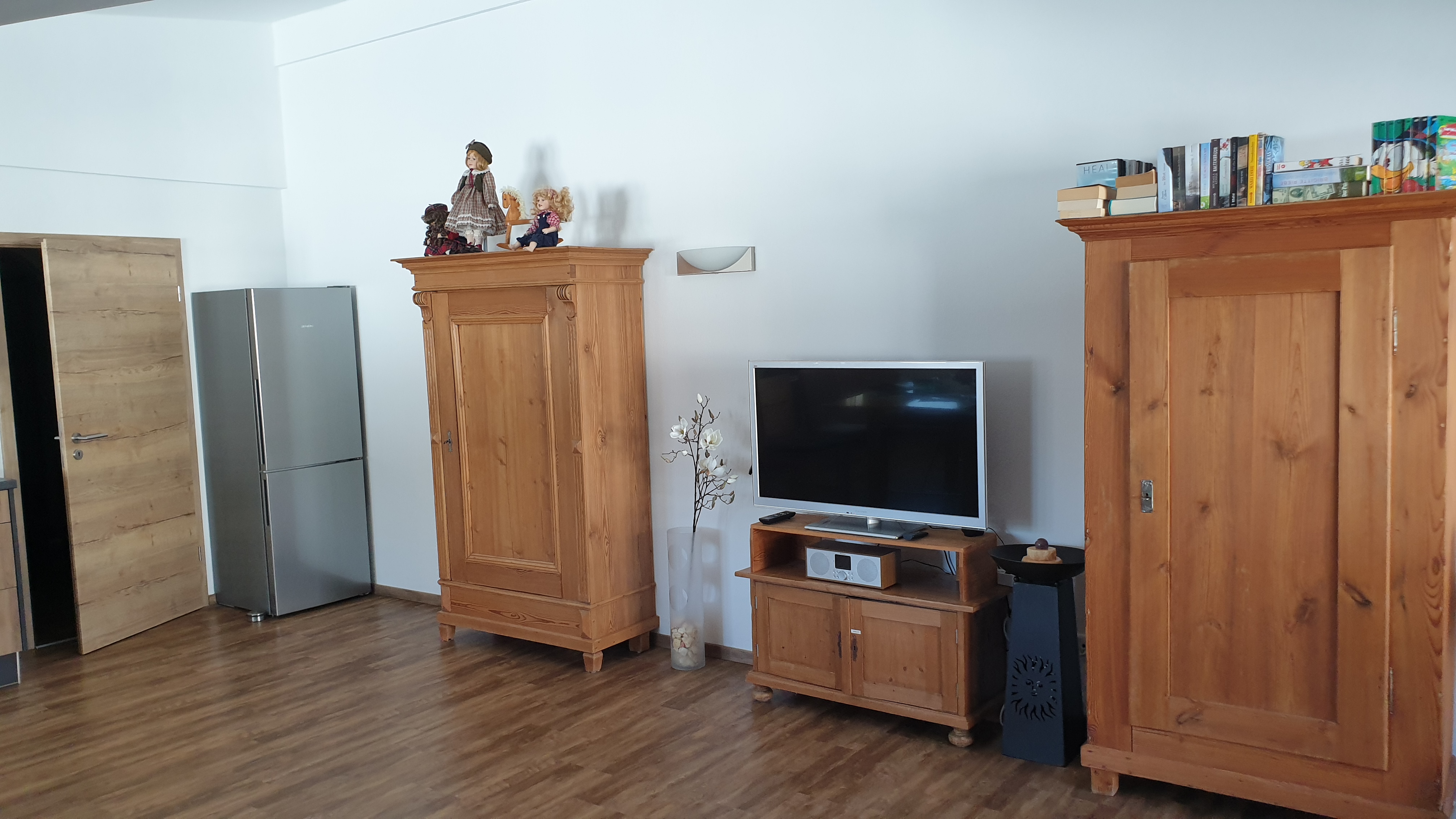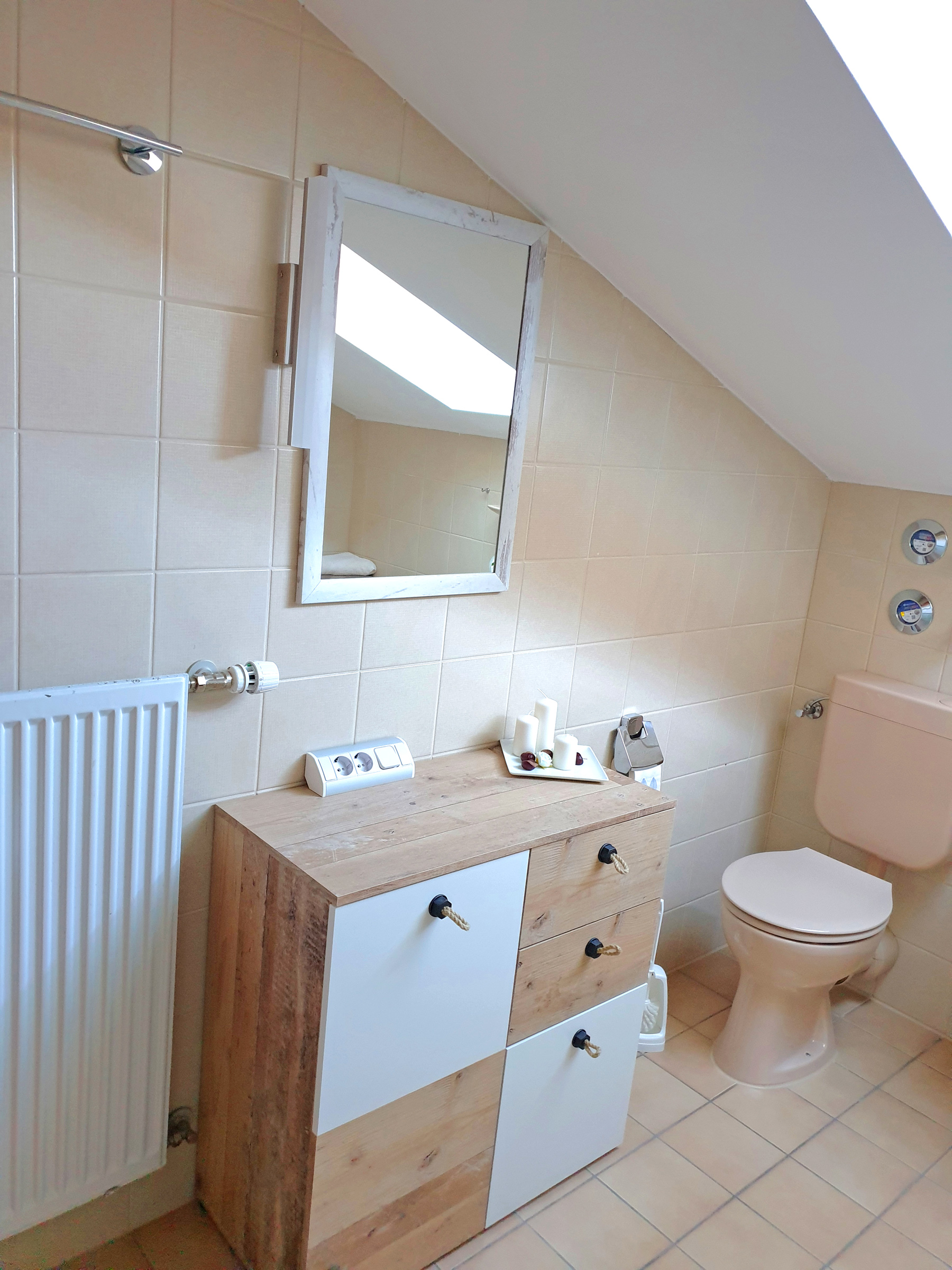 Sehr ruhig gelegene Ferienwohnung im 1. Stock, 73 qm mit leichter Mansarde und schönem Balkon mit Abendsonne. Die geräumige Wohnung verfügt über ein Schlafzimmer, ein Badezimmer mit Fenster, Dusche und Badewanne, Fön, sowie 2024 durch eine Gaube komplett neu gestalteter, großer Wohnraum mit erweiterter Küche, Ess- und Wohnzimmer und neuem Vinylboden.