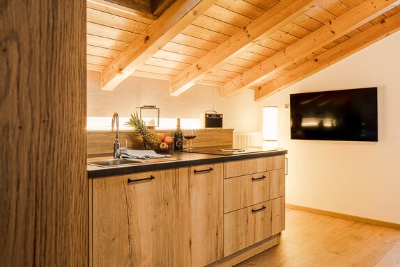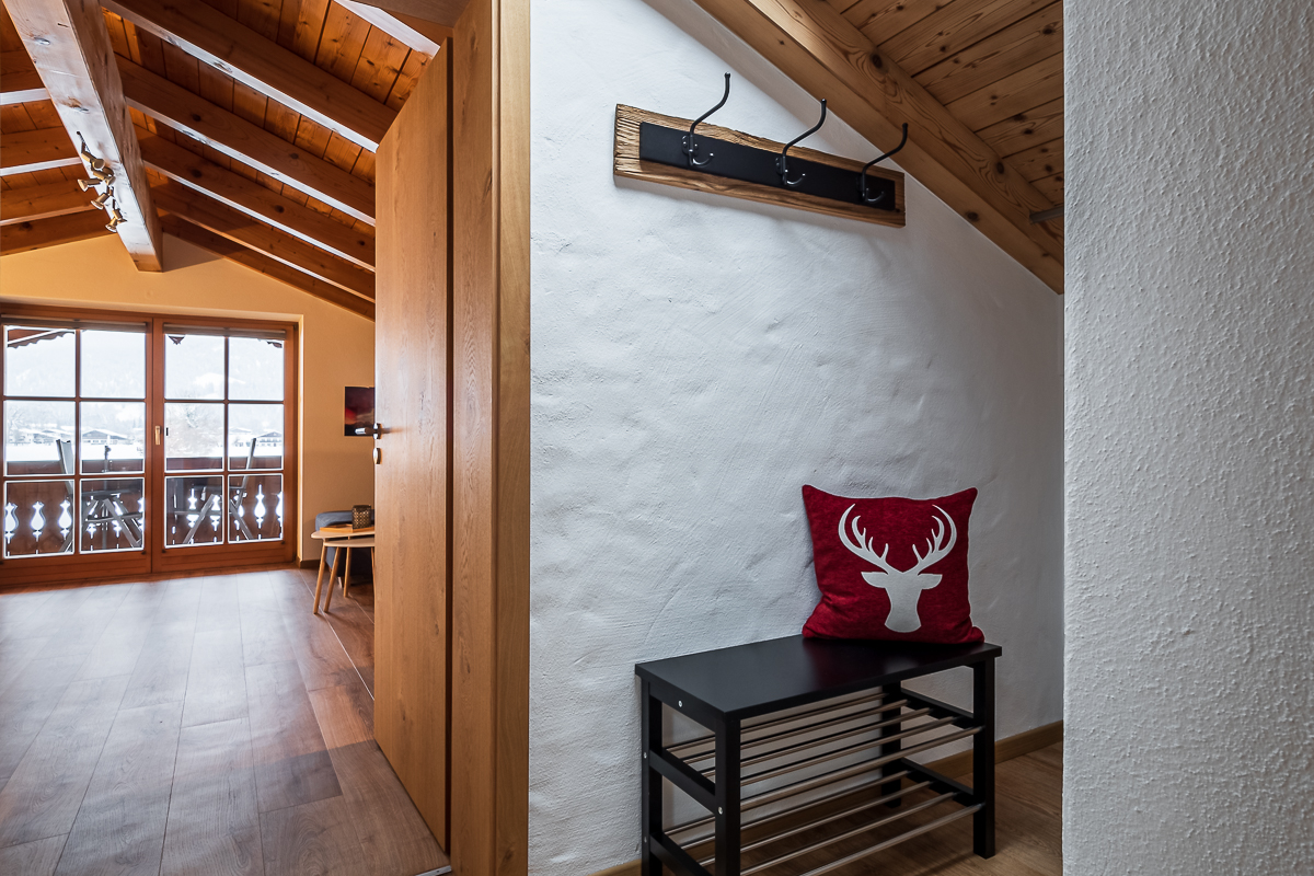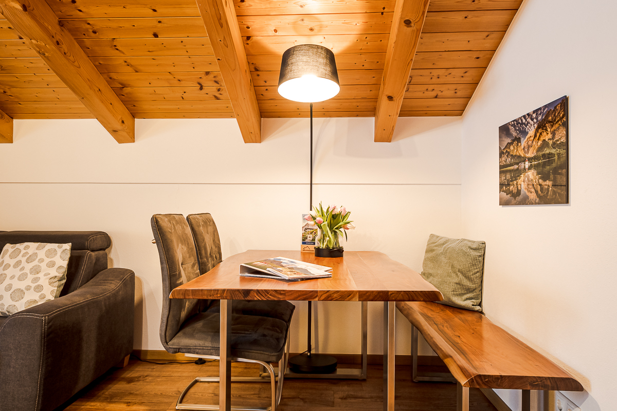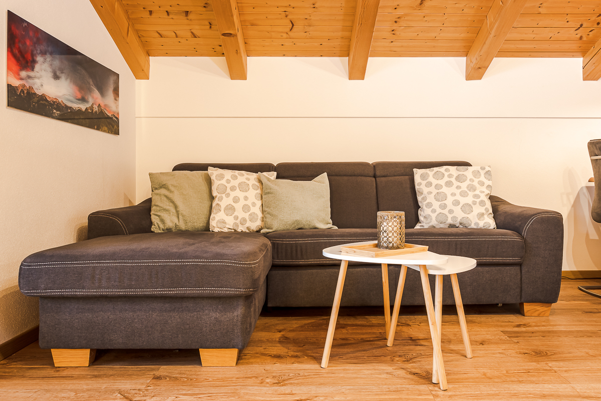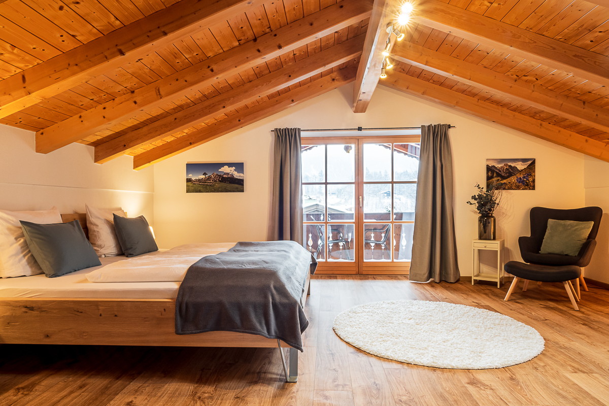 Unsere liebevoll modern und rustikal eingerichtete Ferienwohnung befindet sich im Dachgeschoss unseres Hauses und besteht aus einem Wohn- und Essbereich, einem Bad mit Dusche und WC und einem großen separaten Schlafzimmer. Der Wohnraum ist mit einer Essecke, einer gemütlichen Couch mit TV und einer großzügigen Küche ausgestatte. Die gemütliche Wohnung ist ca. 65 qm groß und wurde im Jahr 2018 neu renoviert. Sie verfügt zudem über einen ost- und einen westseitigen Balkon mit Sitzgelegenheiten und herrlicher Aussicht auf die Berchtesgadener Bergwelt. Bettwäsche und Handtücher werden kostenlos zur Verfügung gestellt. Die Endreinigung, sowie Strom, Heizung und Wasser sinhd im Preis enthalten.