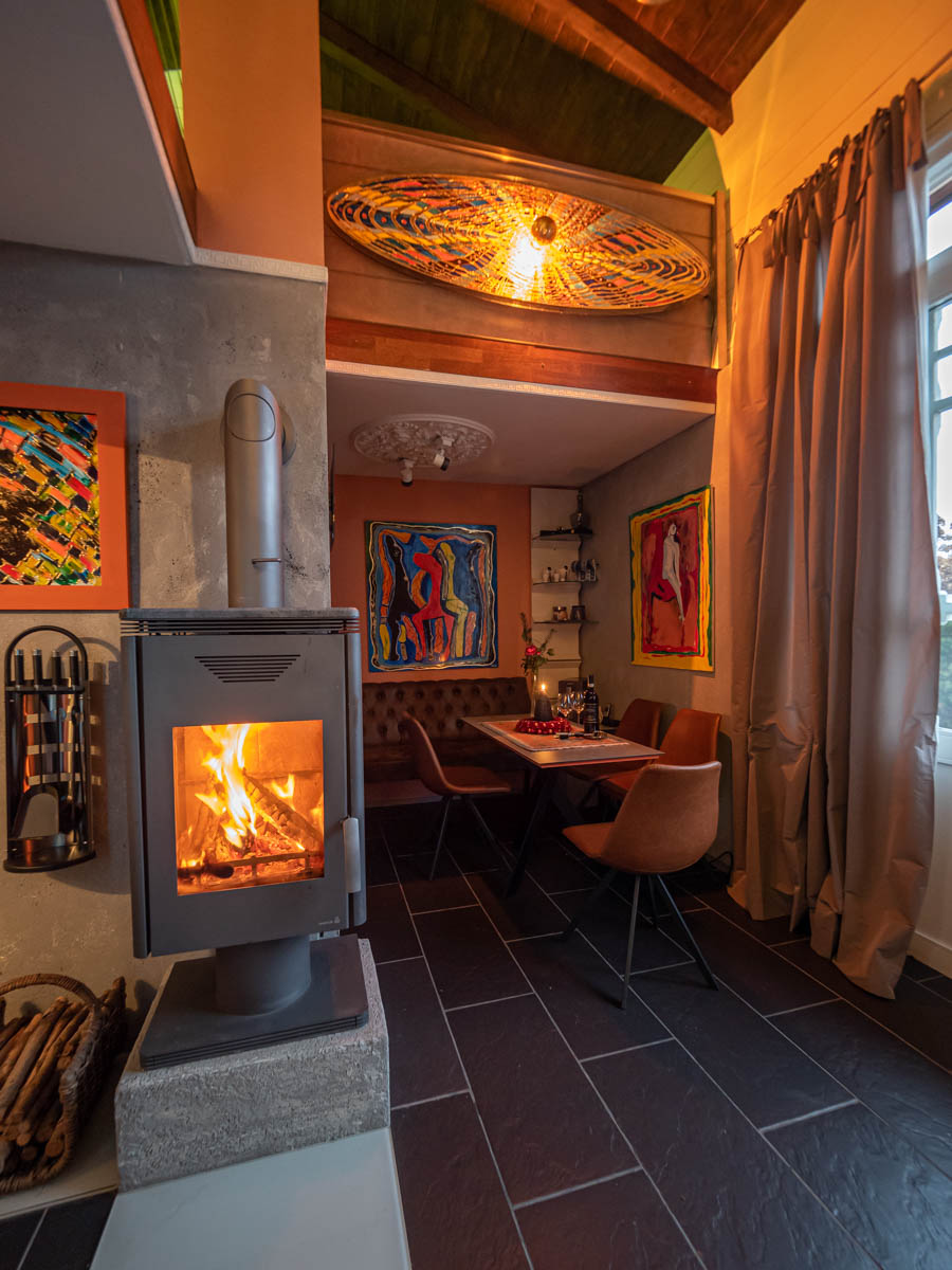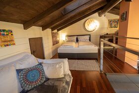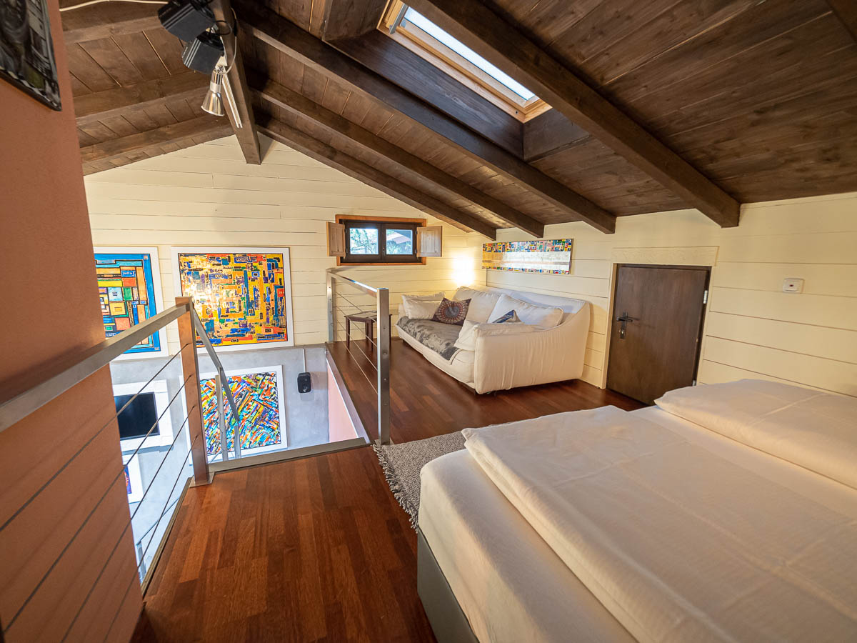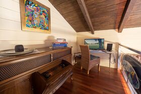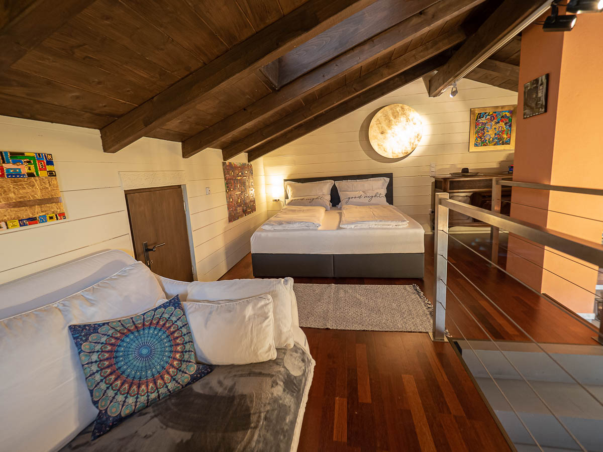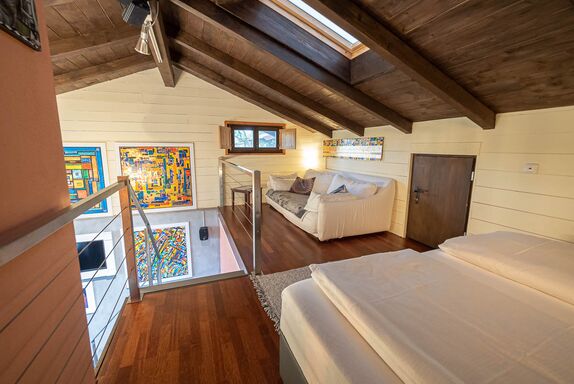 Ein loft-artiges Künstleratelier auf 2 Ebenen umgeben von Kunst, Kultur und Natur heißt Sie herzlich willkommen.Verbringen Sie die schönste Zeit des Jahres im wunderschönen Chiemgau.Werke von Ewald Stolze prägen das besondere Ambiente dieses Feriendomizils, traumhaft gelegen direkt am Rande des Naturschutzgebietes Bansee.Die Nähe zum Chiemsee und verschiedenen Kulturstätten erfreuen Natur- und Kulturbegeisterte gleichermaßen. Das ehemalige Atelier wurde liebevoll in eine Ferienwohnung mit loft-artigem Flair und außergewöhnlichem Ambiente verwandelt. Sie verteilt sich auf 2 Ebenen und bietet ausreichend Platz für 2 Personen. Sie betreten die Wohnung im EG durch einen separaten Eingang. Hier befindet sich die Garderobe mit einem großen Kleiderschrank. Das angrenzende Badezimmer ist ansprechend gestaltet und bietet eine Dusche mit Sitzbadewanne. Diverse Pflegeprodukte, Föhn und Handtücher stehen Ihnen selbstverständlich zur Verfügung. Der Wohnbereich mit Sessel und Kamin lädt zum Verweilen ein. Entspannen Sie am Kaminfeuer und öffnen Sie sich für die künstlerische Gestaltung - vielleicht auch akustisch begleitet von einem Fundstück aus der Langspielplattensammlung der Vermieter. Die Küchenzeile mit Tisch und Sitzgelegenheiten ist komplett ausgestattet. Kaffeeliebhaber freuen sich sicher über den hochwertigen Kaffeevollautomat. Kaffeebohnen und diverse Teesorten stehen Ihnen zur Verfügung. Die Galerie im OG erreichen Sie über eine offene Designertreppe. Hier befindet sich der Schlafbereich mit einem Kingsize-Bett, einer Couch mit TV sowie einer kleinen Bibliothek. Eine weitere Couch, die bei Bedarf auch zu einem Queensize-Bett verwandelt werden kann, befindet sich gleich angrenzend. Auf der mit Sitzgelegenheiten und einem Grill ausgestattete Terrasse genießen Sie die schöne Aussicht in die Natur und auf die Chiemgauer Bergkette. SAT-TV, Kabel-TV, eine Stereoanlage, ein Langspielplattengerät sowie eine breite Auswahl an Kunstbänden stehen Ihnen natürlich ebenfalls zur Verfügung. Die Wohnung ist mit einer Fußbodenheizung ausgestattet.Die Atelierwohnung grenzt an das Wohnhaus des Eigentümers. WLAN steht kostenlos zur Verfügung