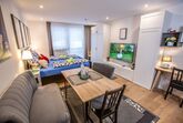 Das Objekt befindet sich im 2. Obergeschoss eines gepflegten Mehrparteienhauses in Siegsdorf. Die Ausstattung lässt keine Wünsche offen, wir haben dieses Appartement im Jahre 2021 kernsaniert und dabei besonderen Wert auf ein Wohlfühlklima gelegt, denn Urlaub ist die schönste Zeit des Jahres. Bei uns erwartet Sie Hotel-Charakter, ohne die Nachteile eines Hotels. Das Bad verfügt über eine Regenwalddusche und Handtuchheizung. Die Küche ist voll ausgestattet und hält u. a. Kaffeemaschine, Mikrowelle und Toaster bereit. Zur weiteren Ausstattung gehört ein großer 55-Zoll-Smart-TV, ein kabelloser Staubsauger von Dyson, kostenfreies Highspeed-WLAN und eine Alexa, über welche Sie u. a. Nachrichten und Radio hören können. Sollten Sie weitere Geräte, wie CD-Radio benötigen lassen Sie es uns bitte wissen. Die Fenster sind 3fach verglast und mit elektrischen Rollläden versehen. Vom Balkon aus haben Sie einen freien Blick auf eine große Wiese und die Berge. Hier können Sie sich erholen und Kraft tanken. Auf Wunsch bieten wir einen Kinderhochstuhl an, die Ferienwohnung bietet auch Platz für Ihr mitgebrachtes Babybett. Im Haus wohnen nur ruhige Leute, die die Ruhe dieser besonderen Lage zu schätzen wissen. Bitte beachten Sie, das Haus verfügt nicht über einen Aufzug.