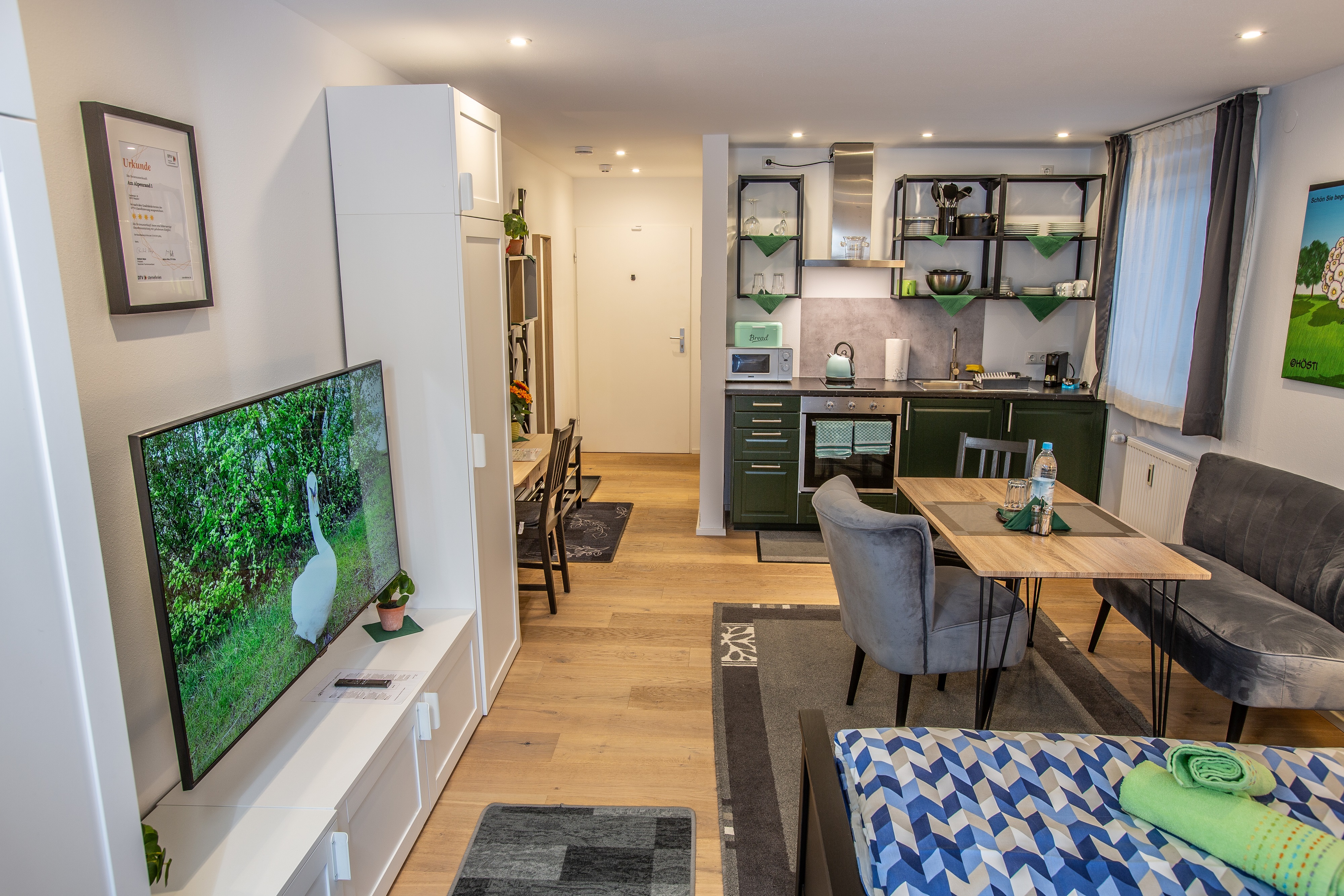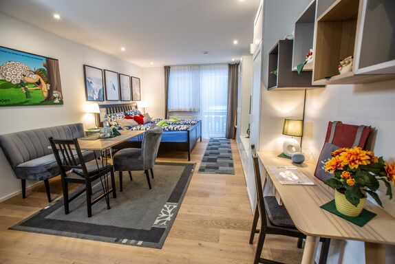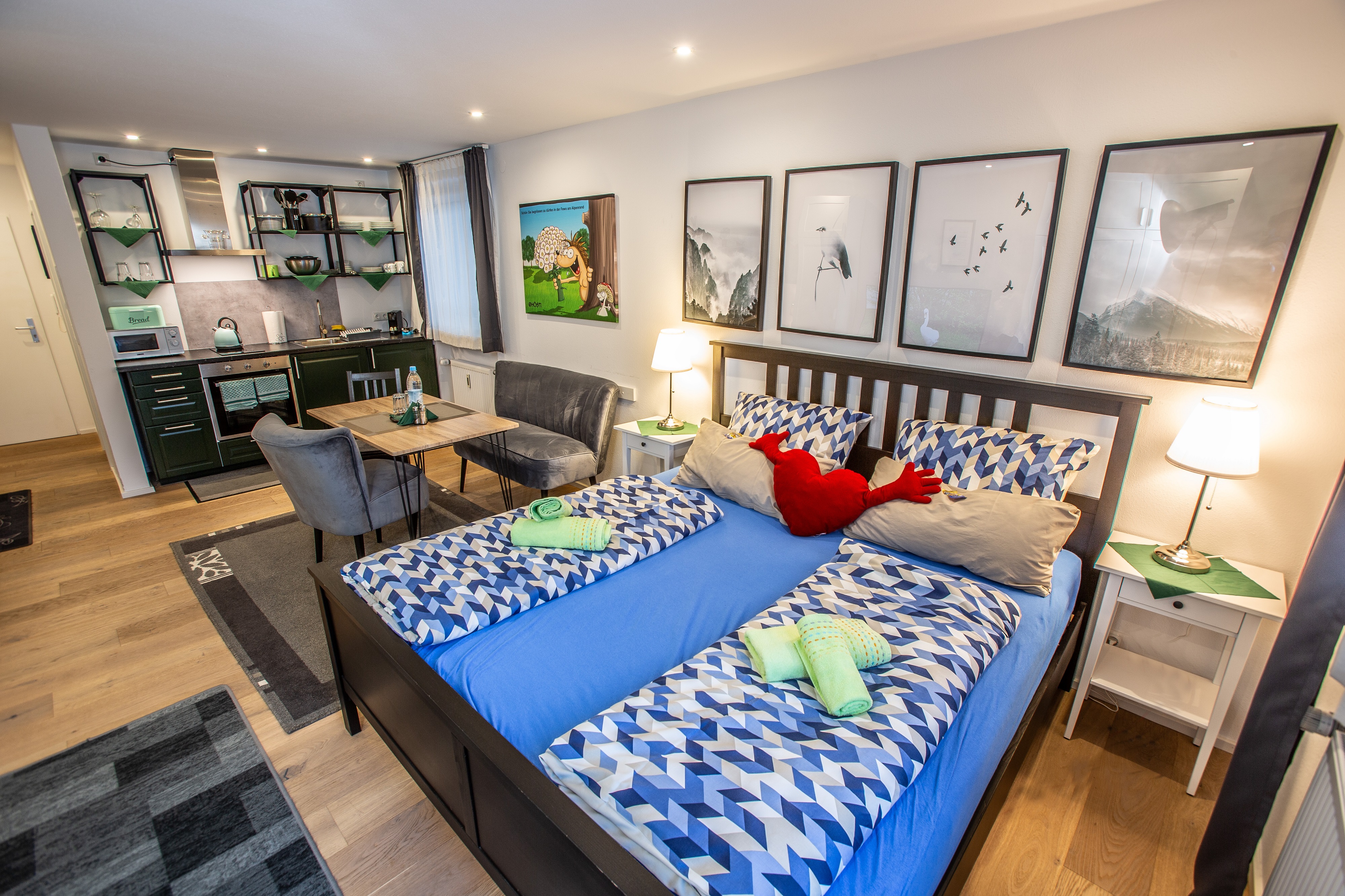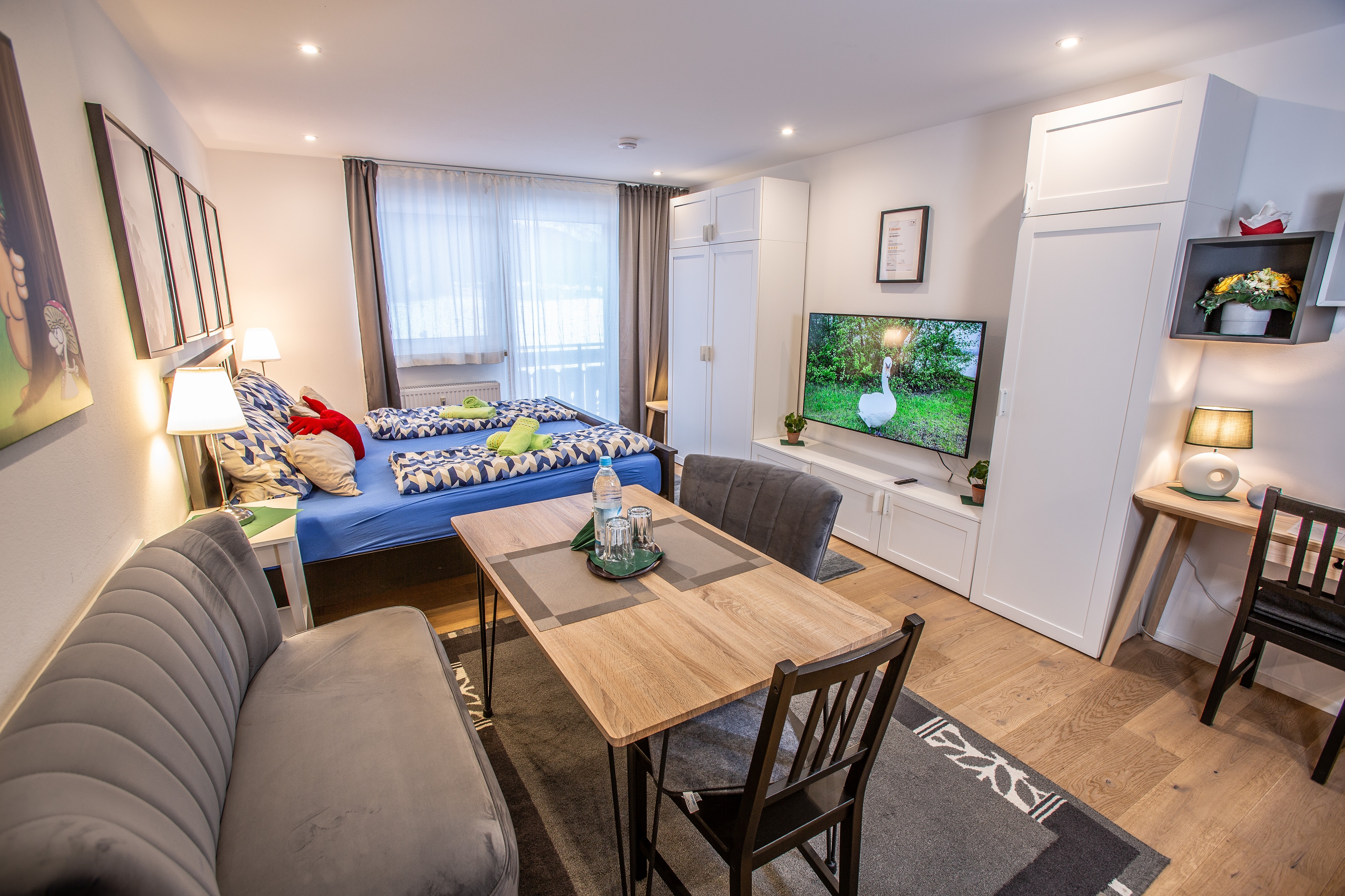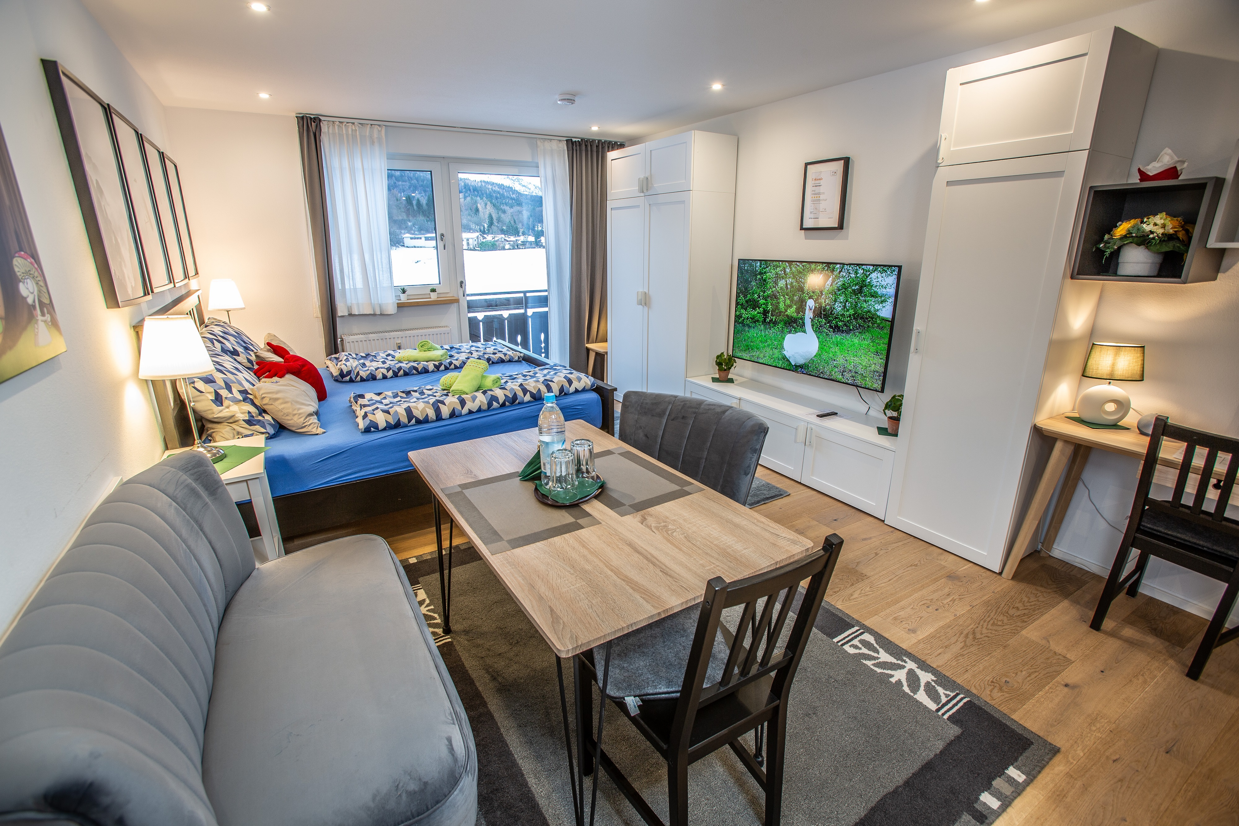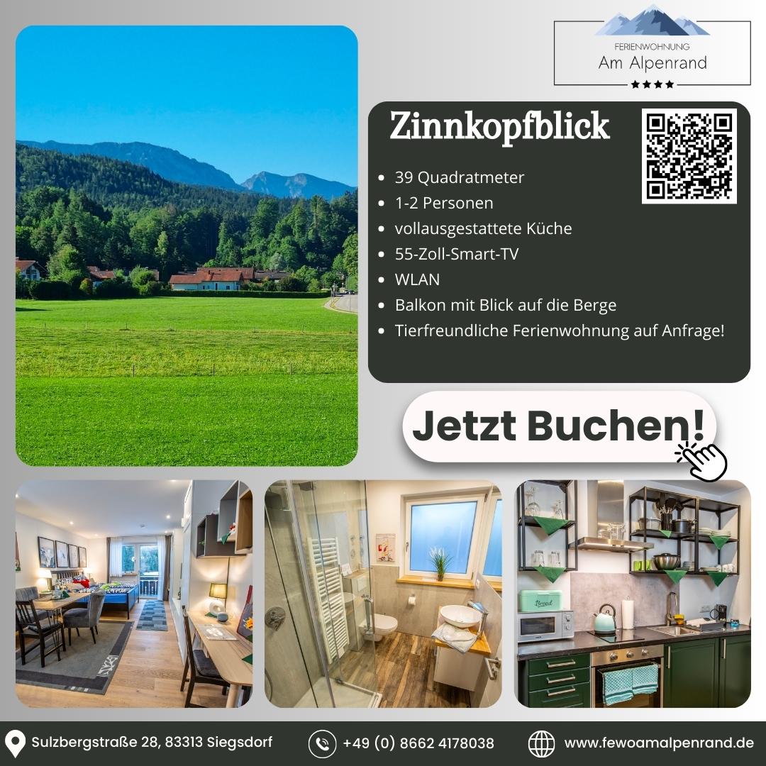 Hallo liebe Interessenten und Gäste unserer frisch sanierten Fewo´s am Alpenrand in 83313 Siegsdorf im schönen Chiemgau. Auszeit: Raum und Zeit für sich selbst haben, ungestört, fern von den Niederungen des Alltags. Den Gedanken nachhängen und träumen, in aller Ruhe zu sich finden. Die Fewo´s bieten die schützende Hülle dafür. Und die Nähe zu allem, nette Cafés und Gaststätten in Siegsdorf in Oberbayern, Sportmöglichkeiten direkt in den Ortschaften Ruhpolding und Inzell, die Städte Rosenheim und Salzburg für einen ausgedehnten Stadtbummel, Wandern im Berchtesgadener Land und tiefe Ruhe inmitten schönster Natur, Vogelgezwitscher am Morgen. Die Lage der Fewo´s könnte nicht günstiger sein: Die Fewo´s sind im schönen Chiemgau Siegsdorf Voralpenland. Von der Autobahnabfahrt Siegsdorf ist es nicht mehr weit – dennoch weit genug, dass die Autobahn nicht stört. Die Fewo´s sind ruhig gelegen, in südwestlicher Richtung und haben für sonnige Stunden einen schönen Balkon – mit herrlichem Bergblick! Wir bieten Ihnen mehr als nur Ferienwohnung. Service wird bei uns groß geschrieben, denn wenn unsere Gäste glücklich sind, dann sind wir es auch. Bei uns bekommen Sie folgende Leistungen:- Garagenstellplatz für Fahrräder- Ski-Aufbewahrung- Brettspiele / Puzzles- Flüssigseife und Papierhandtücher- Reinigung der Wohnung durch professionellen Reinigungsdienst- Ausreichende Lüftung- Aushang und Hinweisschilder- Nahverkehr in der Nähe- 100% Ökostrom (nachhaltig)- Waschsalon / Hemdenservice (auf Wunsch gegen Gebühr)- Zwischenreinigung bei längeren Aufenthalten (gegen Gebühr). Ihr Auto können Sie auf einem für Sie reservierten Stellplatz direkt bei der Unterkunft abstellen. Wir weisen Sie darauf hin, dass keine Barzahlung oder Kreditkartenzahlung vor Ort erfolgen kann.