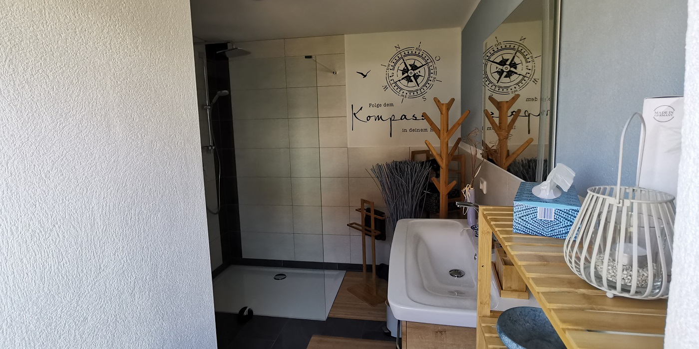 Die 64 qm große EG-Wohnung mit eigenem Eingang bietet alles, was man für einen tollen Urlaub braucht: Eine vollausgestattete Küche mit Herd, Backofen, Spülmaschine, großem Kühlschrank, Mikrowelle, Wasserkocher, Toaster und für ein perfektes Frühstück – einem Kaffeevollautomaten. Zudem steht eine große Essecke in der Küche zur Verfügung. Das helle Wohnzimmer mit einer gemütlichen Schlafcouch, welche für weitere zwei Personen Platz zum Nächtigen bietet, einem Flachbildfernseher und kostenlosem WLAN bieten Raum für entspannte Abende mit den Liebsten. Im Schlafzimmer steht ein Boxspringbett für zwei Personen. Bei Bedarf wechseln wir gerne die Bettwäsche während Ihres Aufenthaltes. Nun zur Relax Oase: Das Badezimmer, das mit Fußbodenheizung, moderner Regendusche sowie Waschmaschine ausgestattet ist, lädt zum Wohlfühlen ein. Hand- und Duschtücher, die wir bei Bedarf gerne austauschen, ein Föhn und ein Kosmetikspiegel stehen für Sie bereit. Die Toilette befindet sich in einem abgetrennten Raum, um den Aufenthalt im Badezimmer angenehmer zu gestalten. Die großzügige Terrasse, welche durch das Wohnzimmer zu erreichen ist, bietet in einem liebevoll angelegten Garten Platz zum Verweilen und Entspannen. Ausgelassene Grillabende lassen sich hier gut verbringen. Eigener Eingang, Stellplatz für 1 -2 Autos vorhanden.