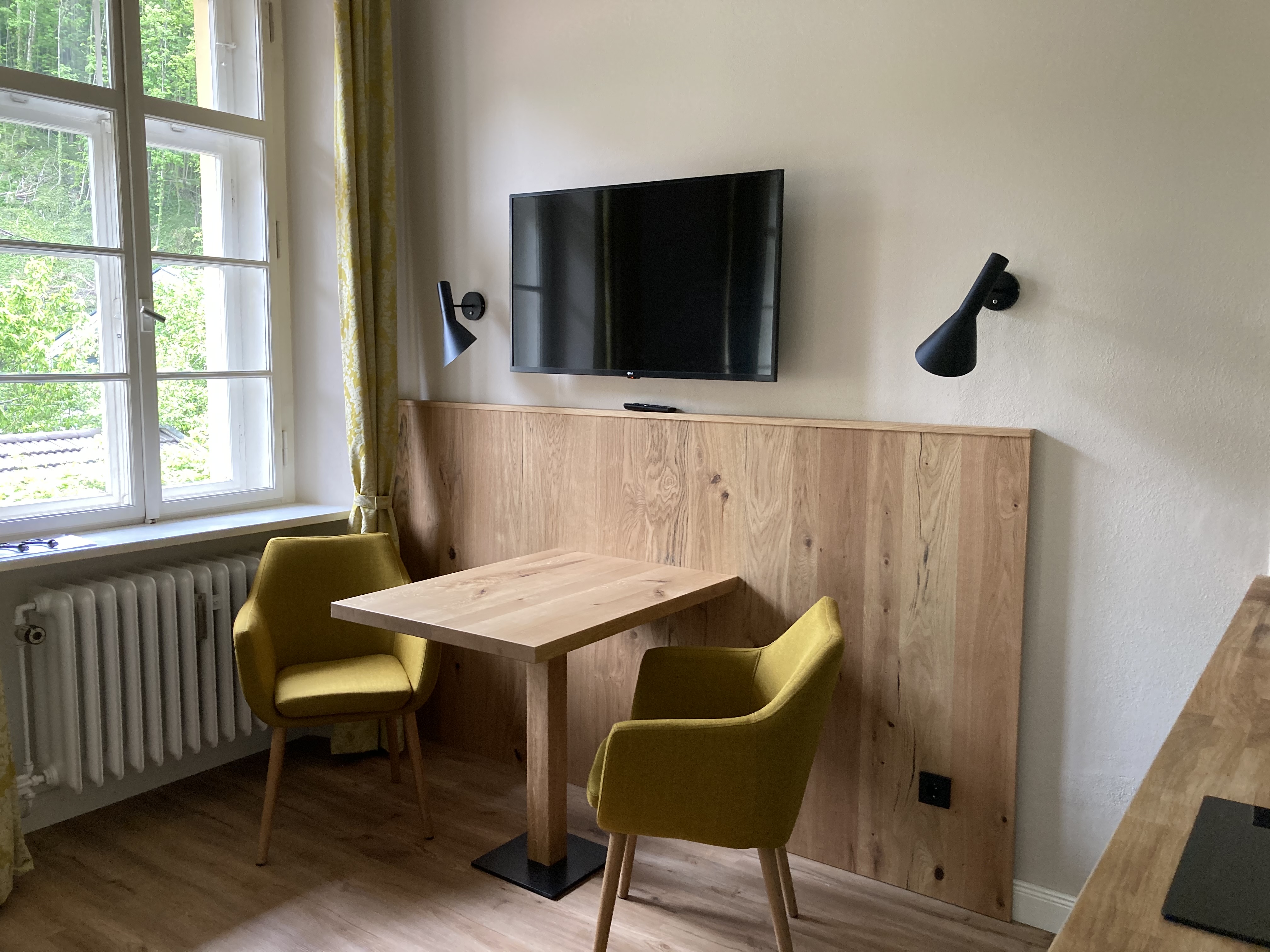 Das komplett neu renovierte Ferienappartement 20 qm erwartet Sie mit einem wunderschönem Burgblick aus der Wohnung. Das Appartement verfügt über einen Raum mit Doppelbett, einem Smart TV, kostenloses WLAN, einer voll ausgestatteten Küchenzeile und einem Essbereich mit sensationellem Blick auf die Schloss Hohenaschau, sowie einem großzügigen Einbauschrank im Flur. Badezimmer mit Dusche und WC. Die Wohnung hat keinen Balkon, Hunde und Haustiere dürfen nicht mitgebracht werden.