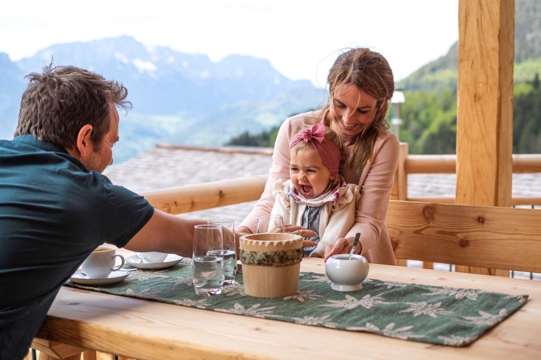 Das Almdorf Vorderbrand befindet sich in Traumlage. Die sechs atemberaubenden Almhütten liegen auf ca. 1078 m.ü.N.N. in Schönau a. Königssee. Nicht ganz oben, aber deutlich drüber. Man hat von jeder Alm-Hütte einen wunderbaren Blick auf den Talkessel von Berchtesgaden, umrahmt von der Bergkulisse. Nur wenige Höhenmeter weiter, kann man auch den Königssee sehen. Es ist ein perfekter Startpunkt für viele Berg- und Wandertouren. Die Mittelstation der Jennerbahn ist mit ca. 1 km Fußmarsch zu erreichen. Das Almdorf Vorderbrand bietet sechs liebevoll und gemütlich eingerichtete Almhütten. Davon zwei kleinere Almhütten mit einem Schlafzimmer und vier größere Almhütten mit zwei Schlafzimmern. Die Almhütten wurden an einem Hang errichtet, so stehen die Hütten erhaben und eine nach der anderen, erhöht im Gelände. Der Weg zu den Hütten ist im Winter beheizt und bei Nacht beleuchtet. Jede Alm hat eine großzügige Terrasse, die mit Grill, verschiedenen Sitzmöglichkeiten, sowie mit einem Whirlpool ausgestattet ist.Außerdem gehört zu jeder Alm eine Stellplatzüberdachung, sowie eine Mini-Garage für Fahrräder, Ski, Schlitten und Co.Steckdosen für E- Bikes und Ladestationen für Elektrofahrzeuge stehen ebenfalls zu Verfügung.Alle Hütten haben Fußboden-Heizung und einen gemütlichen Gas-Kaminofen. Das wird durch ein Block-Heizkraftwerk bewerkstelligt. Das Almdorf Vorderbrand zählt zu den klimafreundlichen Gastgebern der Gemeinde Schönau a. Königssee.