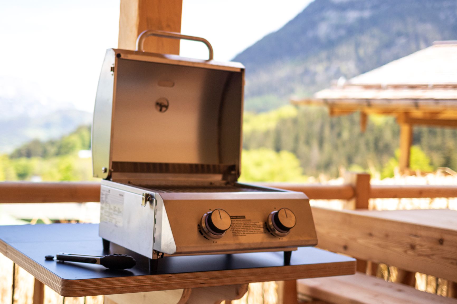 • eine großzügige Panorama-Terrasse mit Gas-Grill und verschiedenen Sitzmöglichkeiten