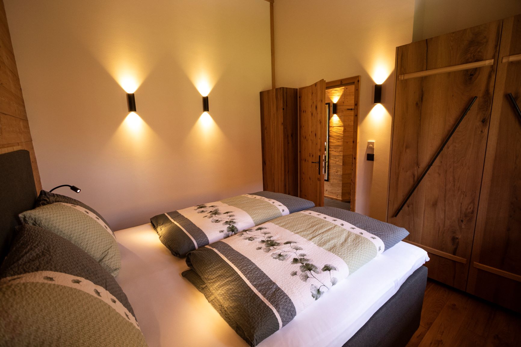 Das Almdorf Vorderbrand befindet sich in Traumlage. Die sechs atemberaubenden Almhütten liegen auf ca. 1078 m.ü.N.N. in Schönau a. Königssee. Nicht ganz oben, aber deutlich drüber. Man hat von jeder Alm-Hütte einen wunderbaren Blick auf den Talkessel von Berchtesgaden, umrahmt von der Bergkulisse. Nur wenige Höhenmeter weiter, kann man auch den Königssee sehen. Es ist ein perfekter Startpunkt für viele Berg- und Wandertouren. Die Mittelstation der Jennerbahn ist mit ca. 1 km Fußmarsch zu erreichen. Das Almdorf Vorderbrand bietet sechs liebevoll und gemütlich eingerichtete Almhütten. Davon zwei kleinere Almhütten mit einem Schlafzimmer und vier größere Almhütten mit zwei Schlafzimmern. Die Almhütten wurden an einem Hang errichtet, so stehen die Hütten erhaben und eine nach der anderen, erhöht im Gelände. Der Weg zu den Hütten ist im Winter beheizt und bei Nacht beleuchtet. Jede Alm hat eine großzügige Terrasse, die mit Grill, verschiedenen Sitzmöglichkeiten, sowie mit einem Whirlpool ausgestattet ist.Außerdem gehört zu jeder Alm eine Stellplatzüberdachung, sowie eine Mini-Garage für Fahrräder, Ski, Schlitten und Co.Steckdosen für E- Bikes und Ladestationen für Elektrofahrzeuge stehen ebenfalls zu Verfügung.Alle Hütten haben Fußboden-Heizung und einen gemütlichen Gas-Kaminofen. Das wird durch ein Block-Heizkraftwerk bewerkstelligt. Das Almdorf Vorderbrand zählt zu den klimafreundlichen Gastgebern der Gemeinde Schönau a. Königssee.