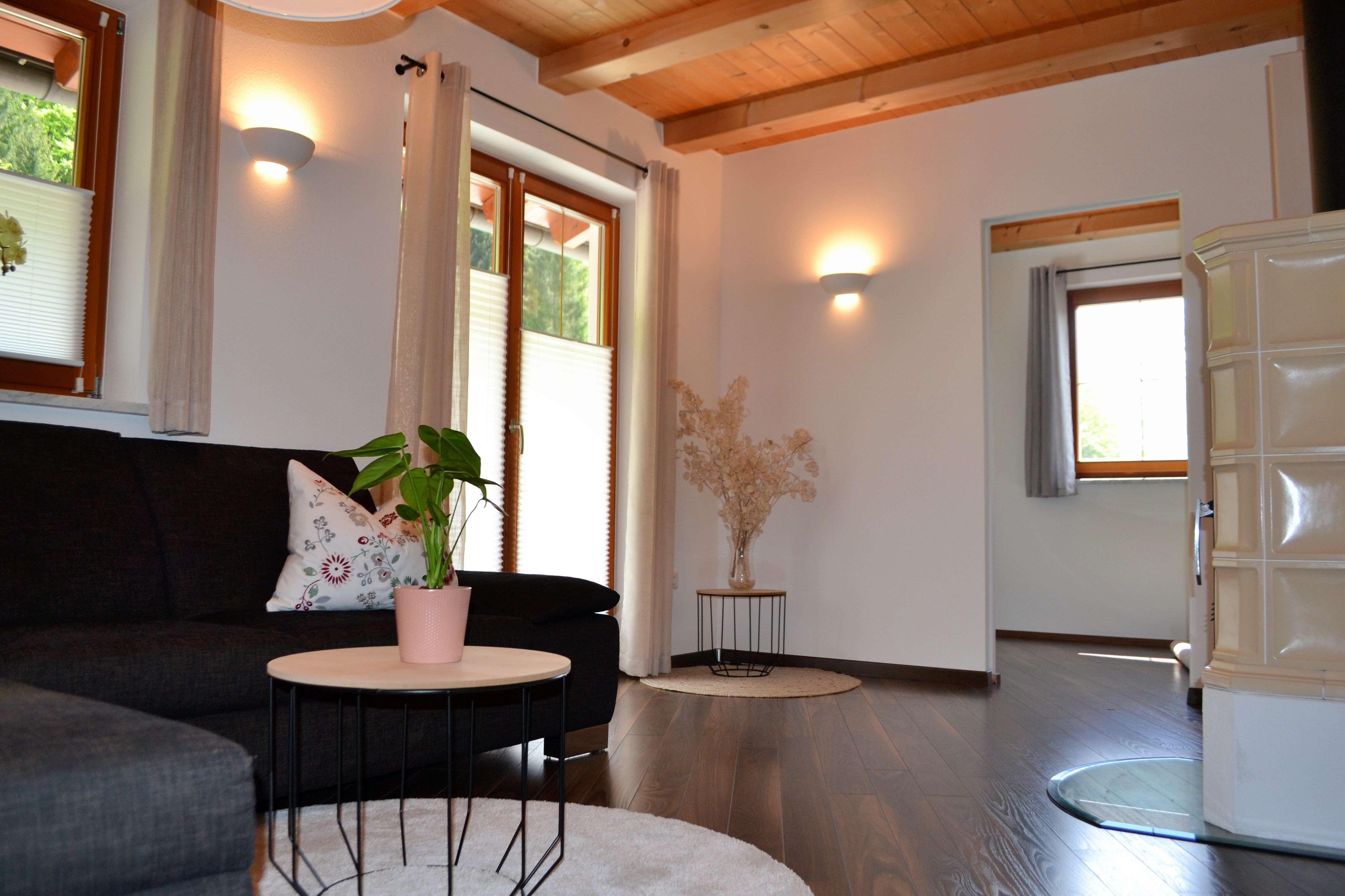 Die Wohnung ist mit 2 Schlafzimmern, einmal mit einem Doppelbett 180×200 und großen Kleiderschrank ausgestattet .Das kleinere ist mit zwei 90×200 Einzelbetten ausgestattet. Wir bieten kostenloses WLAN an. Ein Fernseher und ein Radio/CD-Player/Kassettenrecorder steht in der Küche für Sie bereit. Das Bad ist mit Dusche, WC und einer großen Badewanne ausgestattet. Handtücher, Fön und ein Kosmetikspiegel sind vorhanden. Unser Wohnzimmer verfügt über eine gemütliche Couch, einem Kachelofen, sowie einigen Büchern und Brettspielen. Die Küche ist voll ausgestattet mit Kaffeemaschine, Toaster, kleine Spülmaschine, Kühlschrank inkl. Gefrierfach. Auf dem Balkon finden Sie eine Sitzgelegenheit für 4-5 Personen, ein Babyhochstuhl ist vorhanden.