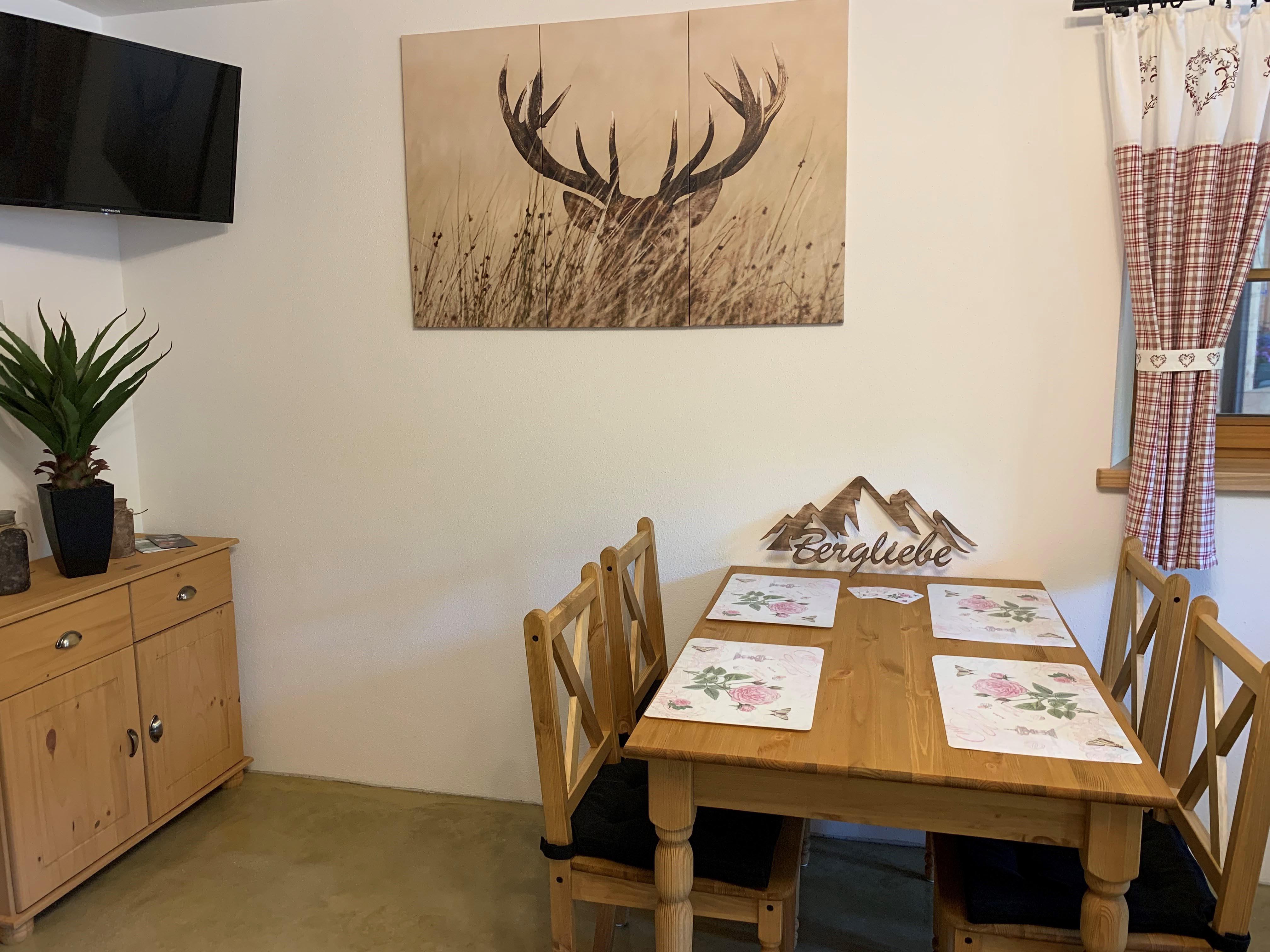 Die Ferienwohnung Bergliebe begrüßt Sie in Kiefersfelden. Die Ferienwohnung liegt im Erdgeschoß und verfügt über einen eigenen Eingang. Kostenfreies WLAN und Parkmöglichkeiten an der Unterkunft stehen für unsere Gäste zur Verfügung. Die Unterkunft hat ein Schlafzimmer mit Doppelbett 180 x200 cm; Bad mit Dusche/WC; der Wohnraum ist mit einer Küchenzeile, Essplatz, Schlafsofa und Flachbild-SAT TV ausgestattet. An der Unterkunft steht unseren Gästen eine kleine Terasse mit Essplatz, Sonnenliegen und Grill zur Verfügung. Für Kinder sind Brettspiele und Malbücher in der Ferienwohnung hinterlegt. Outdoorspielzeuge stehen für die Kinder bereit. Für unsere Gäste steht eine Waschmaschine und ein Wäschetrockner, gegen Gebühr, zur Verfügung.