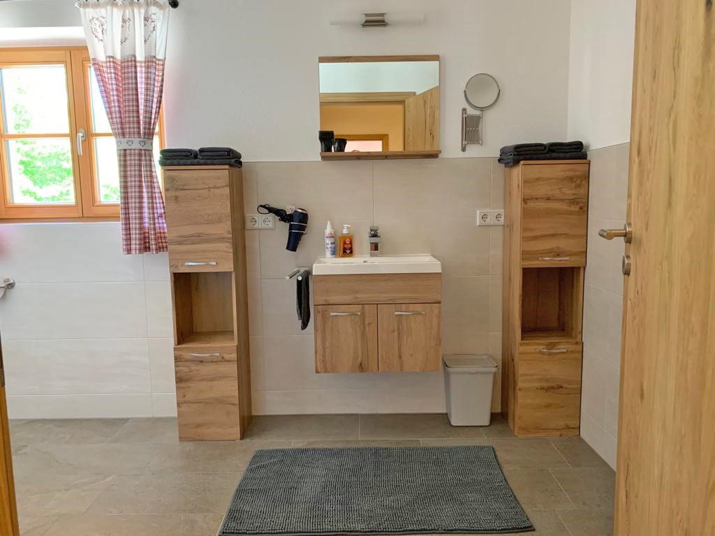 Die Ferienwohnung Bergblick begrüßt Sie in Kiefersfelden. Die Ferienwohnung liegt im 1. OG und 2:OG und verfügt über einen eigenen Treppenaufgang. Kostenfreies WLAN und Parkplätze an der Unterkunft, stehen unseren Gästen zur Verfügung. Die Unterkunft hat 2 Schlafzimmer: 1. Schlafzimmer mit Doppelbett 180 x 200 cm; 2. Schlafzimmer mit Doppelbett 180 x 200 cm und Hochbett 140 x 200 cm; Bad mit Dusche und WC; seperates WC; der Wohnraum ist mit einer Küchenzeile, Essplatz, Couch, sowie Flachbild - SAT TV ausgestattet. Eine große Dachterasse, direkt vor der Unterkunft ist mit einem Essplatz, Grill, Sonnenschirm und Sonnenliegen ausgestattet. Für Kinder stehen Brettspiele, Puzzle und Outdoorspiele zur Verfügung. Für unsere Gäste steht eine Waschmaschine und ein Wäschetrockner, gegen Gebühr, zur Verfügung.
