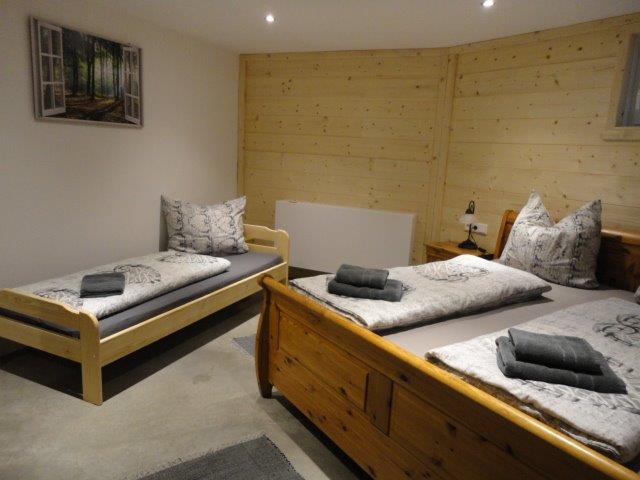 Wir begrüßen unsere Gäste der Ferienwohnung Fuchsbau im schönen Kieferbachtal, ca 4 km außerhalb von Kiefersfelden, umgeben von Bergen am idyllischen Kieferbach gelegen. Die Ferienwohnung liegt im Untergeschoß und verfügt über einen eigenen Treppenabgang. Kostenfreies WLAN und Parkplätze an der Unterkunft, stehen für unsere Gäste zur Verfügung. Die Unterkunft verfügt über 3 Schlafzimmer, 2 Bäder und 1 großen Wohnraum mit Küchenzeile und Essplatz, sowie einer gemütlichen TV-Ecke mit Ecksofa, Sessel und Flachbild-SAT-TV. Für Kinder stehen Brettspiele und Malstifte zur Verfügung. Wir möchten unsere Gäste nochmal darauf hinweisen, dass die Wohnung im Untergeschoß liegt. Jedes Schlafzimmer und der Wohnraum haben ein Fenster, denoch ist in dieser Wohnung nicht viel Tageslicht. Für unsere Gäste steht eine Waschmaschine und ein Wäschetrockner, gegen Gebühr, zur Verfügung.