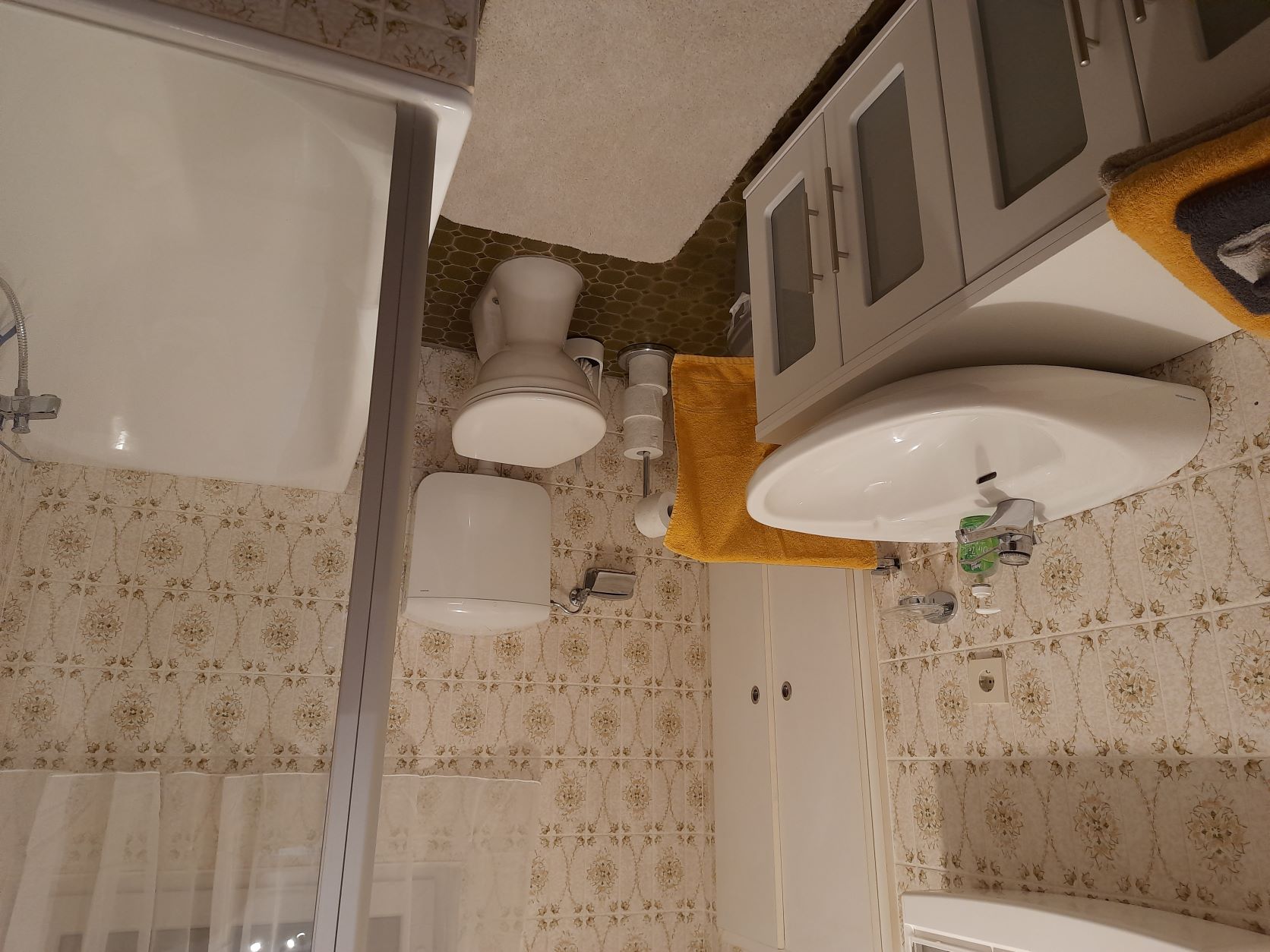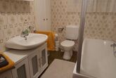 Das Bad ist mit Waschtisch, Badewanne/Dusche und WC ausgestattet.