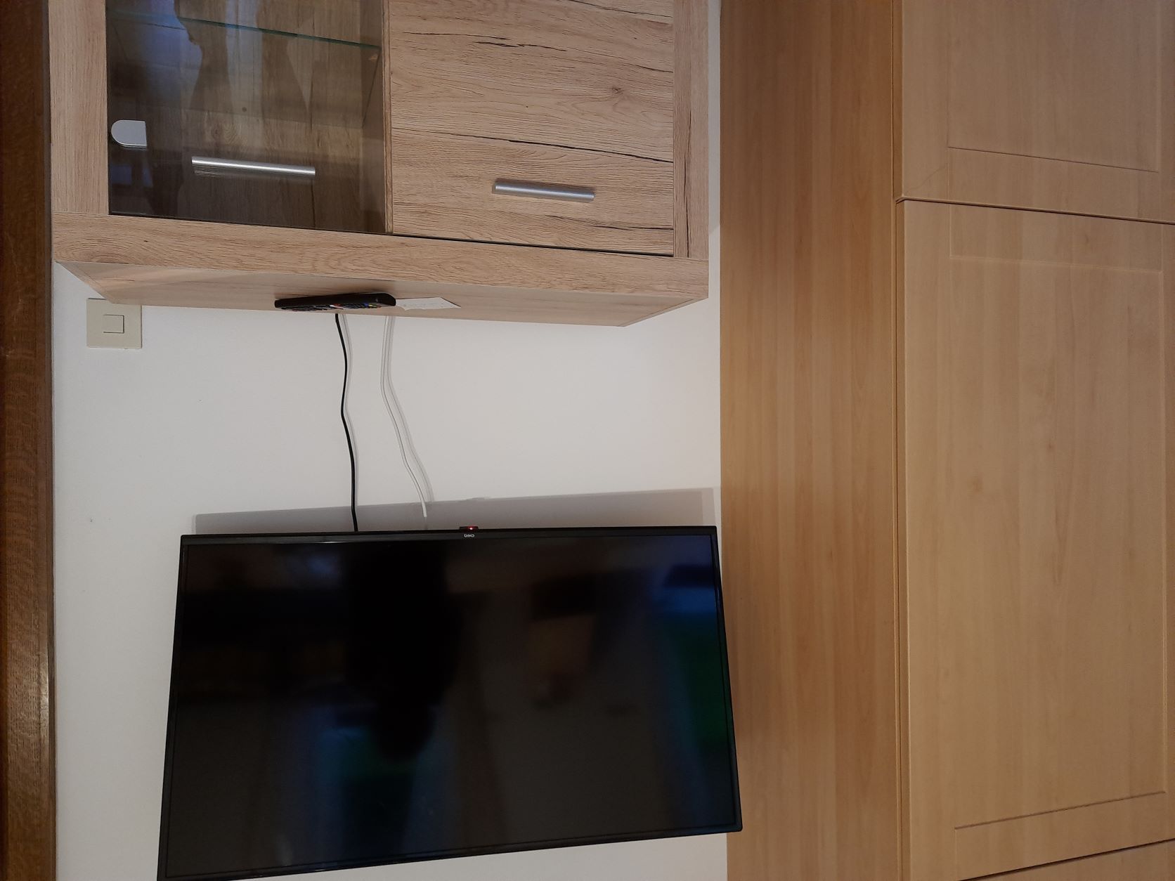 Der Wohnbereich verfügt über eine große Couch (Schlafsofa), Tisch und Board, hat Sat-TV und W-LAN Gastzugang, großer Flachbildschirm.