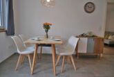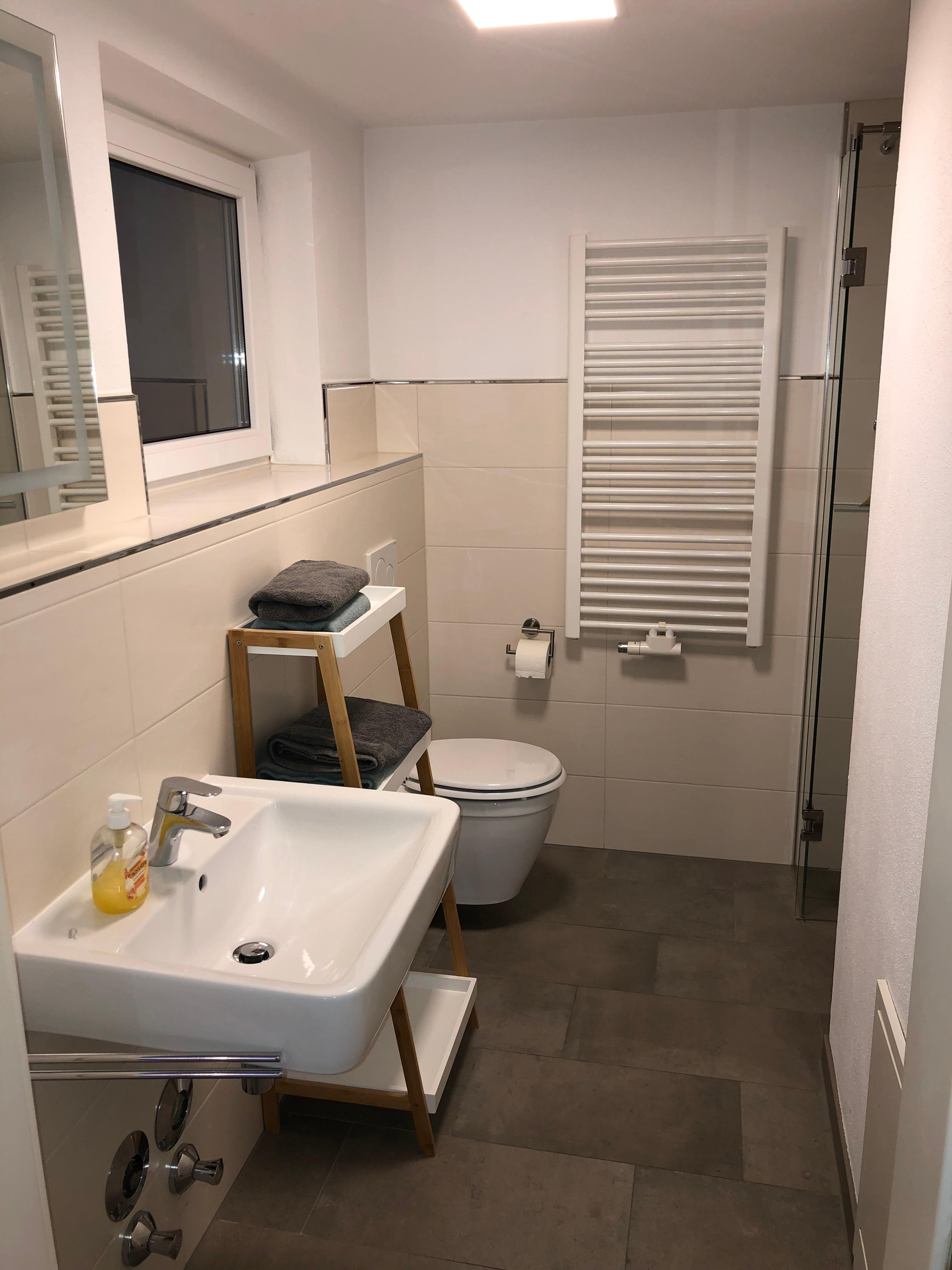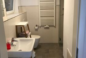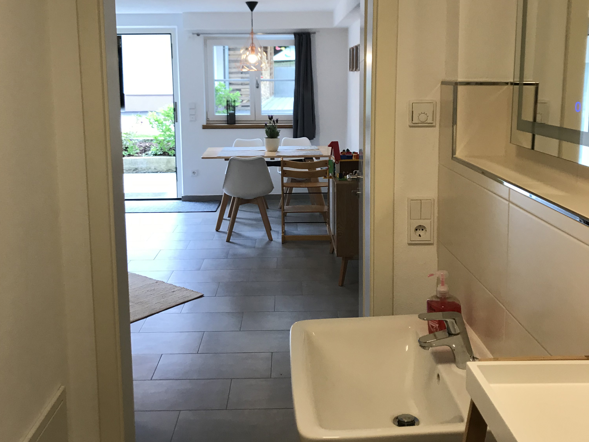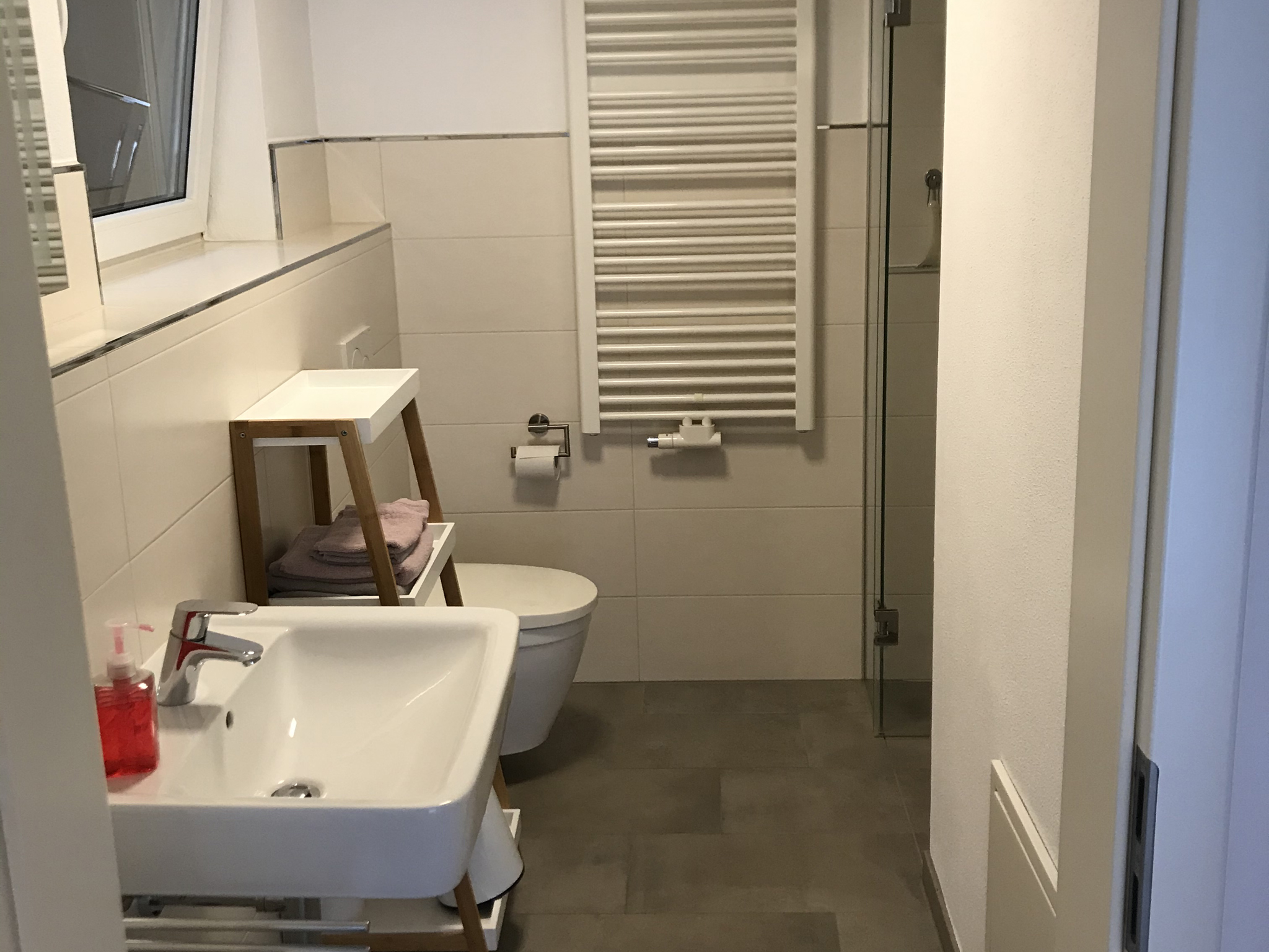 Die Ferienwohnung befindet sich in unserem Einfamilienhaus. Sie umfasst 40qm mit separatem Eingang und ist eine 1,5 Zimmer Ferienwohnung. Im ersten Raum befindet sich die Wohnküche mit Essecke. Angrenzend befindet sich das Wohn- Schlafzimmer mit Doppelbett und Schlafsofa. Zudem besitzt die Wohnung ein modernes Bad mit begehbarer Dusche und Fenster dieses ist aber ohne Tageslicht. Eine eigene Terrasse bietet Ihnen Verweilmöglichkeiten im Freien. Ein Parkplatz steht ihnen direkt am Objekt zur Verfügung.