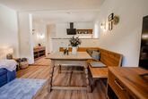 Die Ferienwohnung Untersberg mit ca. 52 qm liegt im ersten Stock. Sie bietet Platz für bis zu zwei Personen. Ein Schlafzimmer mit Dusche / WC / TV, gemütlichem Wohn- Essbereich mit TV offener Küche und zwei Balkone sind vorhanden.Eine separate Suite für zwei Personen ist zubuchbar.