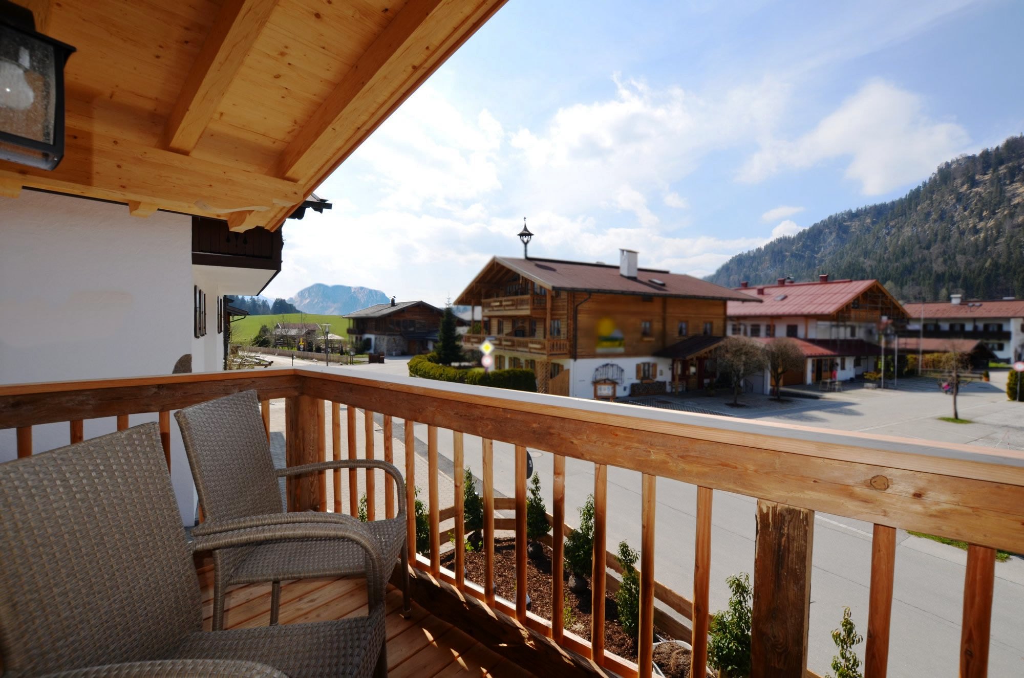 Obergeschoss: Wohnzimmer mit Balkon und herrlichem Blick auf das Kaisergebirge,1 Doppelschlafzimmer und ein weiteres Schlafzimmer mit 2 Einzelbetten