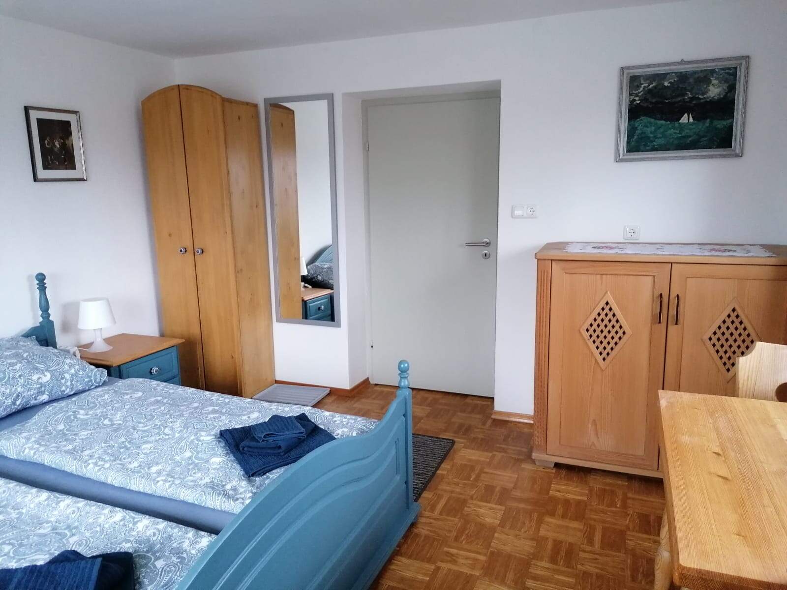 Die Ferienwohnung ist in einem liebevoll renovierten Bauernhaus in ruhiger und traumhafter Lage nahe der Eggstätt-Hemhofer Seenplatte. Diese Ferienwohnung liegt im Erdgeschoss des Bauernhauses und verfügt über eine Küche mit Essbereich, 2 separate Schlafzimmer mit je einem Doppelbett sowie einem Badezimmer mit Badewanne und Waschmaschine. Durch die Ferienwohnung führt ein breiter alter Flur durch welchen auch die Gäste für die Ferienwohnung im Obergeschoss gehen müssen, um zu dieser zu gelangen. Bitte beachten Sie, dass der Flur dann auch von anderen Gästen genutzt wird. Vor dem Haus befindet sich ein großer Garten + Terrasse wo man die Sonne genießen kann oder abends in gemütlicher Atmosphäre den Grill anzünden.