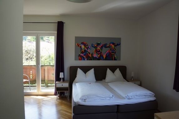 Nach Osten und Westen ausgerichtetes Doppelzimmer mit jeweils einem Balkon nach Osten und Westen. WLAN kostenlos vorhanden. Handtücher und Bettwäsche im Preis enthalten. Neu renoviertes Badezimmer mit Fenster und Dusche.