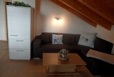 Unsere einzige, großzügig ausgestattete 3 Raum Ferienwohnung mit Westbalkon liegt in sonniger, zentraler Lage. Die ca. 70 qm große Ferienwohnung mit vollverglaster Giebelfront und herrlichem Ausblick auf die umliegenden Berge befindet sich im Dachgeschoss unseres Hauses. Die für max. 4 Personen geeignete Wohnung besteht aus einem Wohnzimmer, zwei separaten Schlafräumen, einem Duschbad mit WC, sowie einem für unsere Gäste nutzbaren Vorraum. Die im Wohnraum eingebaute Küche mit Dunstabzug und gängigen Küchenutensilien wie z.B. Wasserkocher und Kaffeemaschine, ist mit Kühlschrank, Gefrierfach, Mikrowelle, Ceranfeld sowie einem Geschirrspüler ausgestattet. Der Wohnraum verfügt außer dem noch über eine Polstersitzgruppe und einen Essbereich.