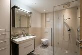 Bei der Renovierung 2022 haben wir besonders darauf geachtet, dass sich auch Menschen mit Gehbehinderungen oder Rollstuhlfahrer*Innen bei uns wohl fühlen können. So gibt es nur 2 kleine Stufen (1,5cm) in der gesamten Wohnung. Die Dusche mit Klappsitz ist ebenerdig zu erreichen. Alle Türen haben eine Durchgangslichte von 80cm.