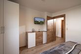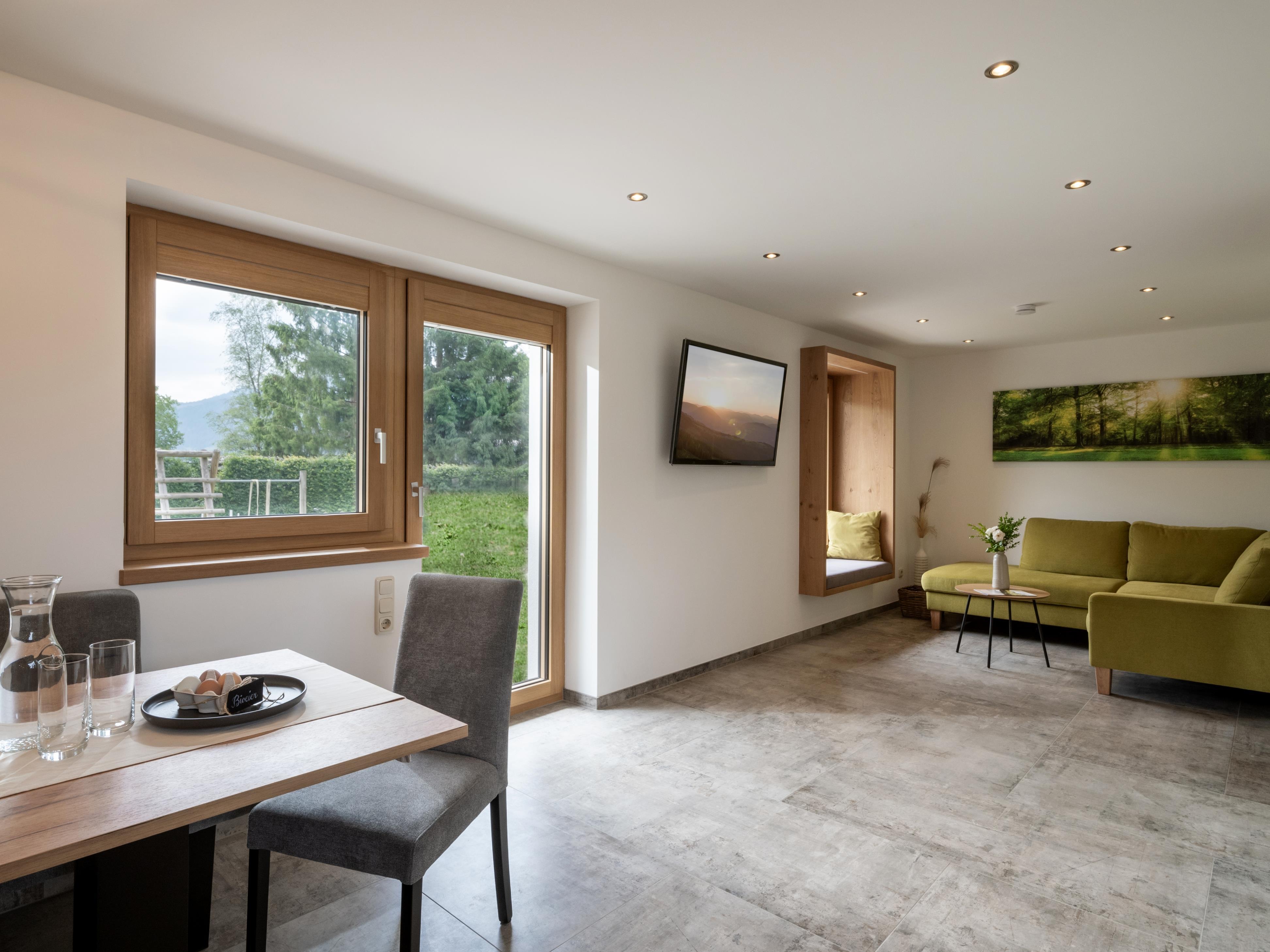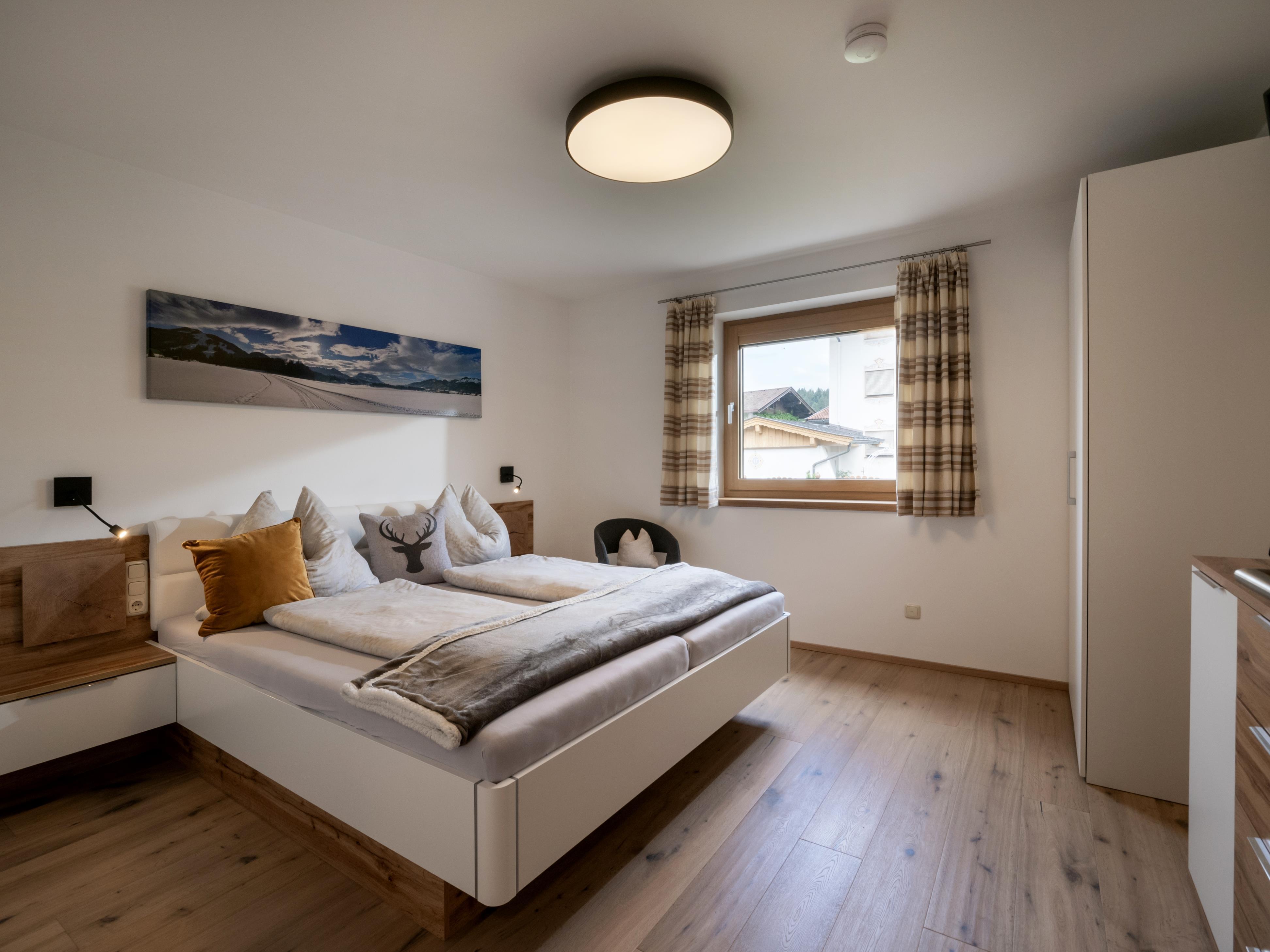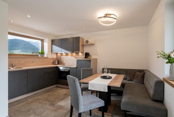 2 Schlafzimmer mit Doppelbetten und eine Schlafmöglichkeit auf der Couch bieten Platz für 5 Personen. Eine voll ausgestattete Küche ermöglicht Ihnen kochen und essen wie zuhause. Wir bieten Ihnen 3 Flat TV`s sowie freien Zugang zu wlan damit Sie sich bei uns so richtig wohl fühlen. Neben einer Essecke mit Bergpanorama können Sie auch im Sitzfenster und auf der Couch die atemberaubende Aussicht genießen. Wir haben mit innenliegenden, elektrisch bedienbaren Verdunkelungsraffstore dafür gesorgt, dass Sie im Urlaub richtig lange ausschlafen können.
