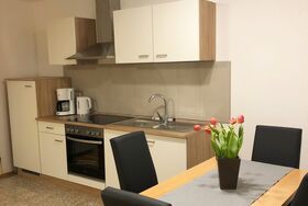 Die Ferienwohnung Leo mit 2 separaten Schlafzimmern liegt mitten im Bad Endorfer Kurzentrum in einem Mehrfamilienhaus. Die Chiemgau Thermen mit dem gesunden Jod-Thermalwasser, Saunawelt, Wellnessbereich und Fitnesszentrum liegen genau gegenüber. In Schlafzimmer Nr. 1 ist ein Doppelbett und im kleinen Schlafzimmer Nr. 2 ein Einzelbett vorhanden. In der Wohn-Essküche gibt es noch eine Schlafcouch für weitere 2 Erwachsene. Ein Bad sowie ein großer Balkon stehen zur Verfügung. Die Wohnung liegt im 1. Stock des Hauses und verfügt zudem über einen Tiefgaragenstellplatz und einen Außenstellplatz. In der Wohnung gibt es kostenloses WLAN. Der Gemeinschaftsgarten bietet sich als Liegewiese sowie als Grillmöglichkeit an.