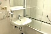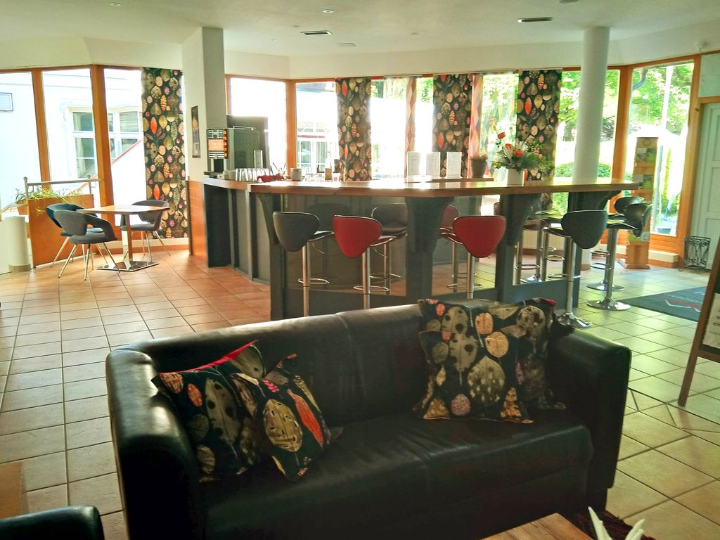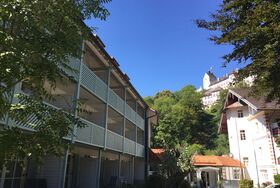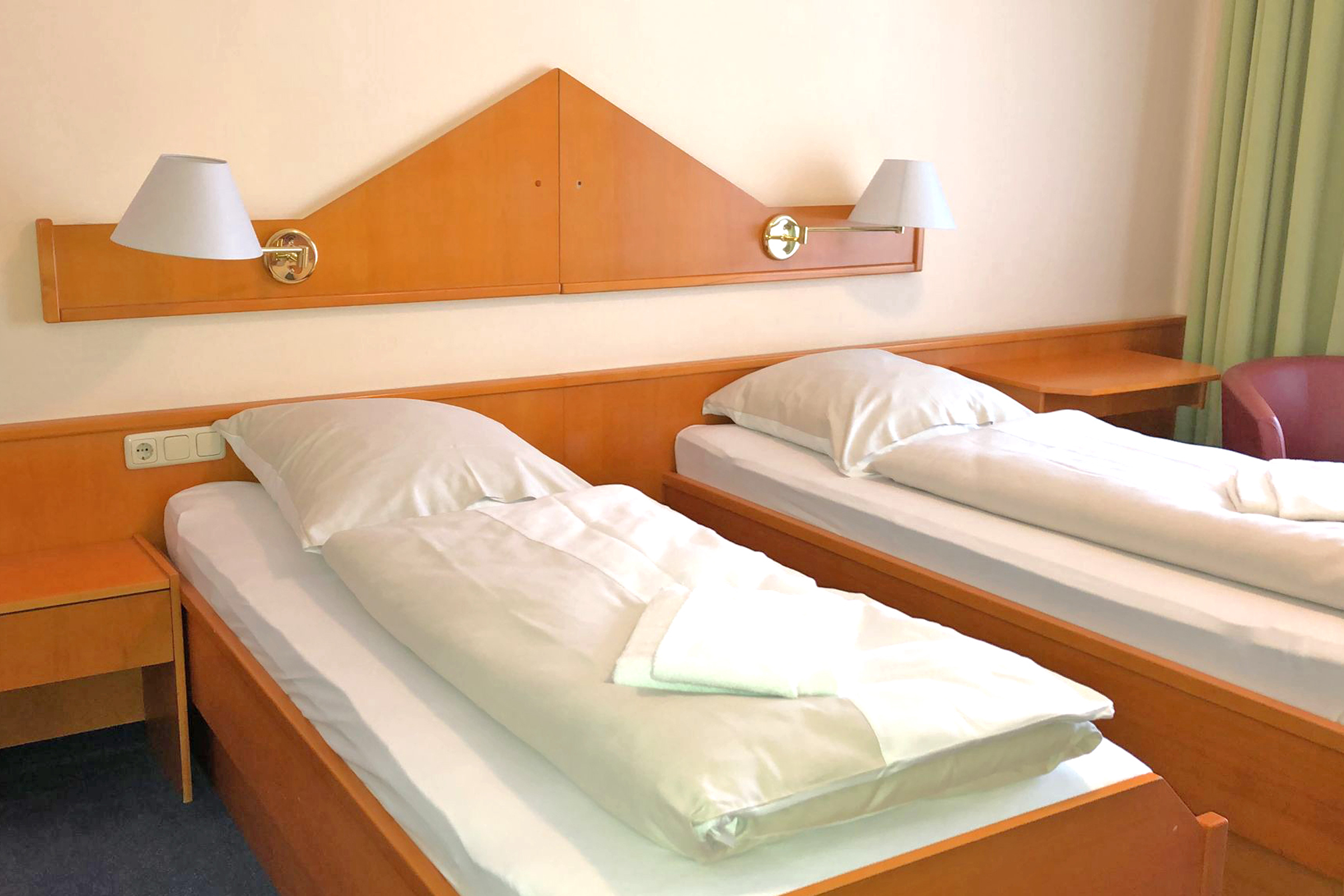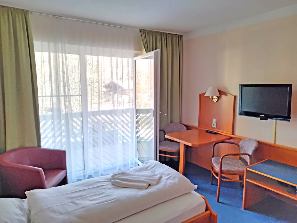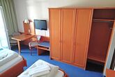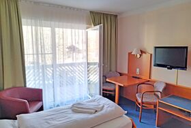 Helles Nichtraucher Appartement-Zimmer Nr. 220 mit 23 qm im 2. Stock und Balkon. Wohn-/Schlafzimmer mit zwei Einzelbetten, Sitzgelegenheit, kostenloses WLAN, Flat-Kabel-TV und Küchenzeile mit Kühlschrank, Kochgelegenheit mit 2-Platten, Mikrowelle, Kaffeemaschine, Toaster und Wasserkocher. Badezimmer mit Badewanne/Dusche, WC und Fön. Bedingt Barrierefrei, für Rollstuhlfahrer leider nicht möglich, mit Gehbehinderung durch Lift im Haus möglich. Keine Haustiere erlaubt.