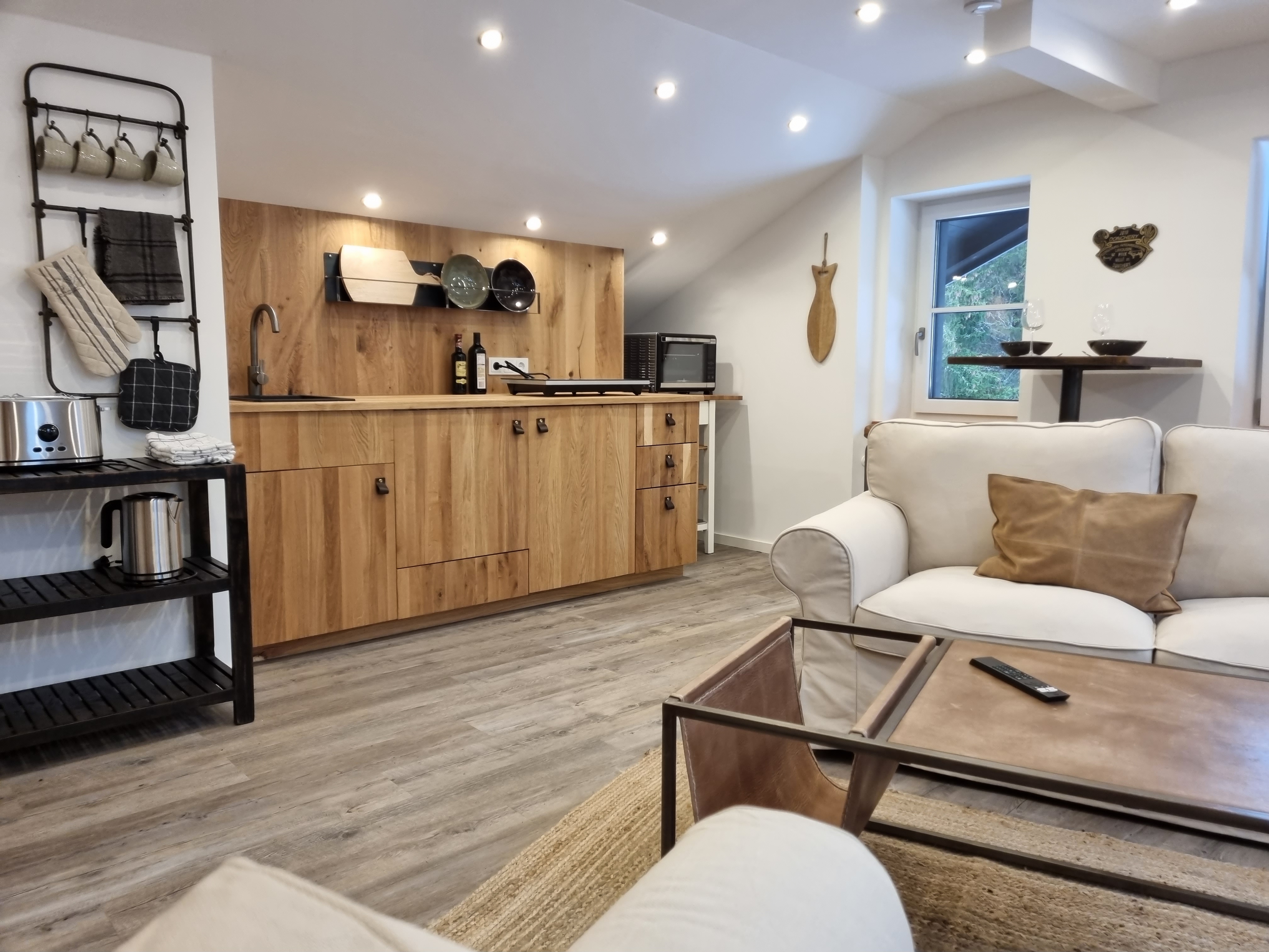 Die perfekte Mischung aus Style und Comfort! Jedes Apartment glänzt durch seinen individuellen Stil und vermittelt sofort das Gefühl von Geborgenheit und Zu Hause. Das traditionsreiche Anwesen wurde 2021 komplett kernsaniert und begrüßt seitdem in 4 exklusiven Apartments seine Gäste. Auf der großen Terrasse und den Balkonen erleben Sie magische Sonnenuntergänge und haben einen direkten Blick in die Natur und die Berge. Ihr freundlicher Hund ist auf Anfrage herzlich willkommen.