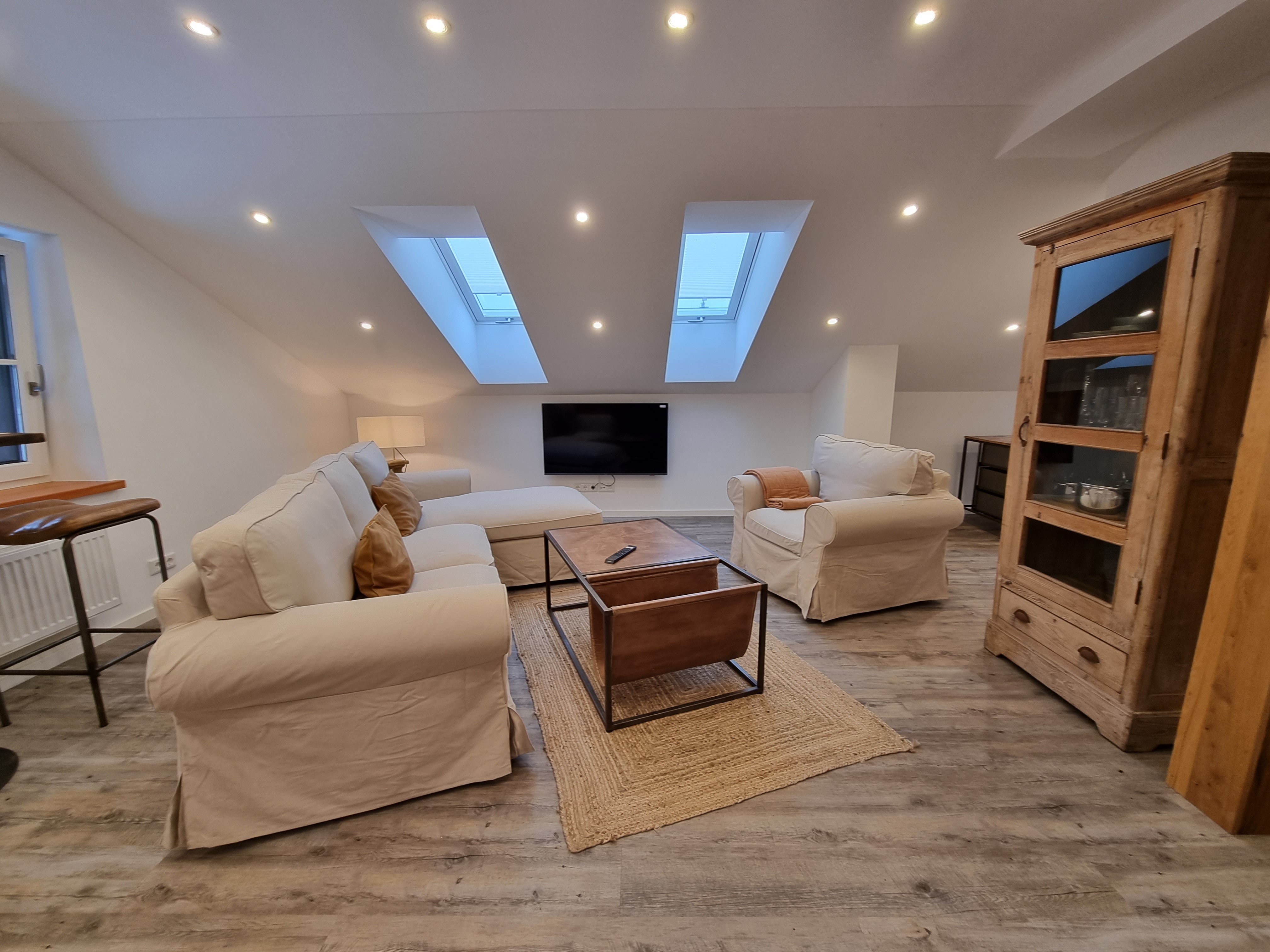 Das offen gestaltetet Apartment mit seinem gütlichen Wohnbereich ist der idealo Ort Zu Zweit. Die moderne Küchenzeile schließt direkt an dem romatischen Essbereich an. Das Schafzimmer ist durch einen massiven Eichenschrank von der restlichen Wohnung abgetrennt. Das Badezimmer wird durch seine große Badewanne im Kerzenschein zu einer Oase der Ruhe und Entspannung.