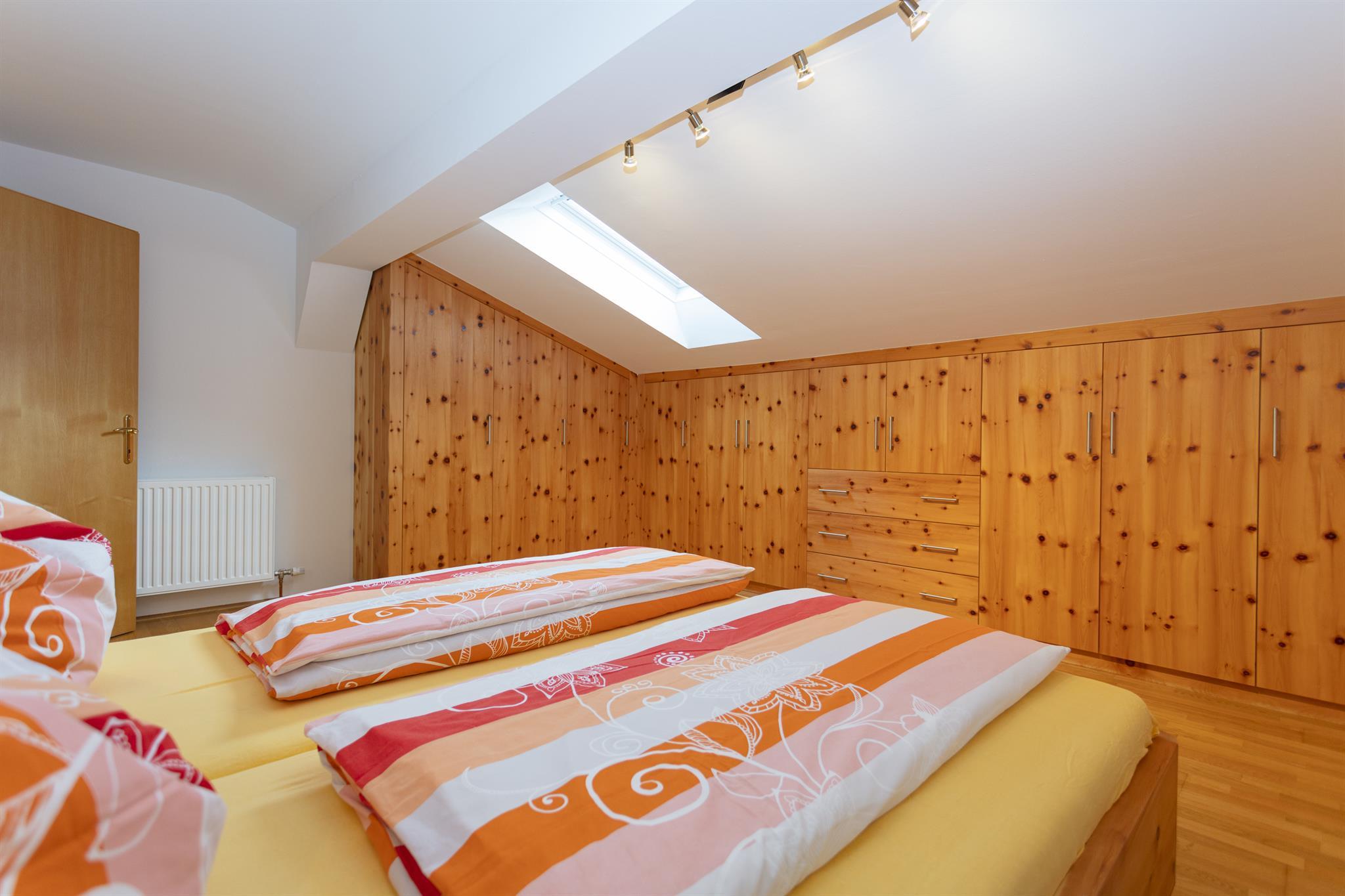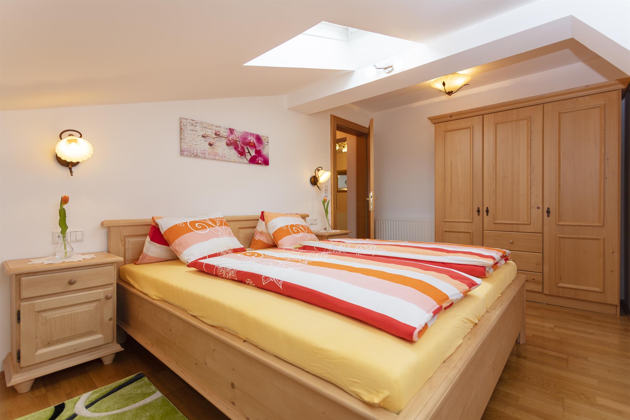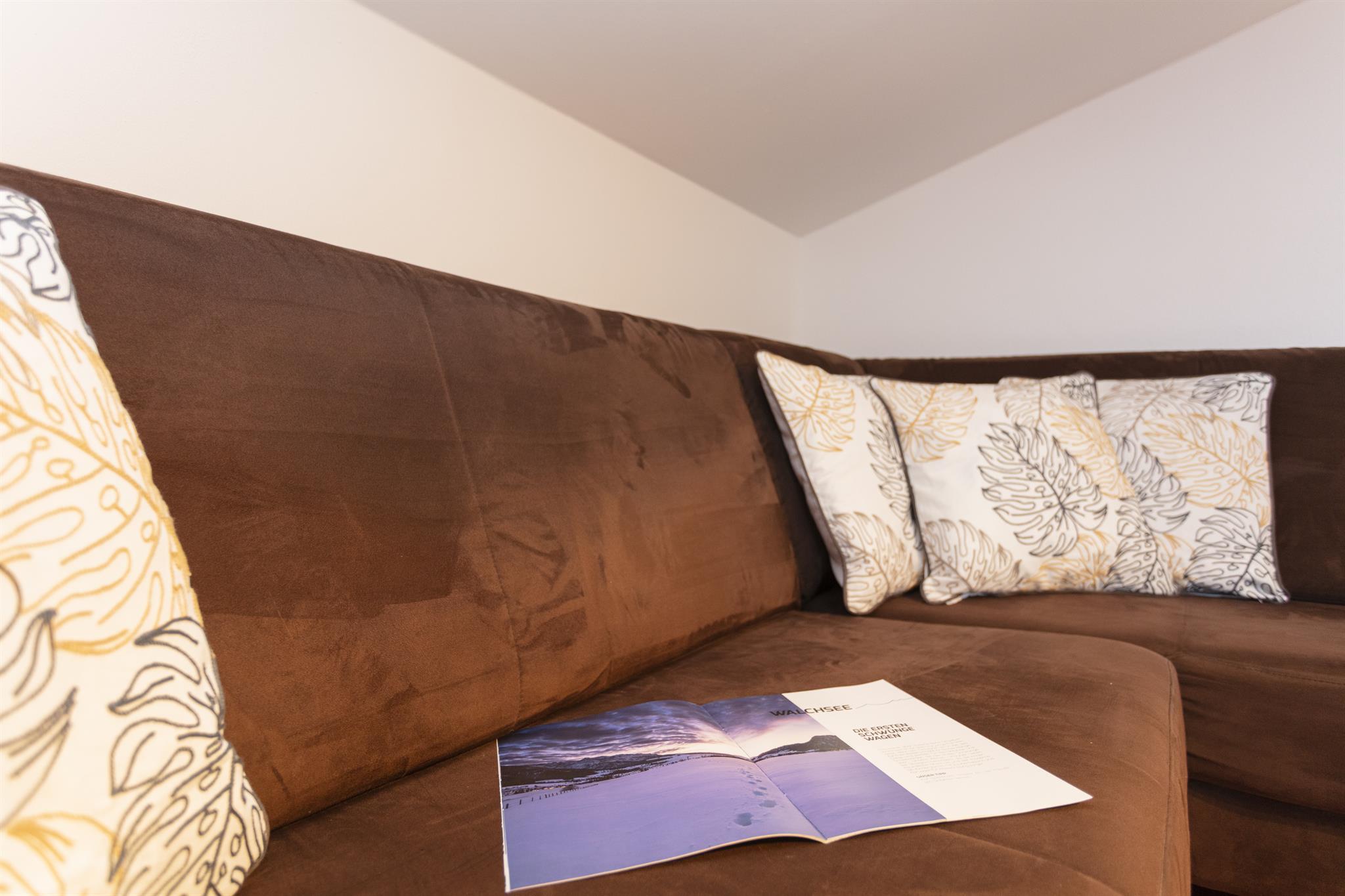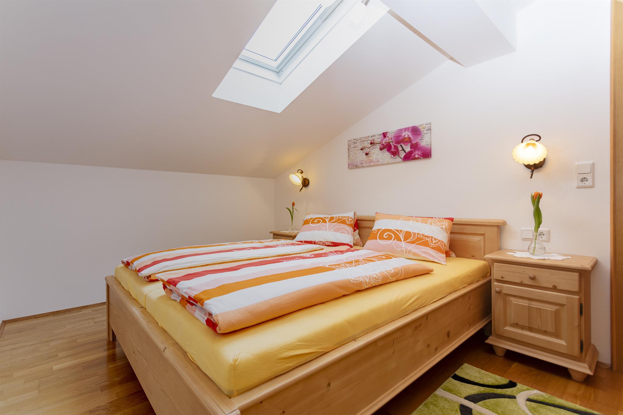 Große Ferienwohnung im 2. Stock für 1 bis 5 Per. mit 2 Schlafzimmer (ab 3 Per.) Küche mit Backrohr, Geschirrspüler und Kühlschrank, Wohnzimmer mit Essecke, Schlafmöglichkeit und SatTV, Bad mit Dusche/WC sowie Balkon mit Seeblick.