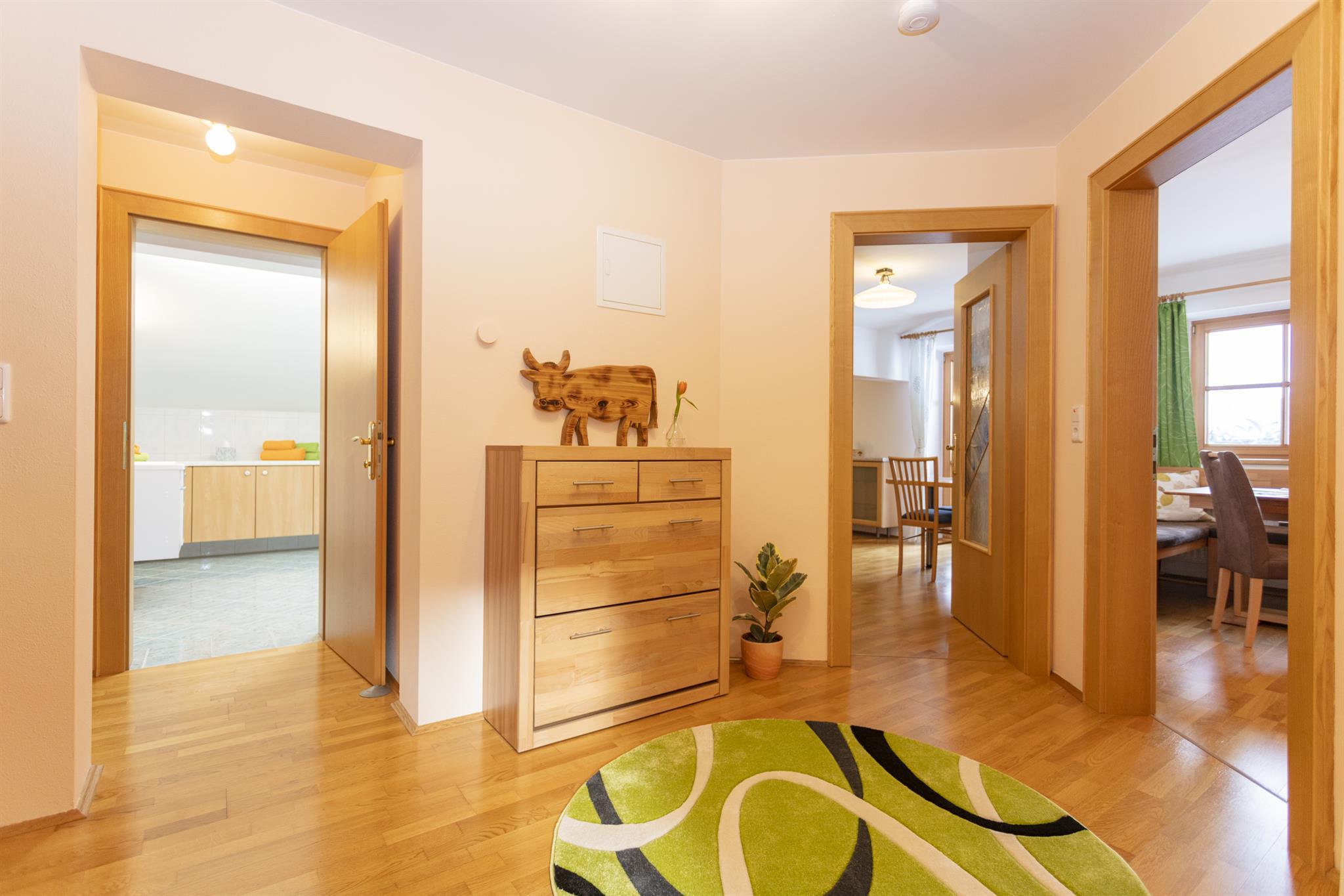 Über eine Außentreppe gelangt man zum Eingangsbereich unserer Ferienwohnungen. Die zwei Ferienwohnungen, für je 1-5 Personen, mit Balkon und Blick zum Walchsee, befinden sich im 1. und 2. Stock. Im Garten gibt es viel Platz zum Spielen, Entdecken und Entspannen.