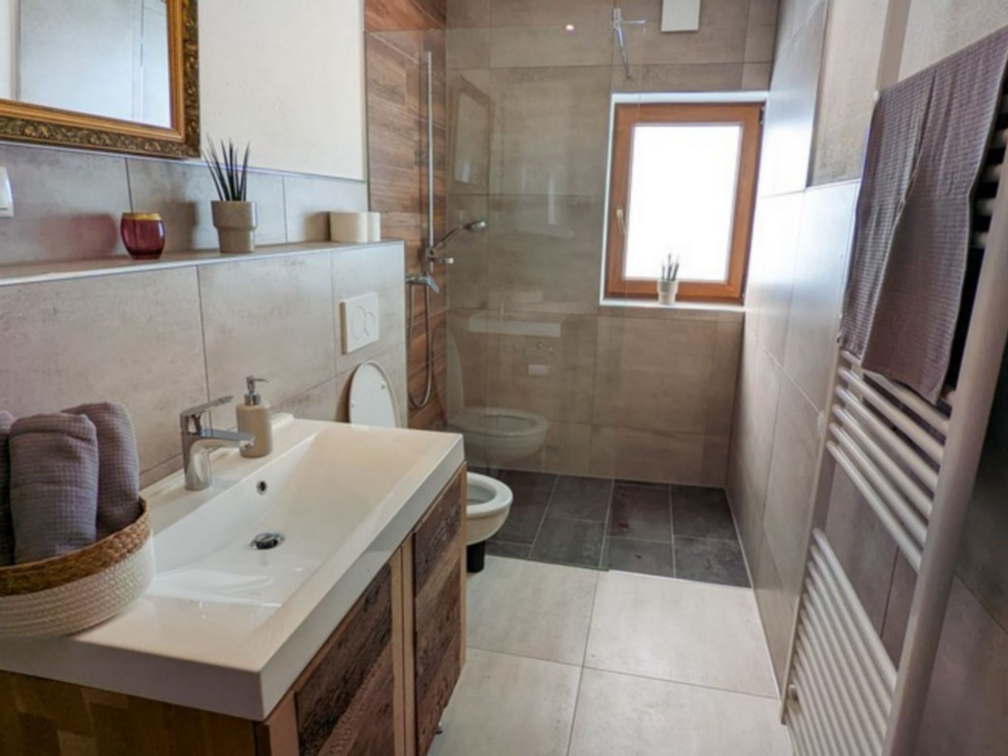 Genießen Sie Ihren Urlaub in unserer neuen im März 2022 fertig gestellten und liebevoll eingerichteten Ferienwohnung im Chiemgau. Sie bietet in zwei getrennten Schlafzimmern Platz für 4 Personen (ein fünfter Schlafplatz kann auf Anfrage bereitgestellt werden). Das Wohnzimmer mit großer Couch lädt zu einem ruhigen Fernsehabend ein, bietet aber auch genügend Platz für einen geselligen Spieleabend, Spielesammlung etc. steht frei zur Verfügung.Unsere neue Küche ist sehr gut ausgestattet. Neben einer Kaffeemaschine steht Ihnen noch ein Kühl- Gefrierschrank, Kochfeld, Backofen, Geschirrspülmaschine, Wasserkocher und Toaster etc. zur Verfügung. Das Badezimmer verfügt über eine begehbare Dusche, WC, Handtuchtrockner und eine Waschmaschine die im Preis mit inbegriffen ist. Für eine angenehme Wärme in der kalten Jahreszeit, sorgt ein Pelletofen kombiniert mit einer Elektroheizung. Neben der Haustür ist ein Schlüsselsafe angebracht, damit eine reibungslose An- und Abfahrt gewährleistet ist.
