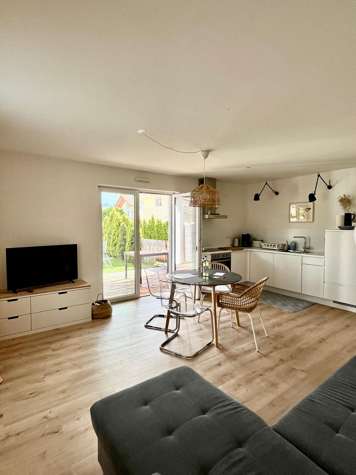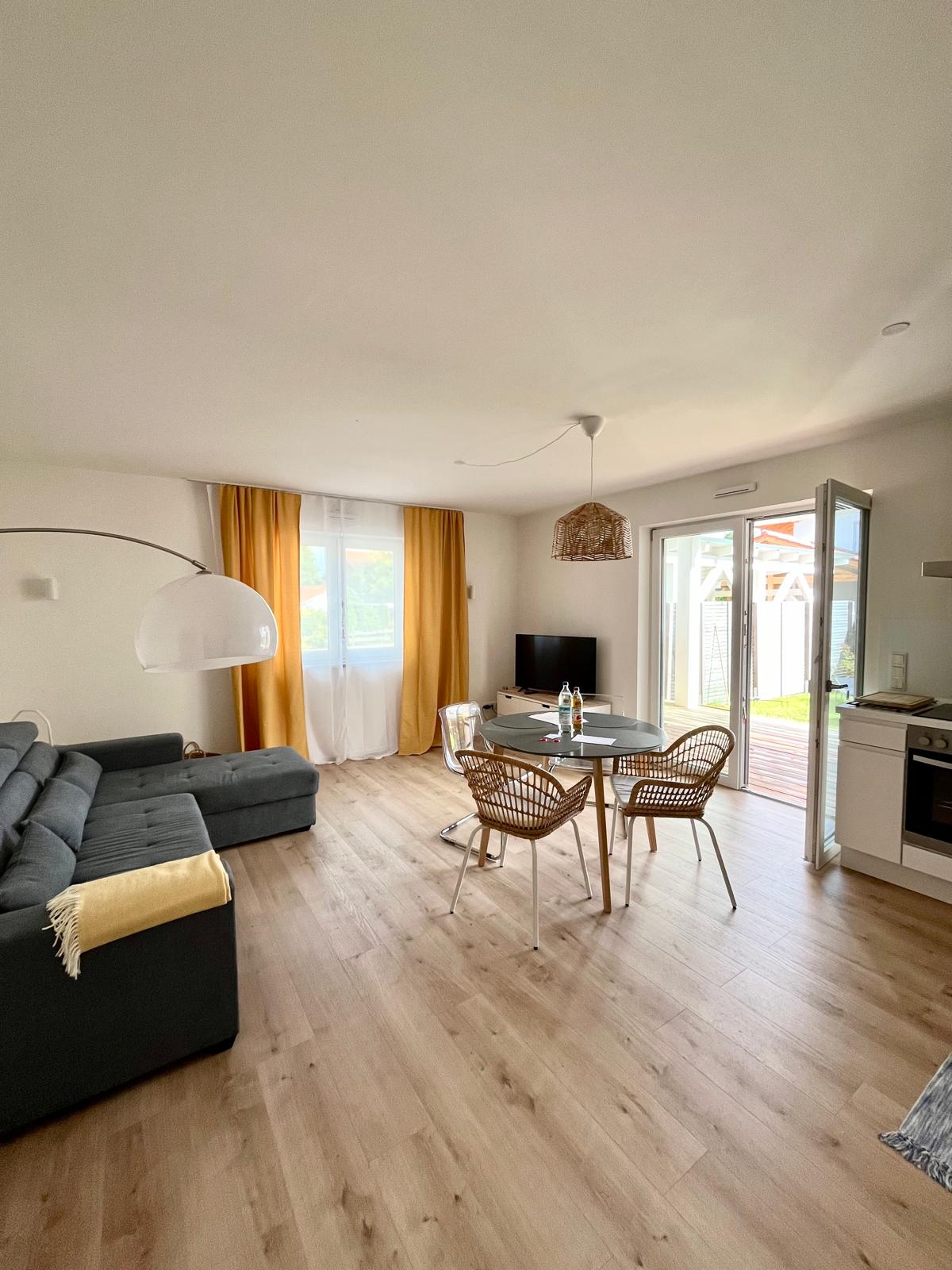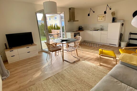 Die geschmackvoll eingerichtete Ferienwohnung erwartet Sie mit einer großen möblierten Terrasse und Garten.