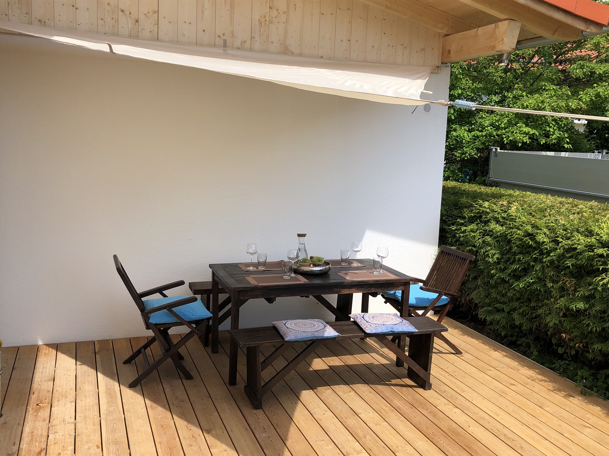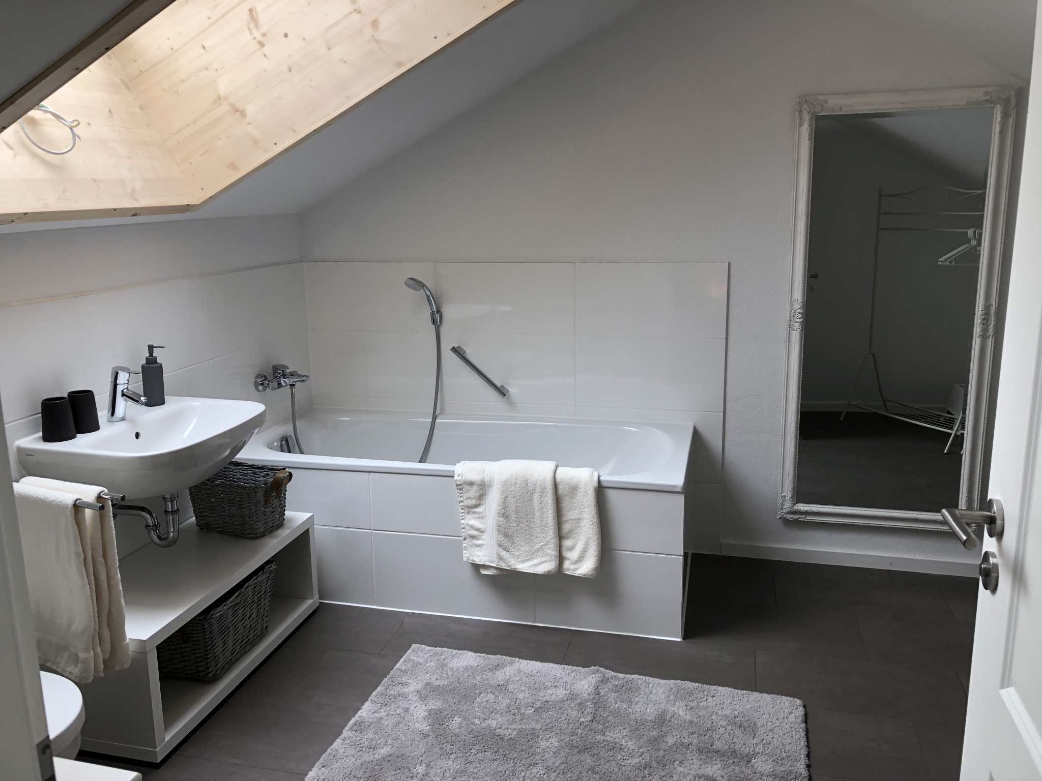 2 Schlafzimmer im OG, 1 Schlafzimmer im DG mit Bad en Suite und können noch zwei Personen im Wohnzimmer EG (Schlafsofa) schlafen.1 Bad mit Dusche und Toilette im OG. 1 Toilette im EG. Komplett möbliert und mit einer offenen Küche ausgestattet. Weitere Ausstattungsmerkmale: Fußbodenheizung, begehbare Dusche, Badewanne, Bad eu Suite, Waschmaschine, Wäscheständer, W-Lan, Flat-TV 50 Zoll, Raum für Fahrräder, 2-3 Fahrräder zur freien Benutzung. Mit zwei Terrassen (Ost-/Westseite) und teilüberdachter Sitzfläche mit Grillplatz.Ferienhaus für 8 Personen möglich.