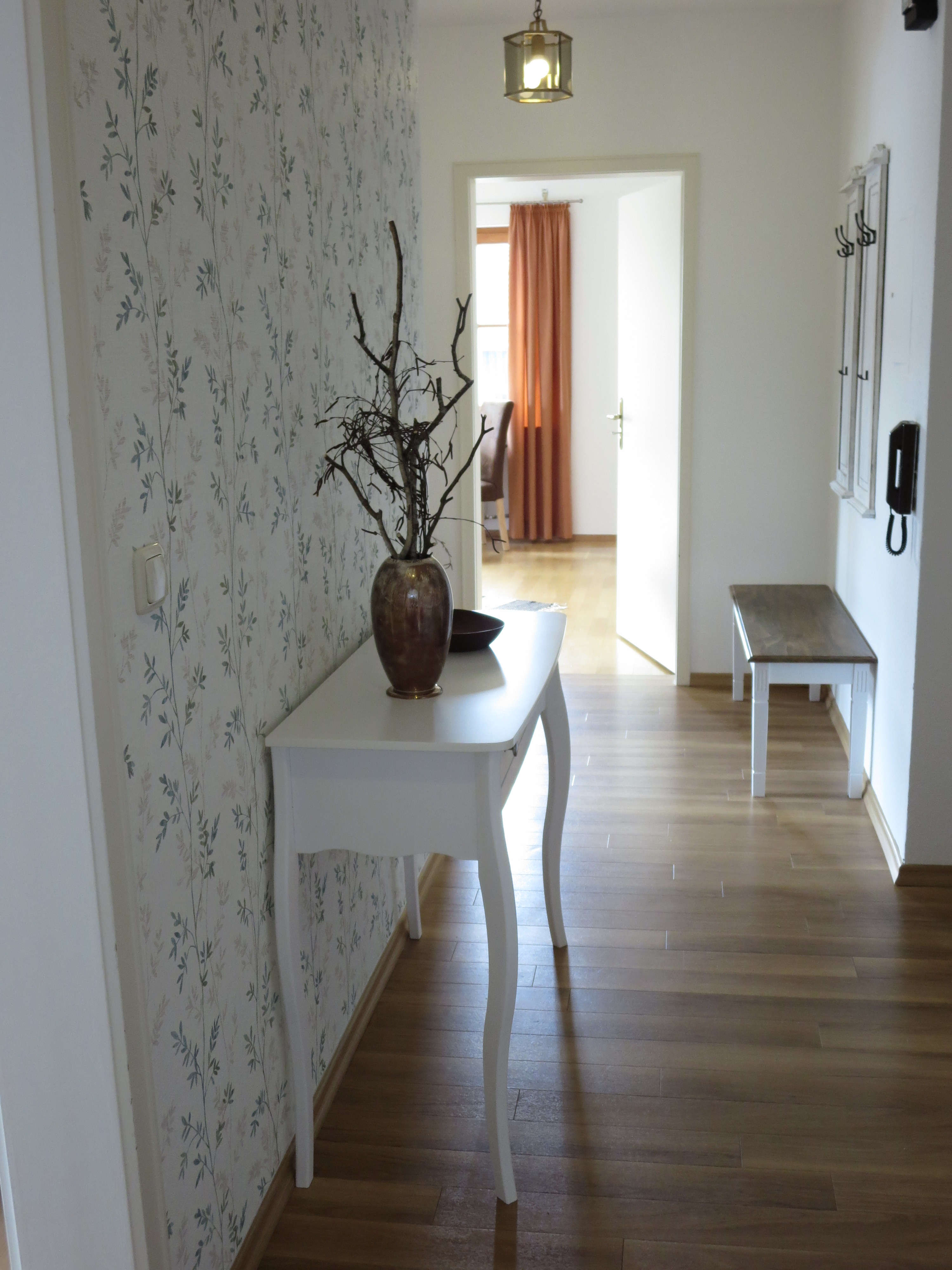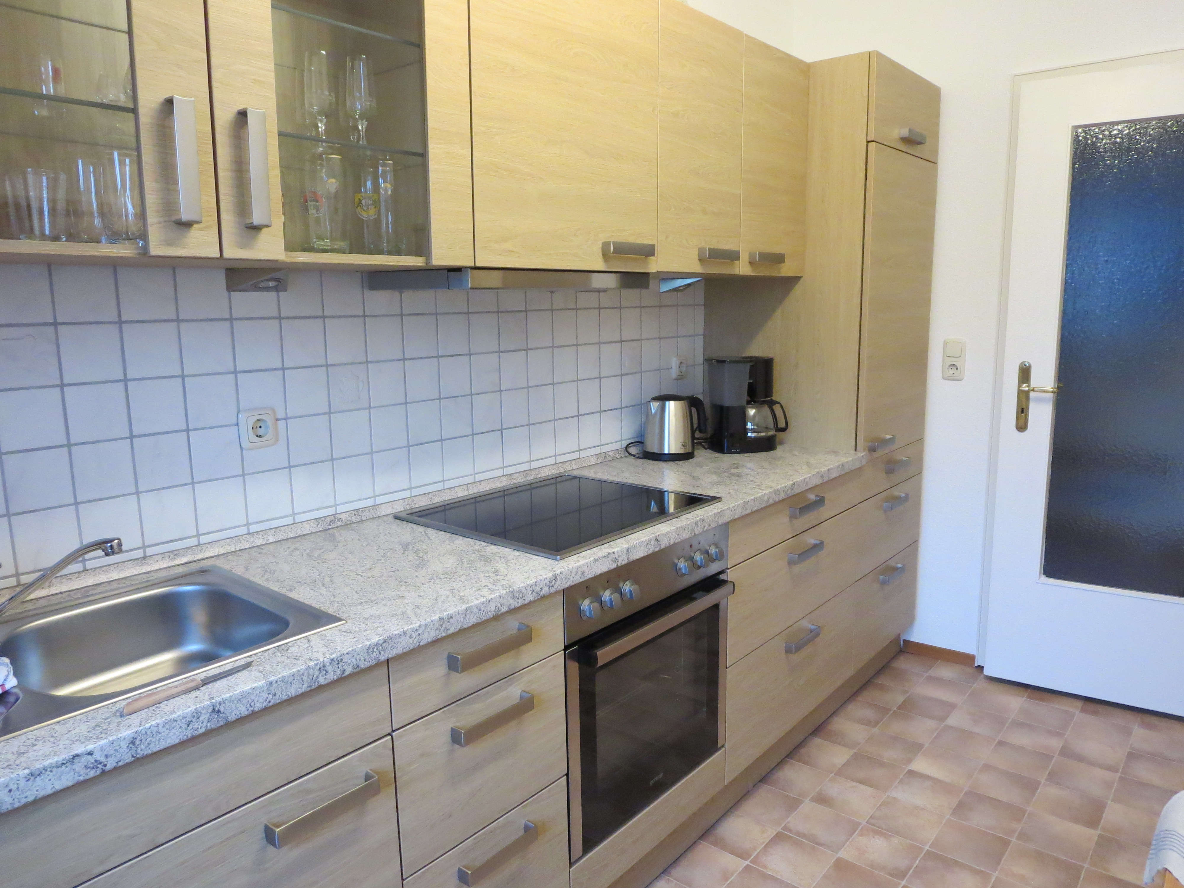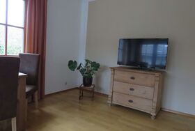 Die Wohnung besteht aus zwei Schlafzimmern, einem Tageslichtbad mit Badewanne und einer gut ausgestatteten Küche mit Herd, Backofen, Kühlschrank inklusive Gefrierfach, Spülmaschine, Toaster, Wasserkocher und Kaffeemaschine. Bettwäsche, Geschirr- und Handtücher sind im Preis inbegriffen. Der Wohn- und Essbereich mit Flachbild-TV strahlt ein gemütliches Ambiente aus.