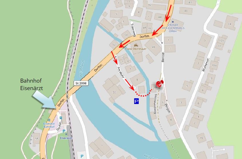 Ein ganzes Ferienhaus für Sie alleine - das liebevoll renovierte, komplett eingerichtete Ferienhaus, Baujahr 1734, befindet sich in ruhiger Lage in Eisenärzt, mitten in den Chiemgauer Bergen und an der weißen Traun, die bestens zum Angeln geeignet ist (mit Angelkarte).Eine Terrasse direkt neben einem leise fließendem Bach lädt zum Entspannen und Wohlfühlen ein. Die Villa klein Venedig ist Sommer wie Winter ein idealer Ausgangsort für Unternehmungen, wie Bergwanderungen, Rad- oder Skitouren, auch mit dem Motorrad können interessante Touren im Alpenland gestartet werden. Ideal ist auch die Nähe zur Autobahn München /Salzburg (ca. 3,5 km entfernt).Urlauber, die mit der Bahn anreisen möchten, können vom Bahnhof Eisenärzt die Villa klein Venedig ganz einfach zu Fuß erreichen (ca. 150 m). Für Motorradurlauber steht ein Carport zur Verfügung. Parkplätze für PKW's gibt es in unmittelbarer Nähe des Hauses, wenn man die Einfahrt Am Wehr benutzt.