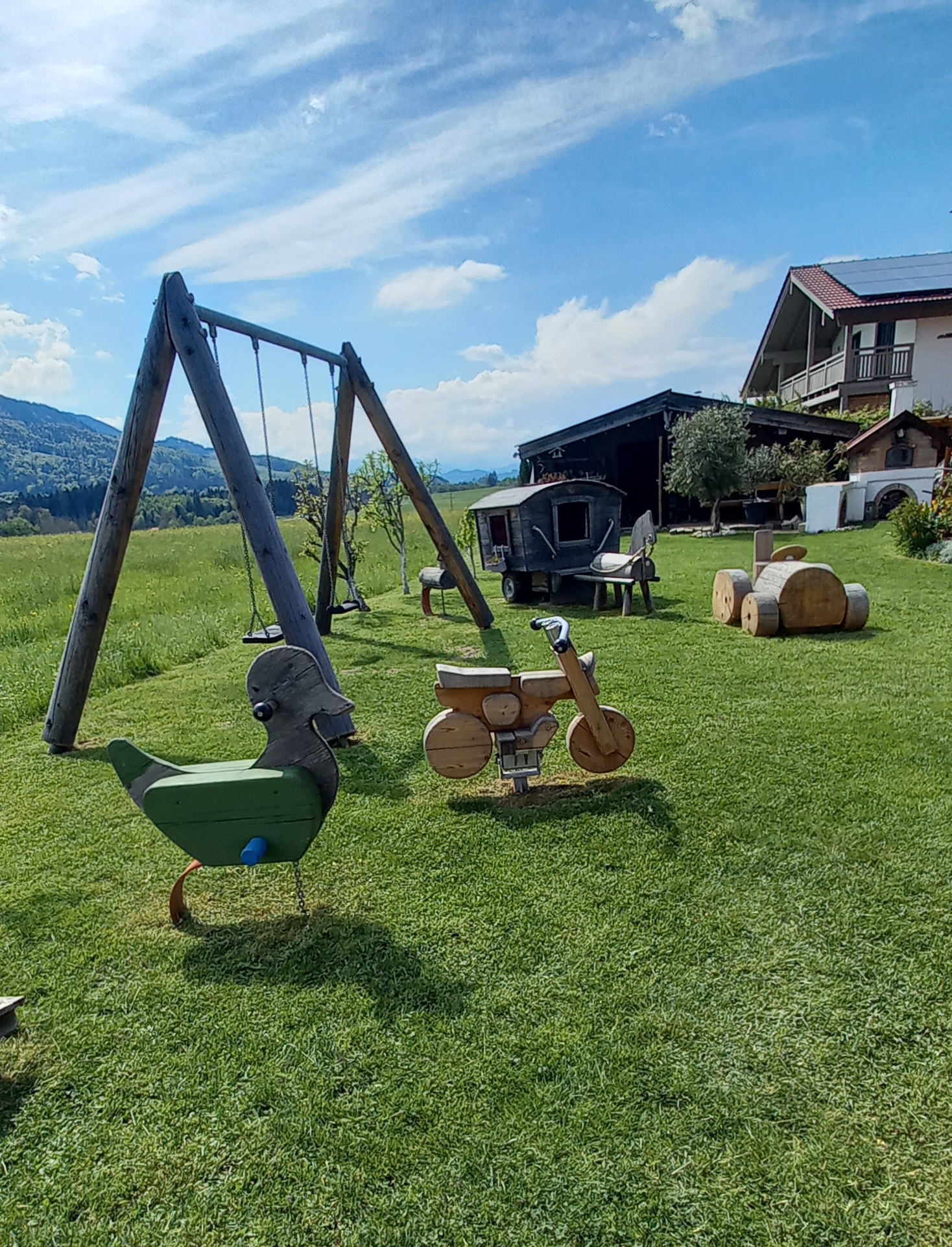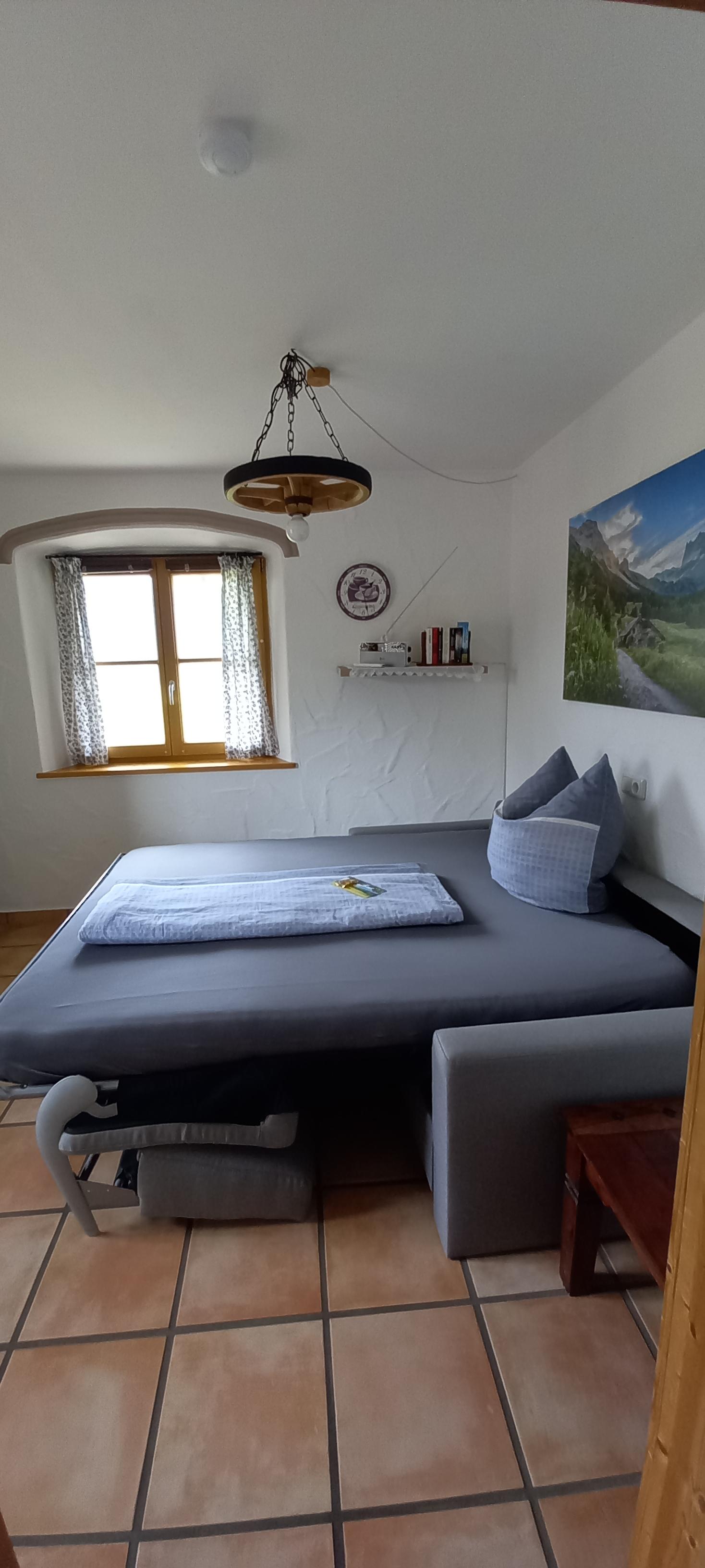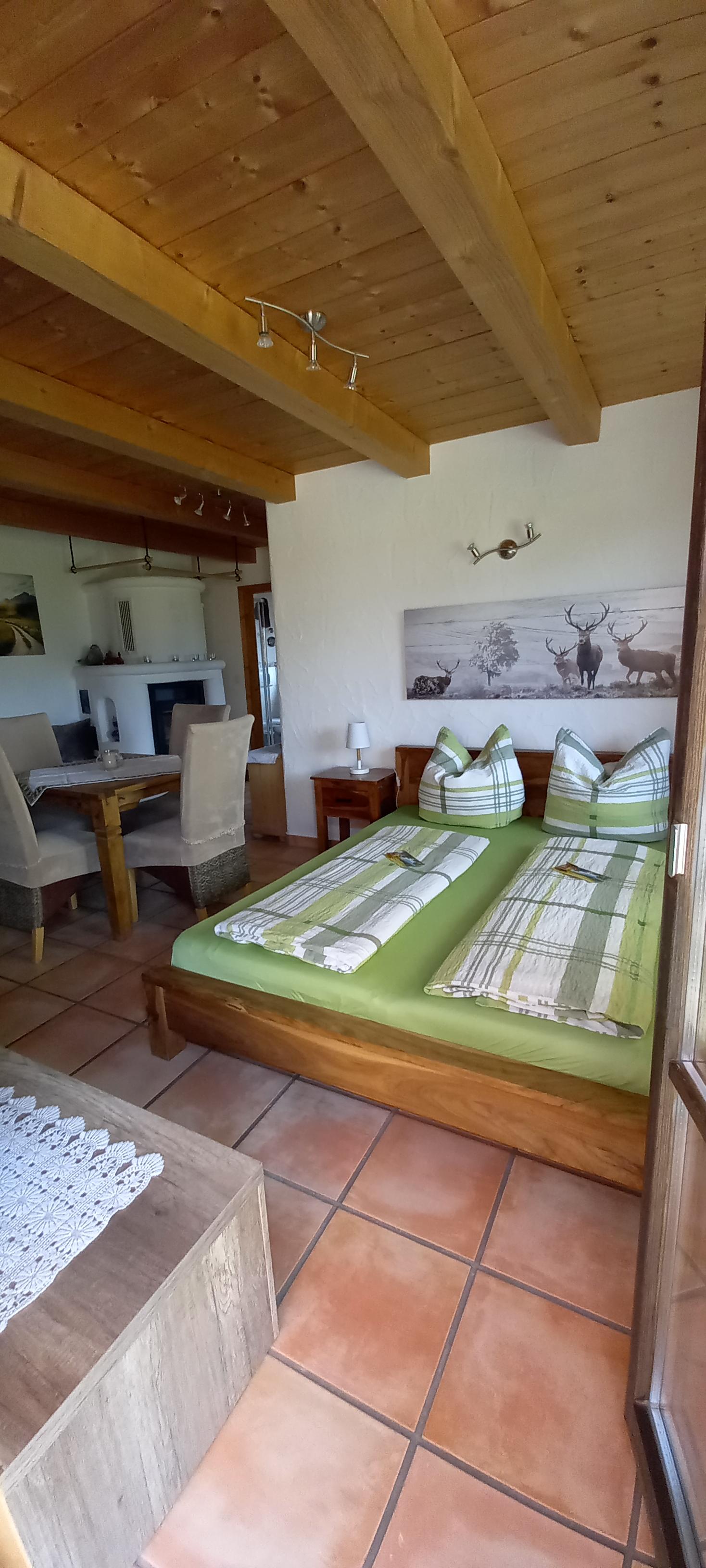Neue Ferienwohnung in gepflegtem Landhaus in Ortsrandlage, wunderschöner Blick auf die Berge, max. 5 Gehminuten zur Zugverbindung Aschau - Prien. Herrliche Rad- und Wandertouren ab Haus möglich.Gemütlich ausgestattete Ferienwohnung mit großem Wohn-/Schlafraum mit Doppelbett, Kachelofen, 1 Schlafcouch mit hochwertiger Matratze, gut ausgestattete Küche mit Geschirrspüler, Bad mit WC und Dusche, Kinderbett- stuhl, Kabel-TV, W-LAN, Stellplatz vor dem Haus.Nichtraucher Wohnung, Garten mit großer Terrasse und 2 Markisen, Grillmöglichkeit, Fahrradunterstellplatz , keine Haustiere.Die Ferienwohnung ist ein idealer Ausgangspunkt für Ausflüge. Wandern Sie auf die Berge direkt vor der Haustüre oder fahren Sie mit einer der nahen Bergbahnen auf Kampenwand, Hochries oder Wendelstein. Herrliche Aussichten auf das Voralpenland und auf viele Berggipfel bis zum Großglockner sind bei gutem Wetter garantiert. Der nahe Chiemsee mit Schloss Herrenchiemsee und der idyllischen Fraueninsel, aber auch München, Salzburg, Rosenheim, Kufstein und Berchtesgaden mit Königsee laden zum Erkunden ein und sind von Frasdorf aus bestens erreichbar.Zahlreiche sportliche Aktivitäten und kulturelle Angebote wie Baden, Kajakfahren, Surfen, Segeln, Golf, Paragliding, Klettern (Hochseilgarten), Minigolf, sowie Museen, Konzerte, Dorf- und Seefeste bietet die nahe Region.