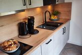 Unser Apartment 'Benedikt' verfügt über ein 1,60 Meter Boxspringbett, einen Smart-TV, eine gut ausgestattete Küche und ein eigenes Bad mit Regendusche und Haartrockner. Handtücher werden gestellt. Ein Geschirrspüler, ein Kühlschrank, eine Mikrowelle, ein Wasserkocher, ein Toaster und eine Kaffeemaschine sind ebenfalls vorhanden. Der eigene Balkonbereich ist mit Stühlen und Tisch ausgestattet. Kostenfreies WLAN und Parkplatz steht zur Verfügung, Babybett und Hochstuhl auf Anfrage. Mindestaufenthaltsdauer sind 5 Nächte.