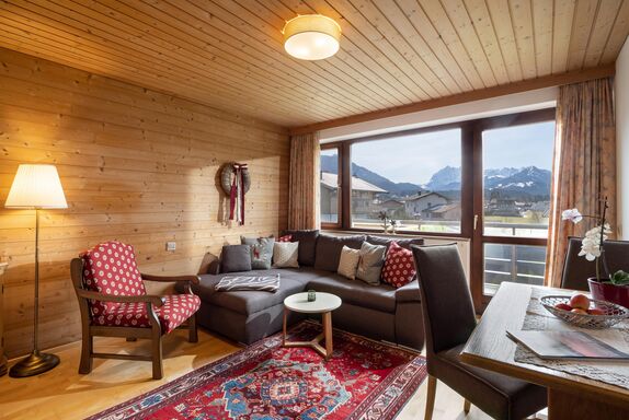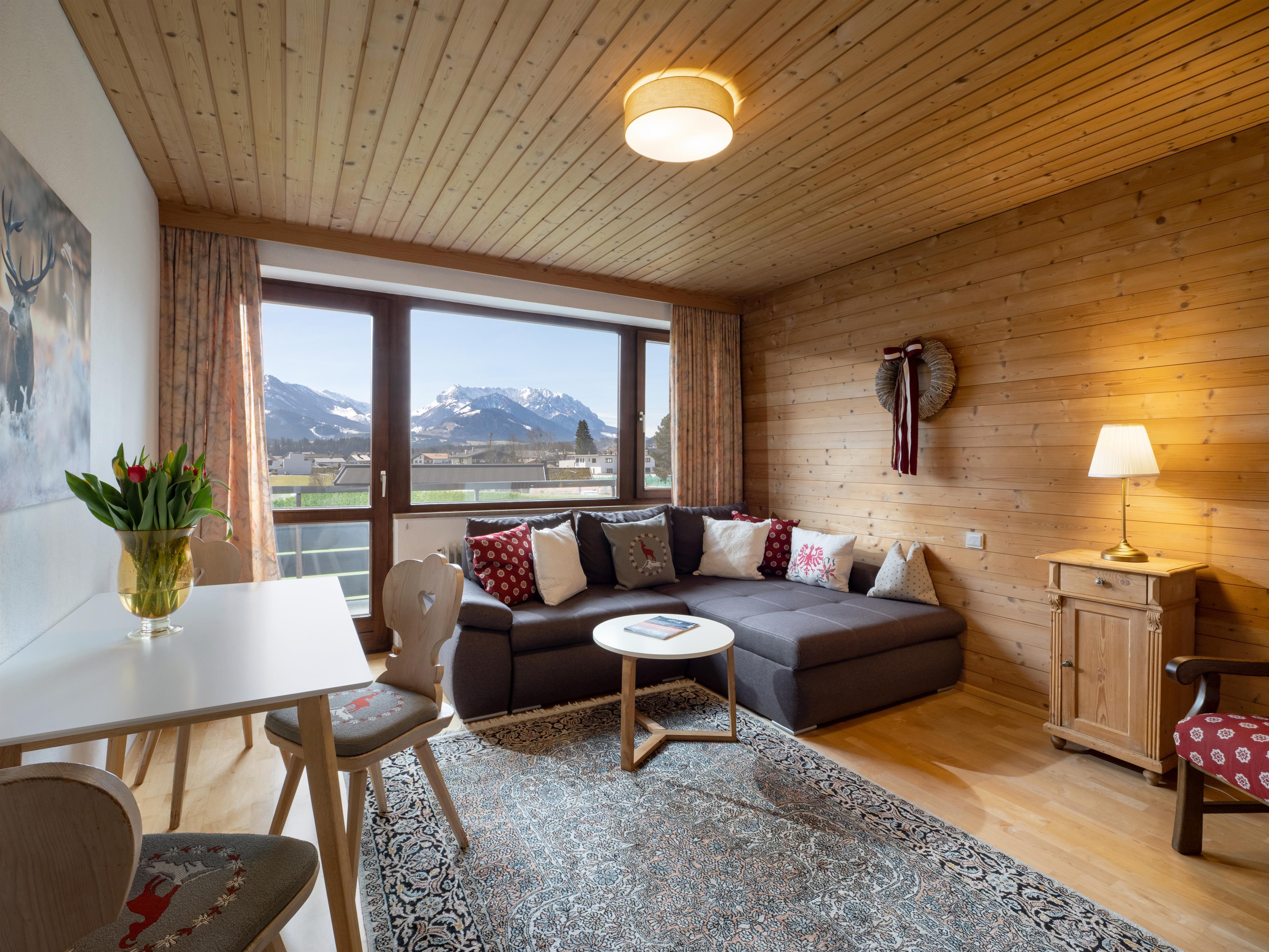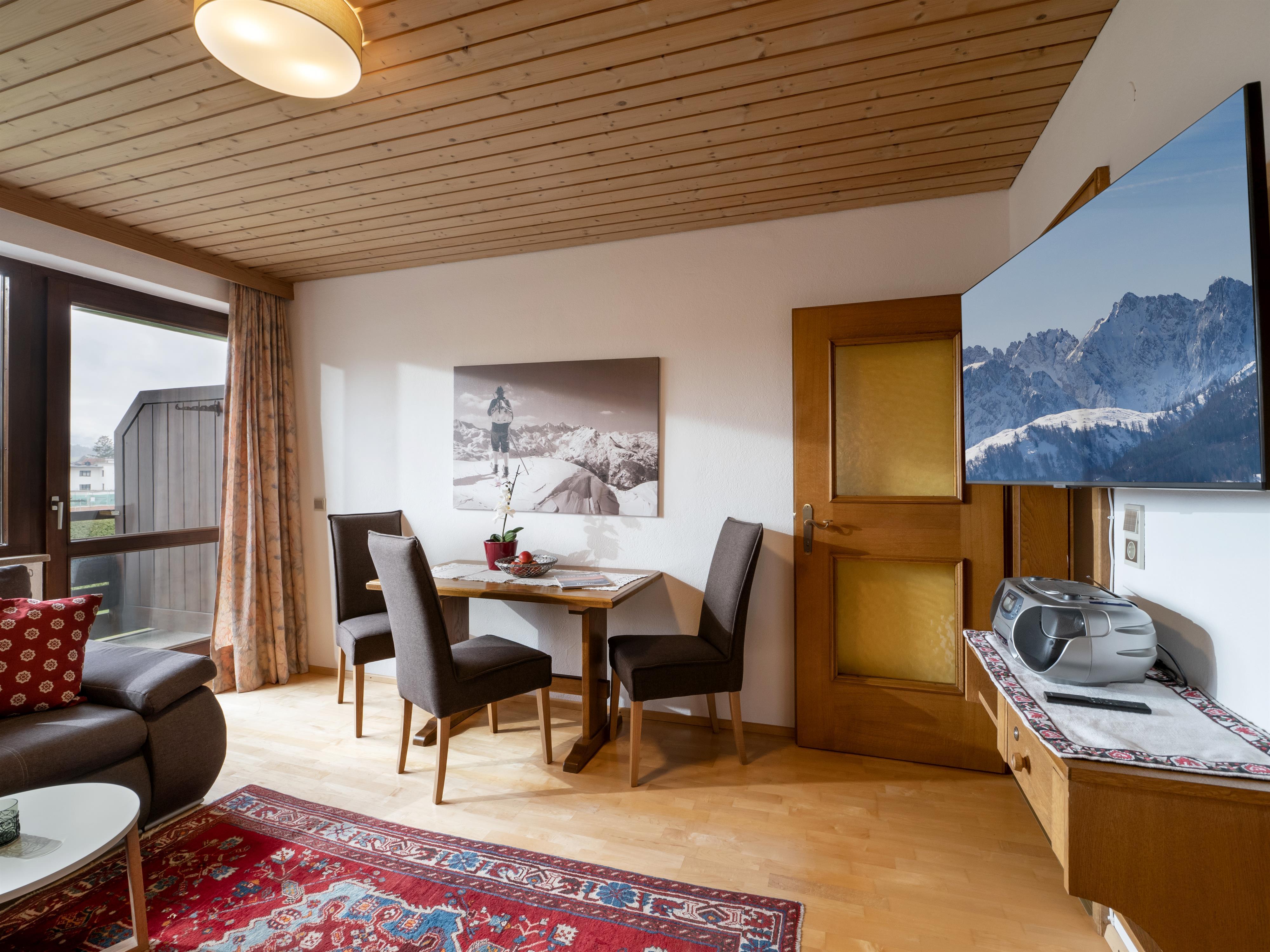 schöne Ferienwohnung mit 1 Schlafzimmer, Wohnschlafraum, Kochnische mit Geschirrspülmaschine, 2 Badezimmer mit Dusche/WC, TV und 2 Balkone mit freiem Blick auf das Kaisergebirge