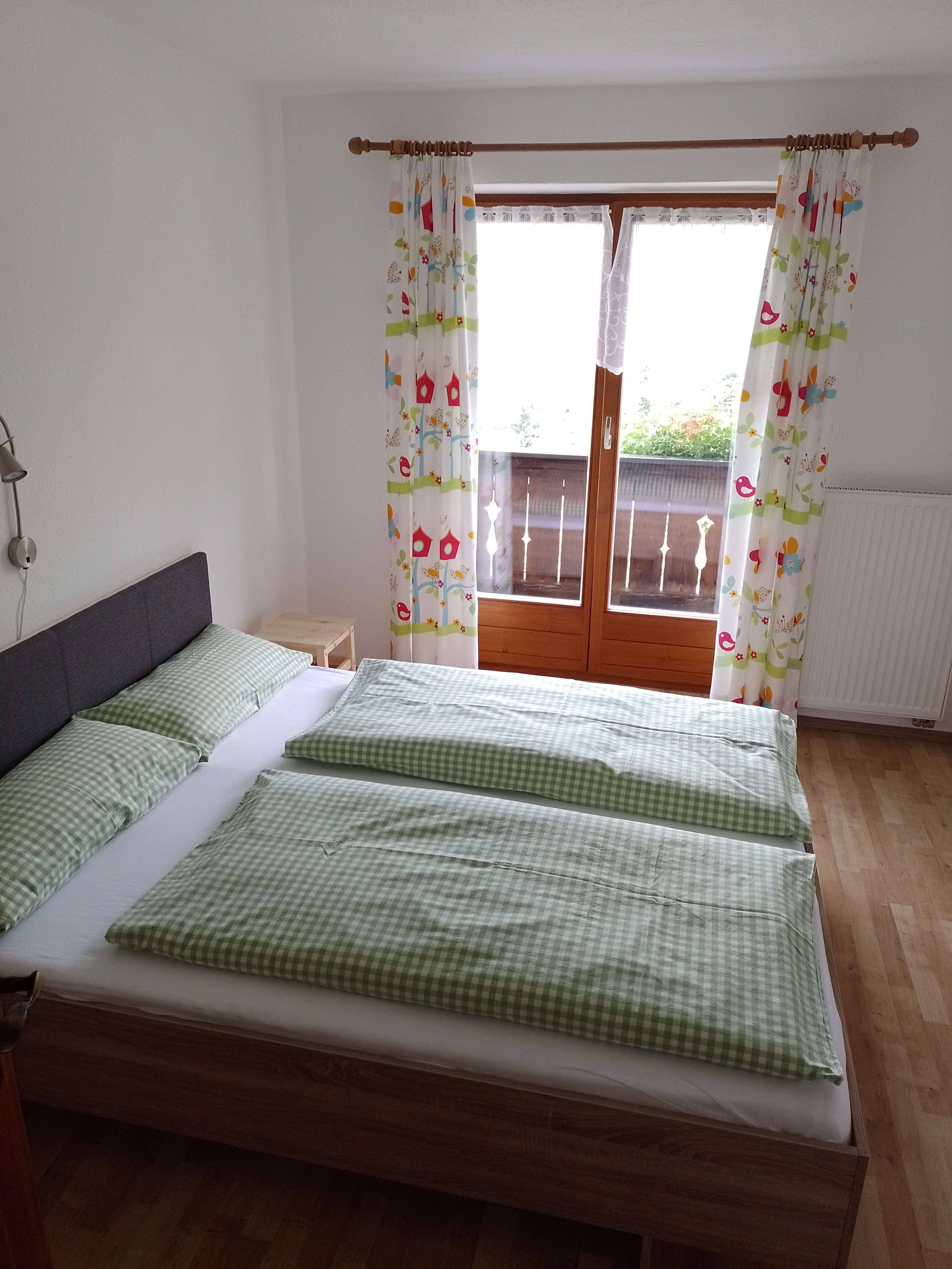 Die Ferienwohnung liegt im 1. Stock unseres Hauses und ist mit großer Wohnküche, zwei Schlafzimmern und Wohnzimmer ausgestattet.