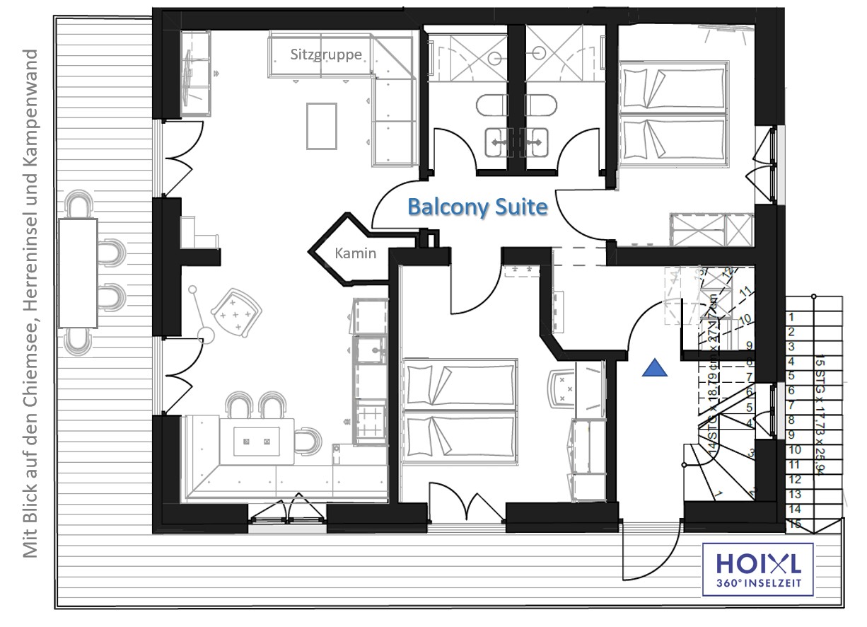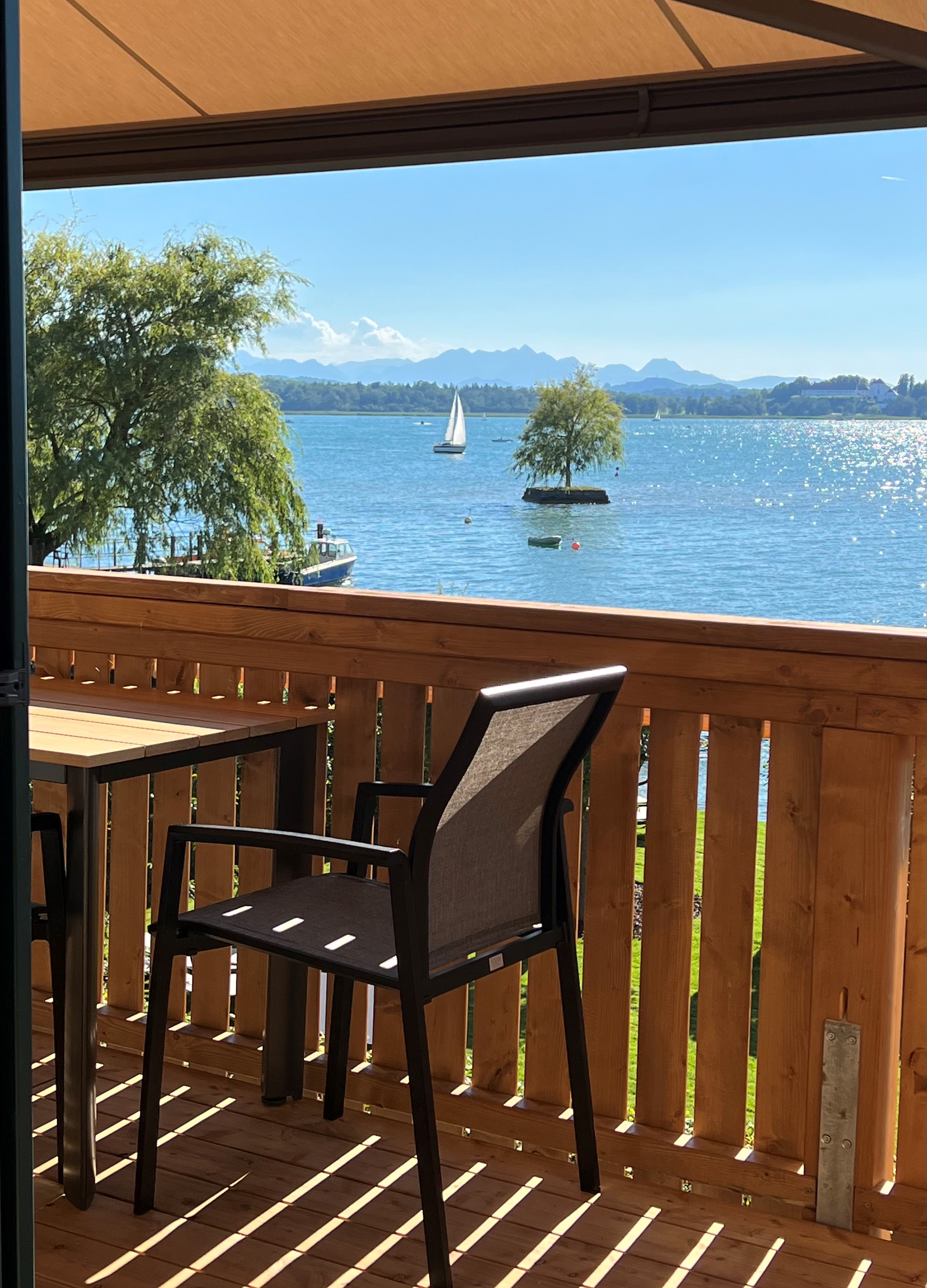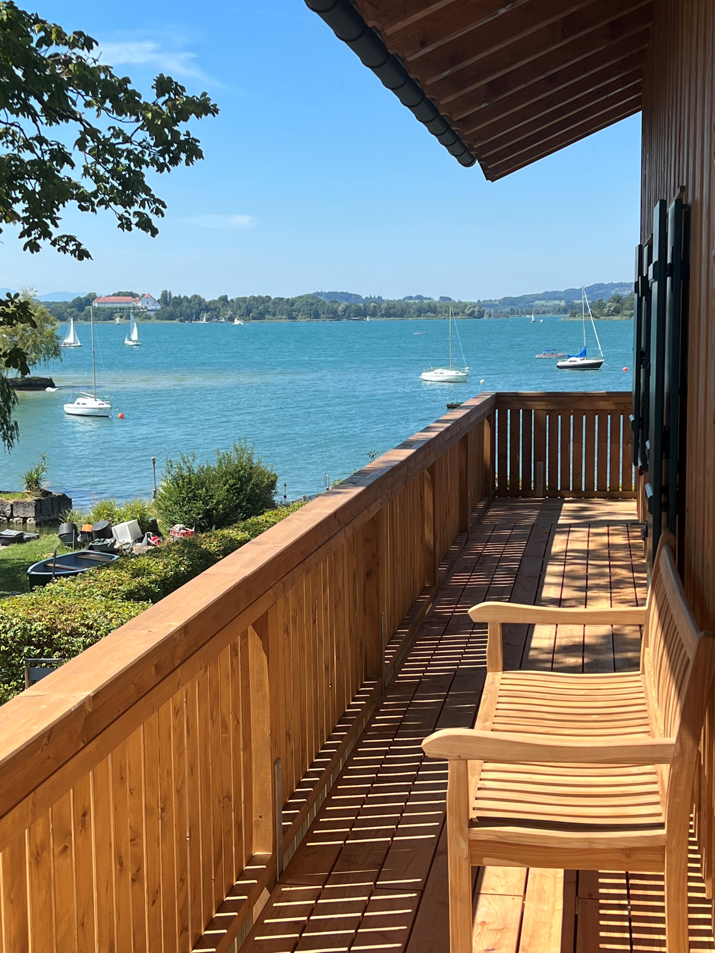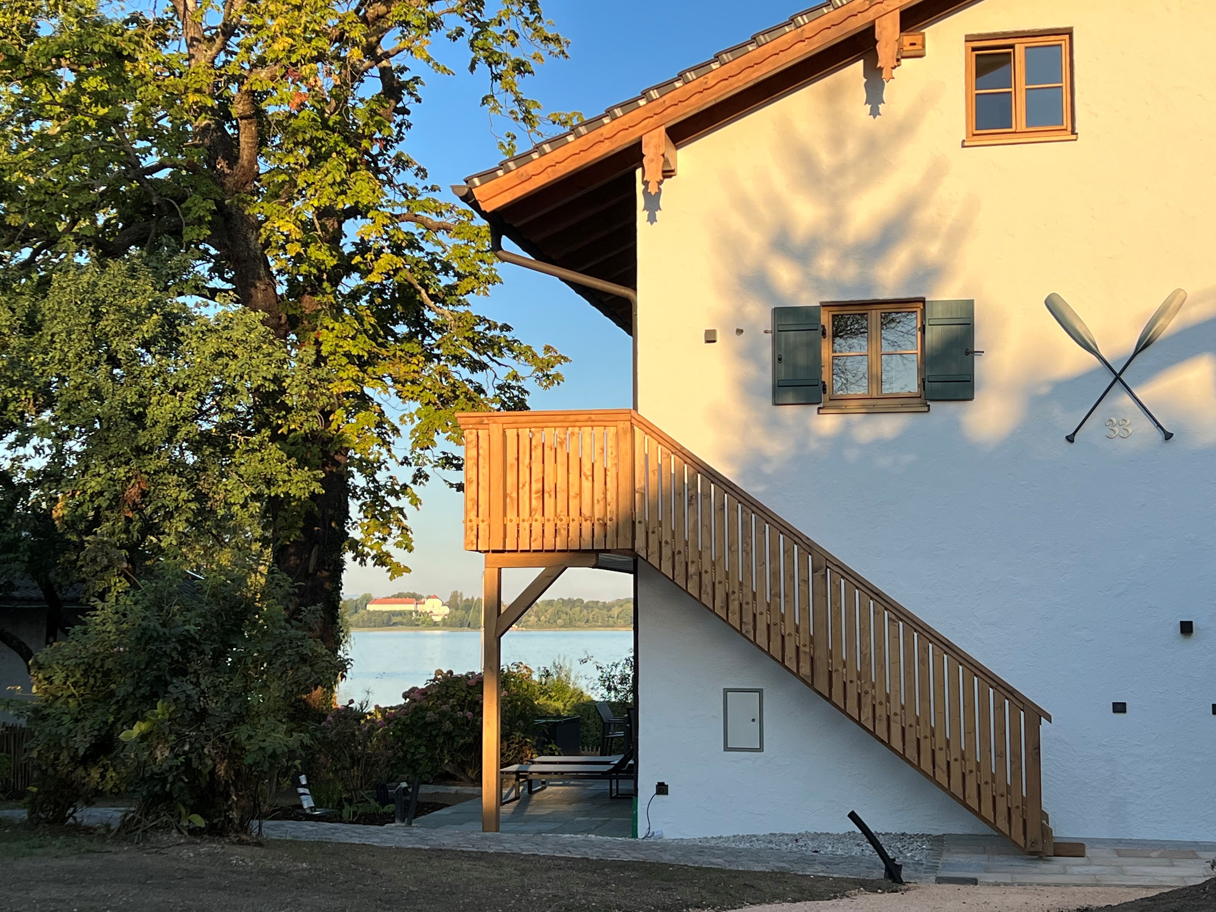 Das malerische Haus auf der Fraueninsel im Chiemsee hat von allen Suiten einen wunderschönen Blick auf den See in Richtung Sonnenuntergang mit der Herreninsel und der dahinter liegenden Bergkette. Die Gäste der 4 Suiten des HOIXL Gütls haben Zugang zu dem direkt vor dem Gütl liegenden privaten Seegrundstück mit eigenem Steg, Badeleiter und Liegen sowie zu der exklusiven Gemeinschaftsauna im Bootshaus.