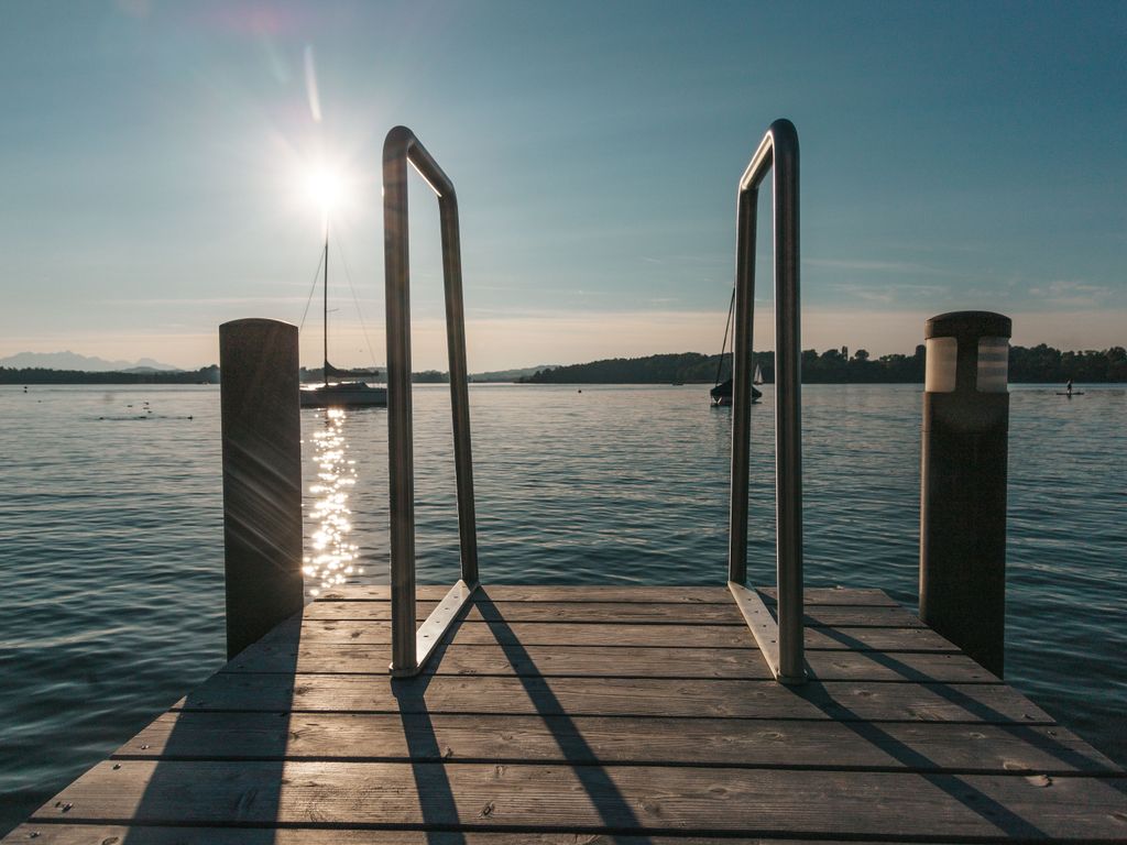Das malerische Haus auf der Fraueninsel im Chiemsee hat von allen Suiten einen wunderschönen Blick auf den See in Richtung Sonnenuntergang mit der Herreninsel und der dahinter liegenden Bergkette. Die Gäste der 4 Suiten des HOIXL Gütls haben Zugang zu dem direkt vor dem Gütl liegenden privaten Seegrundstück mit eigenem Steg, Badeleiter und Liegen sowie zu der exklusiven Gemeinschaftsauna im Bootshaus.