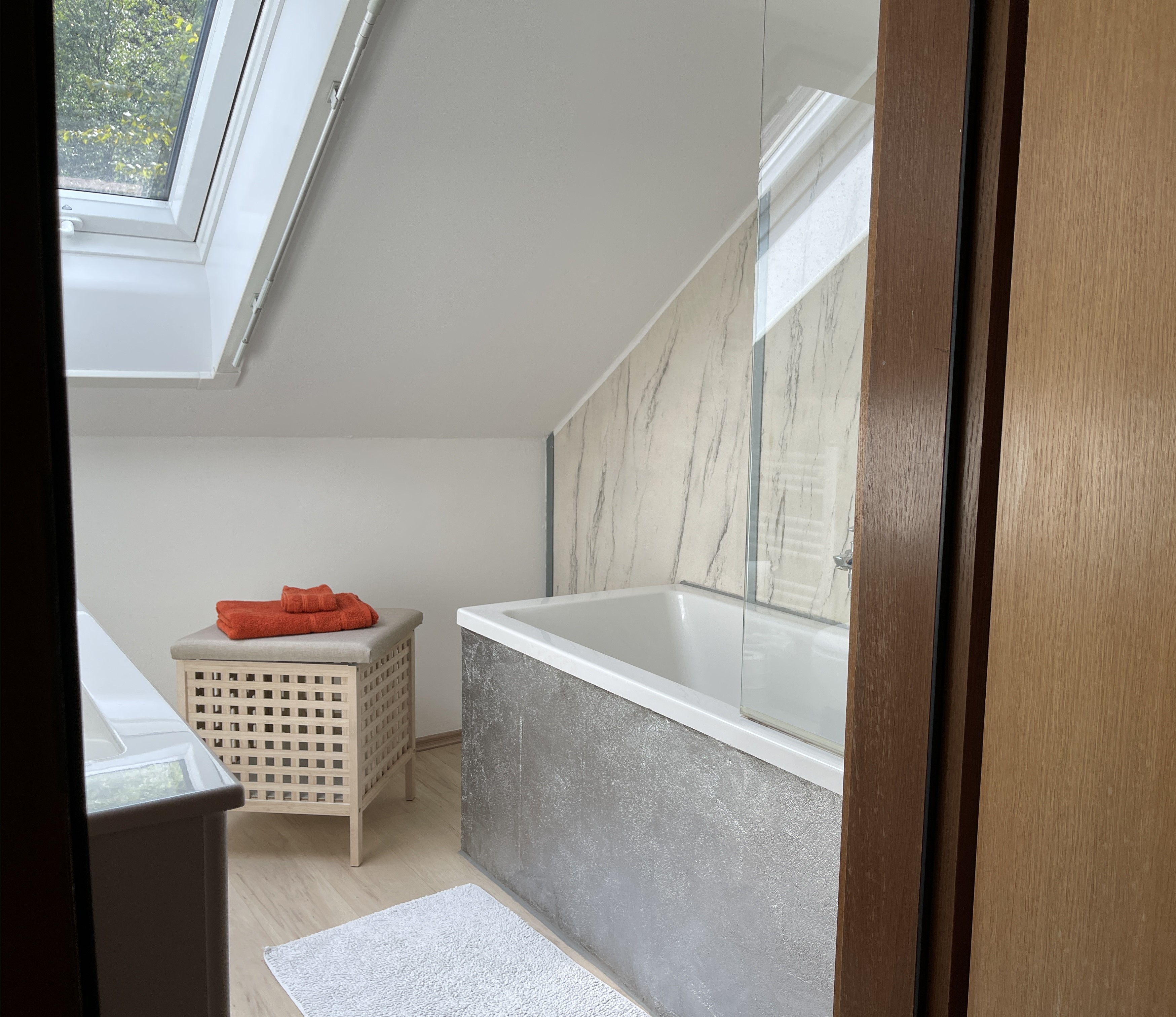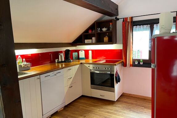 Der Eingang der Wohnung führt Sie direkt in die komplett eingerichtete Küche, (Ceranfeld, Spülmaschine, Wasserkocher, großer Kühlschrank mit Gefrierfach), mit kleiner Essecke zum Verweilen. Über den Gang sind alle Zimmer erreichbar. Im Schlafzimmer befindet sich ein sehr geräumiger Kleiderschrank und ein Massivholzbett mit 140 cm Breite! Dort schlafen Sie auf einem Naturbettsystem aus Holztellern und Naturlatexmatratze aus dem Hause RELAX. Das geräumige Wohnzimmer mit Sichtdachstuhl ist am Ende der Wohnung, auf dem Balkon haben unsere Gäste einen wunderschönen Blick auf den Zahmen Kaiser. Im Wohnzimmer befindet sich der große Flachbildfernseher, die Couch ist ausziehbar (140 x 200cm) und kann als zusätzliche Schlafmöglichkeit genutzt werden.